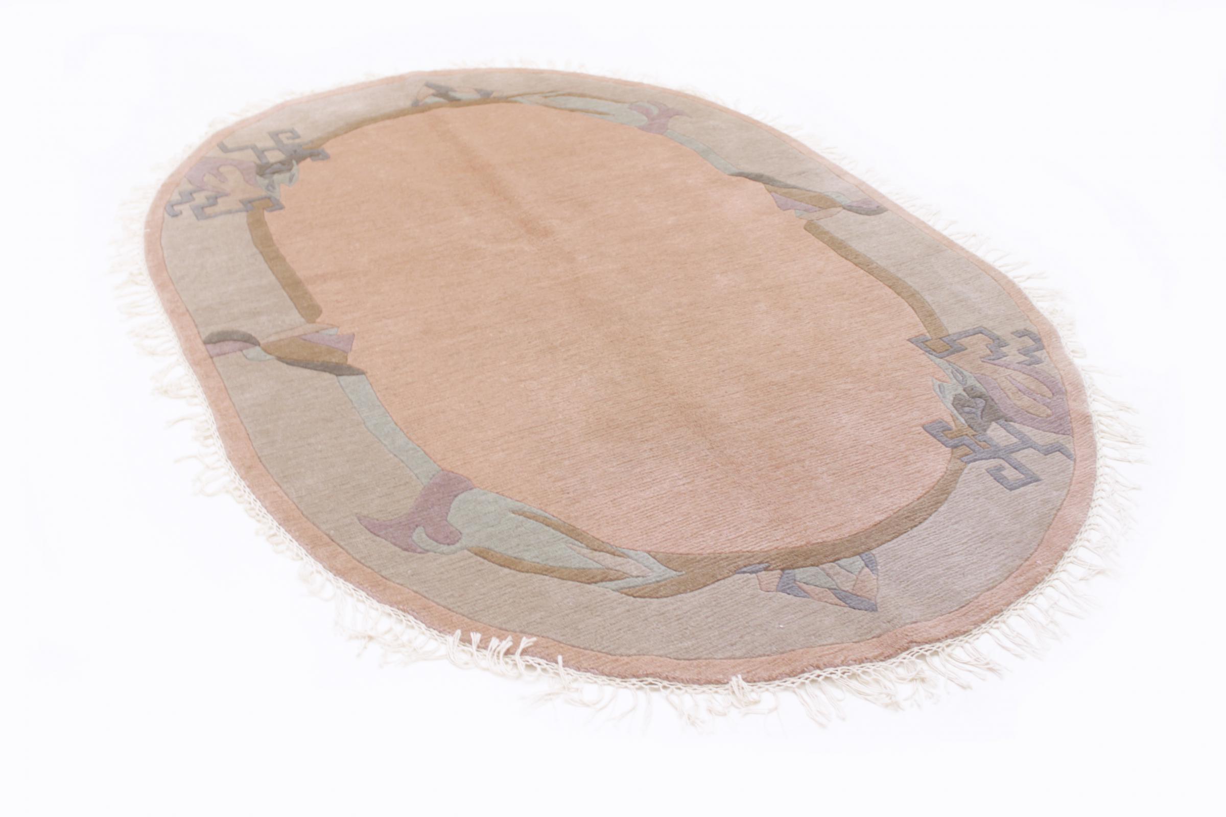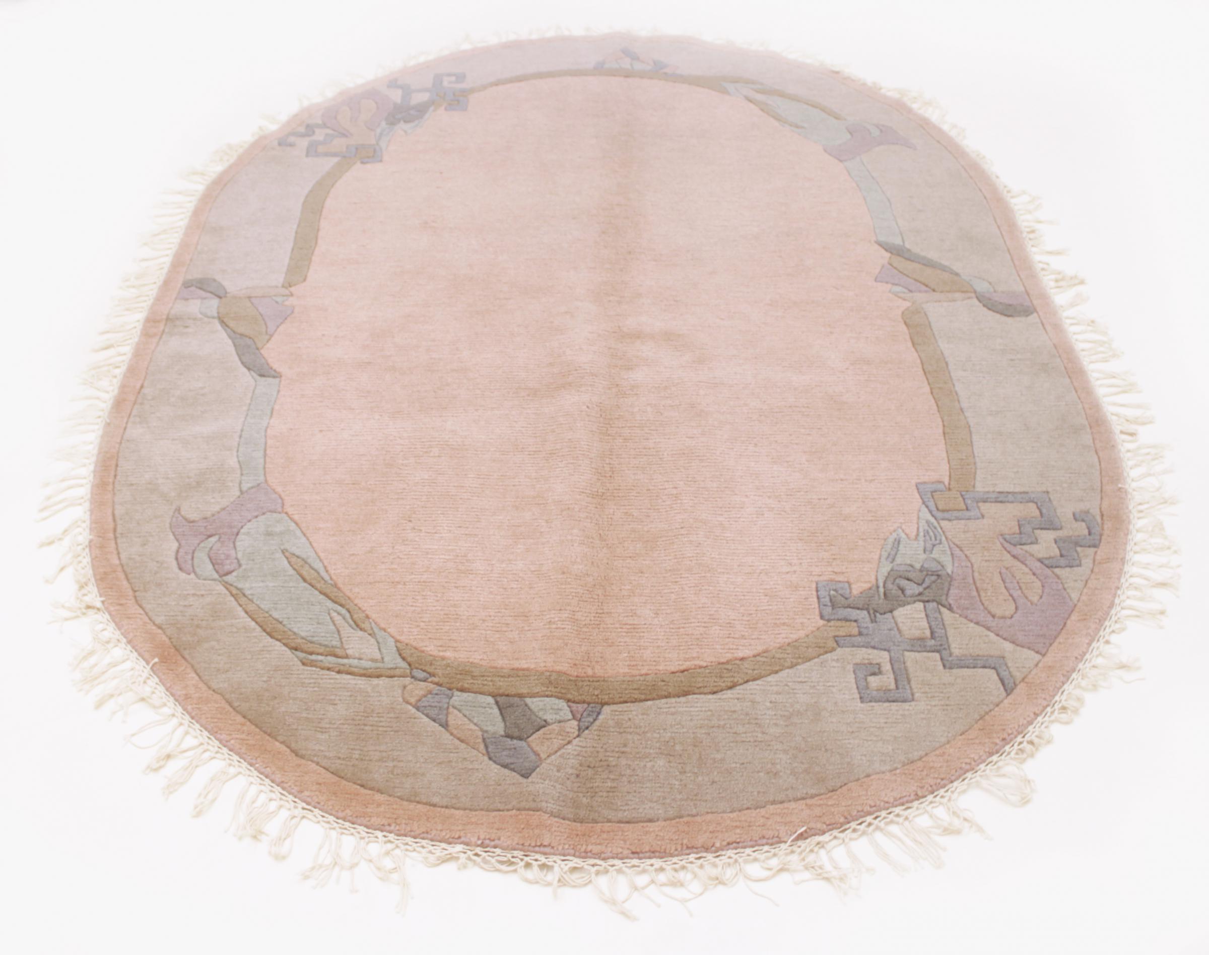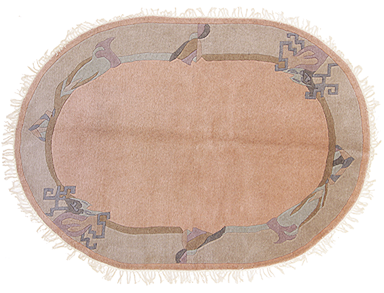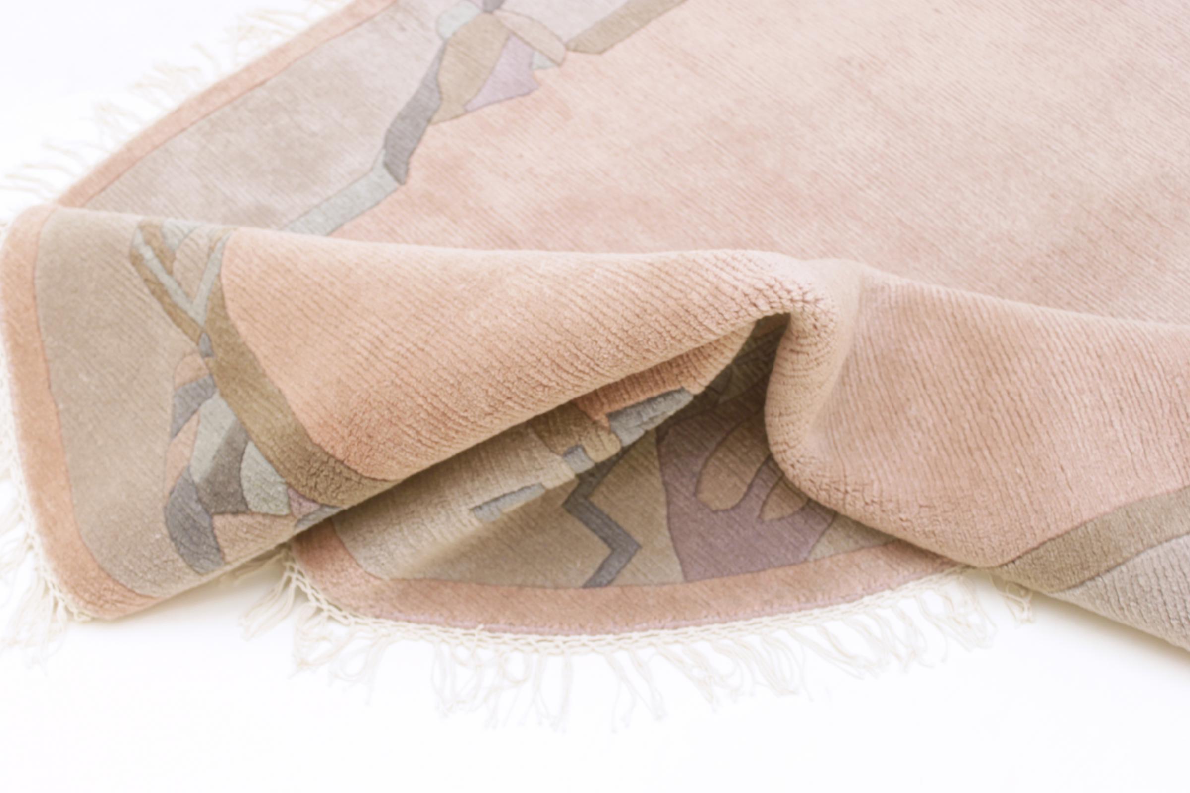 Esta alcatifa vem do Nepal e foi atada ali à mão. Normalmente, os tapetes nepaleses são um pouco mais grosseiros e têm padrões coloridos modernos. As variações clássicas captam desenhos de tapetes tradicionais chineses. O aspecto dos tapetes do Nepal tem sido adaptado ao longo do tempo para satisfazer a procura dos mercados ocidentais. Hoje em dia é possível encontrar cores pastel e padrões geométricos nestes tapetes com nó de mão.