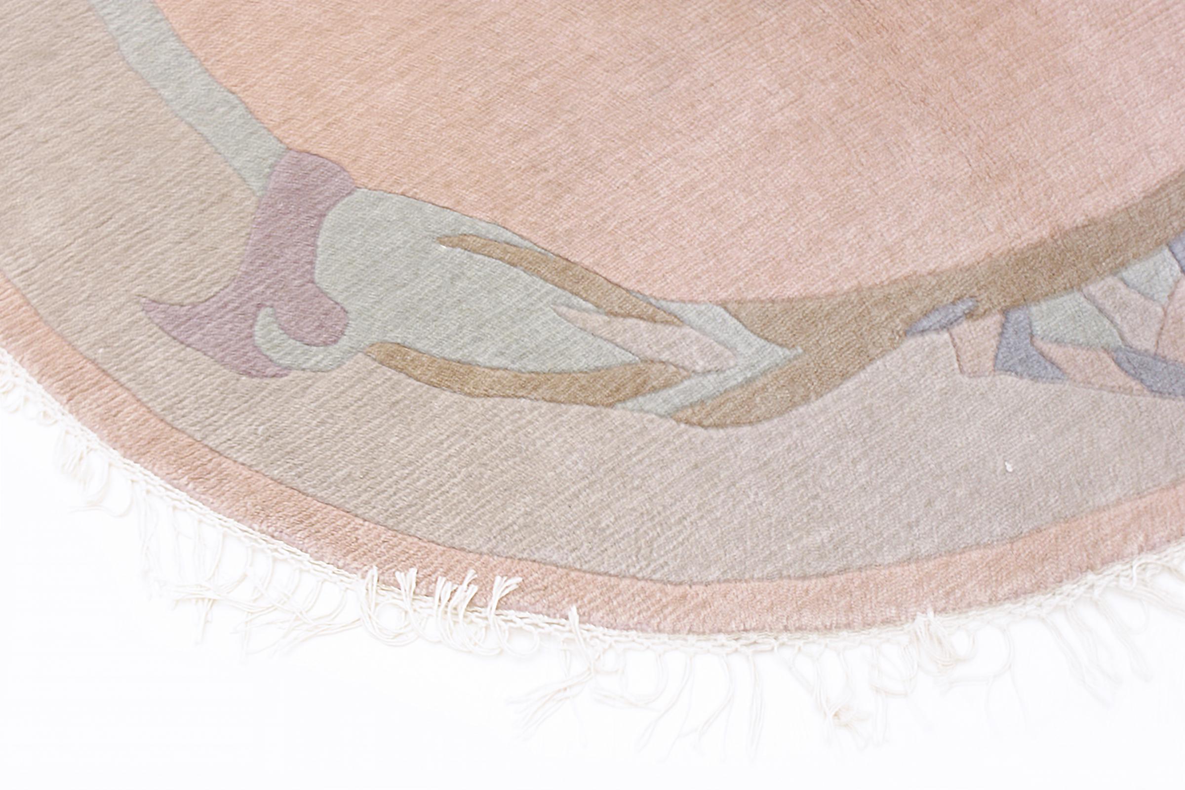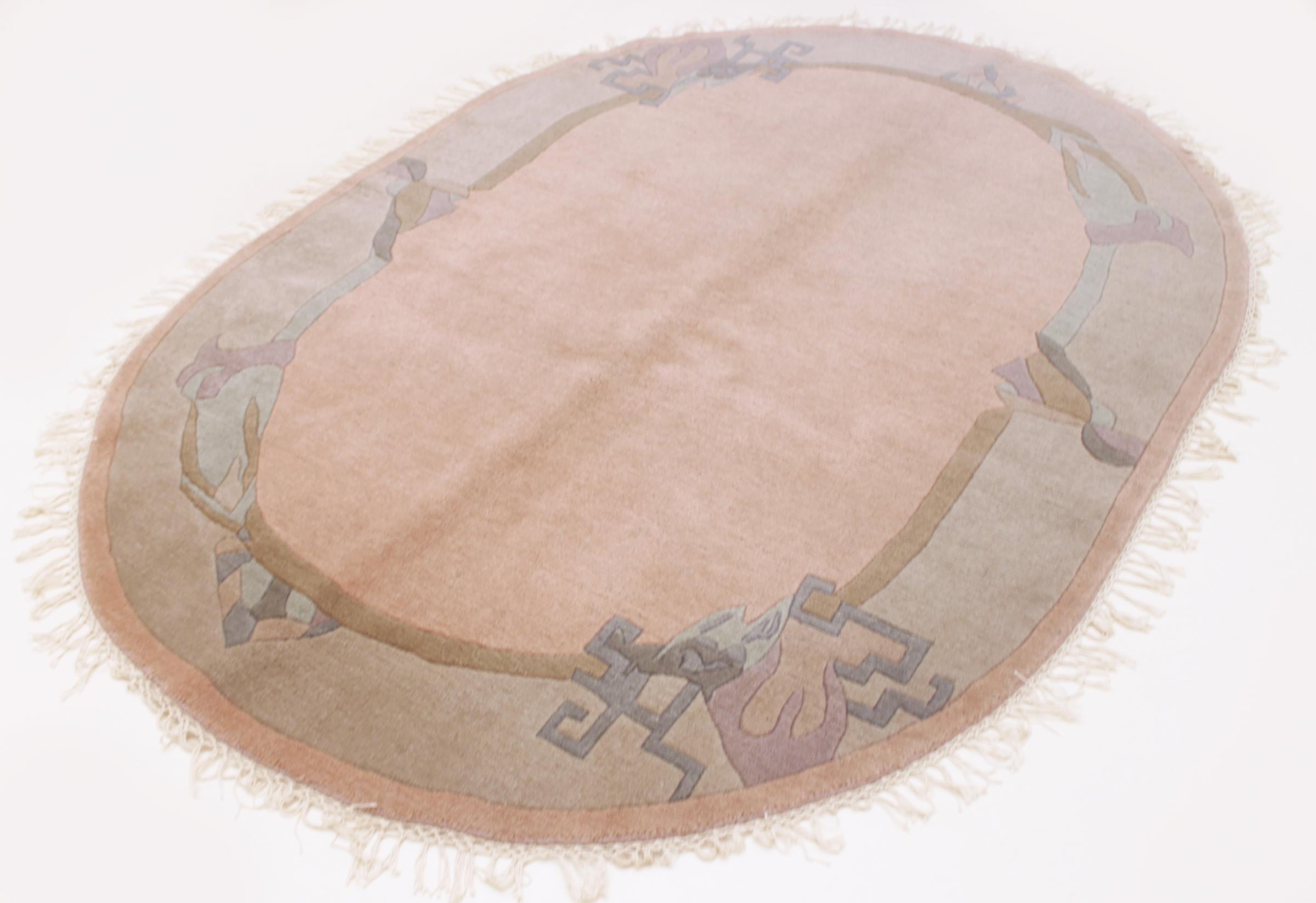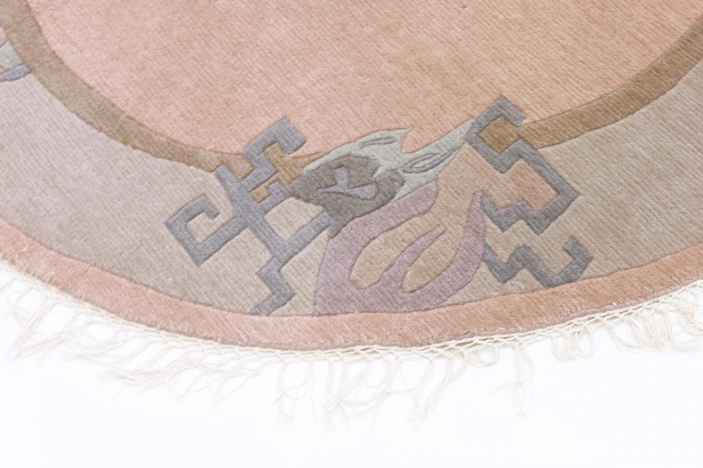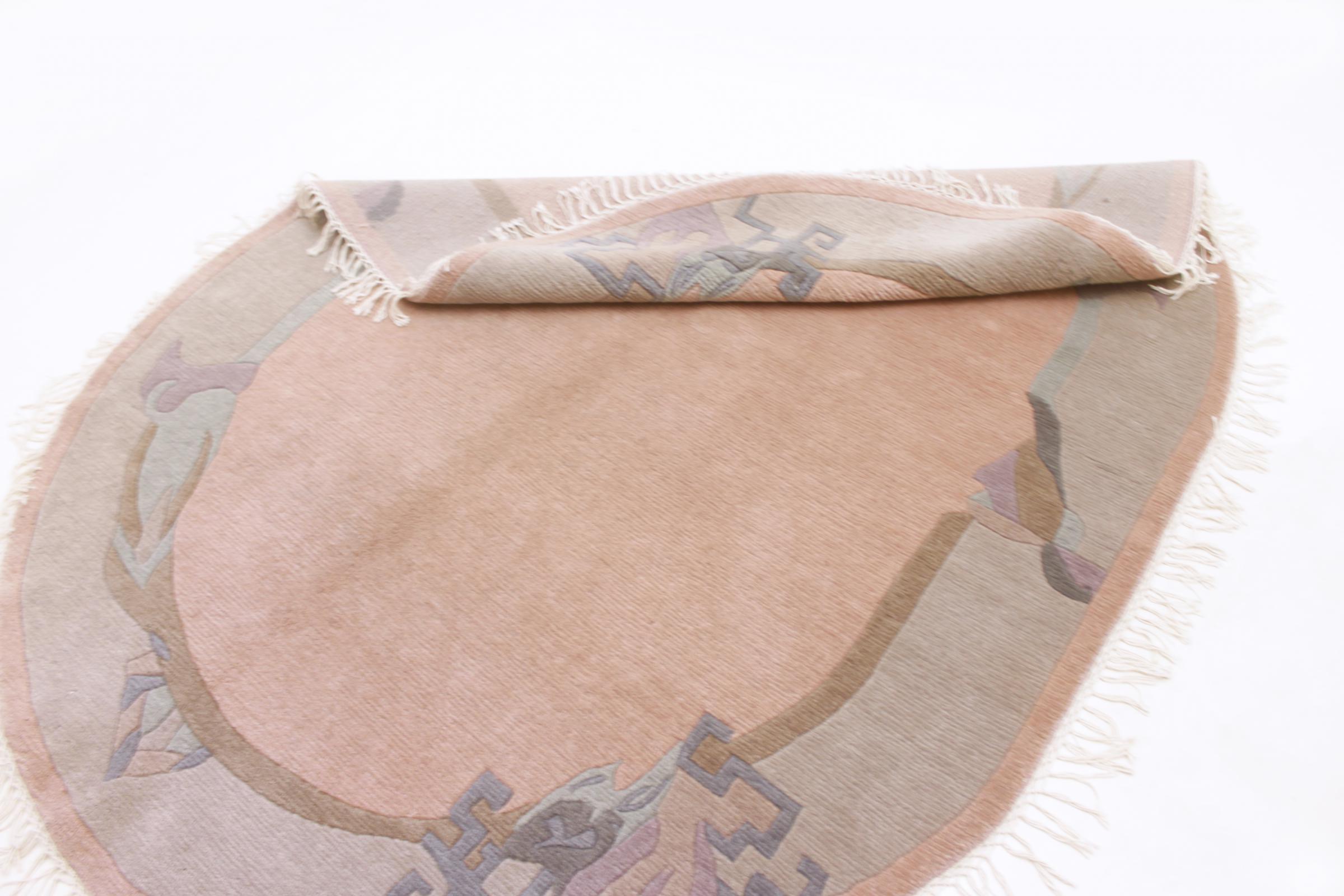 Esta alcatifa vem do Nepal e foi atada ali à mão. Normalmente, os tapetes nepaleses são um pouco mais grosseiros e têm padrões coloridos modernos. As variações clássicas captam desenhos de tapetes tradicionais chineses. O aspecto dos tapetes do Nepal tem sido adaptado ao longo do tempo para satisfazer a procura dos mercados ocidentais. Hoje em dia é possível encontrar cores pastel e padrões geométricos nestes tapetes com nó de mão.