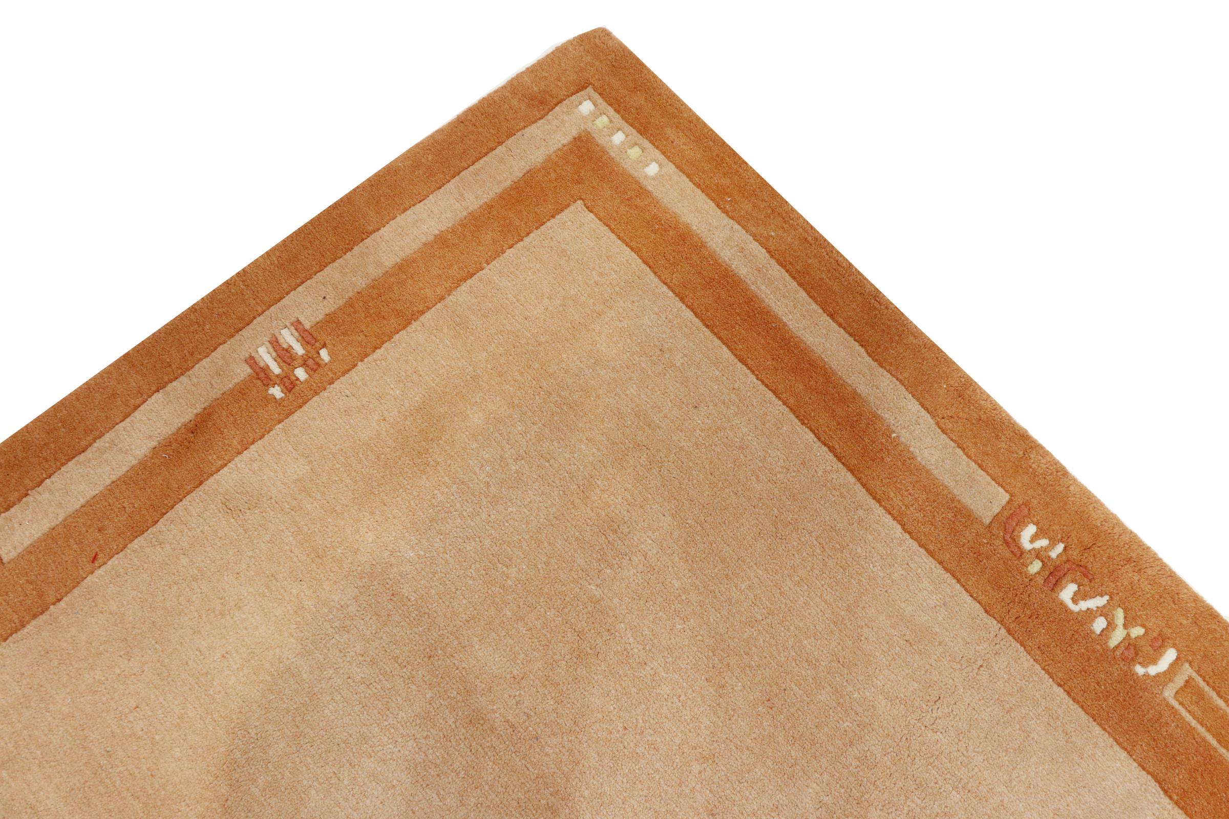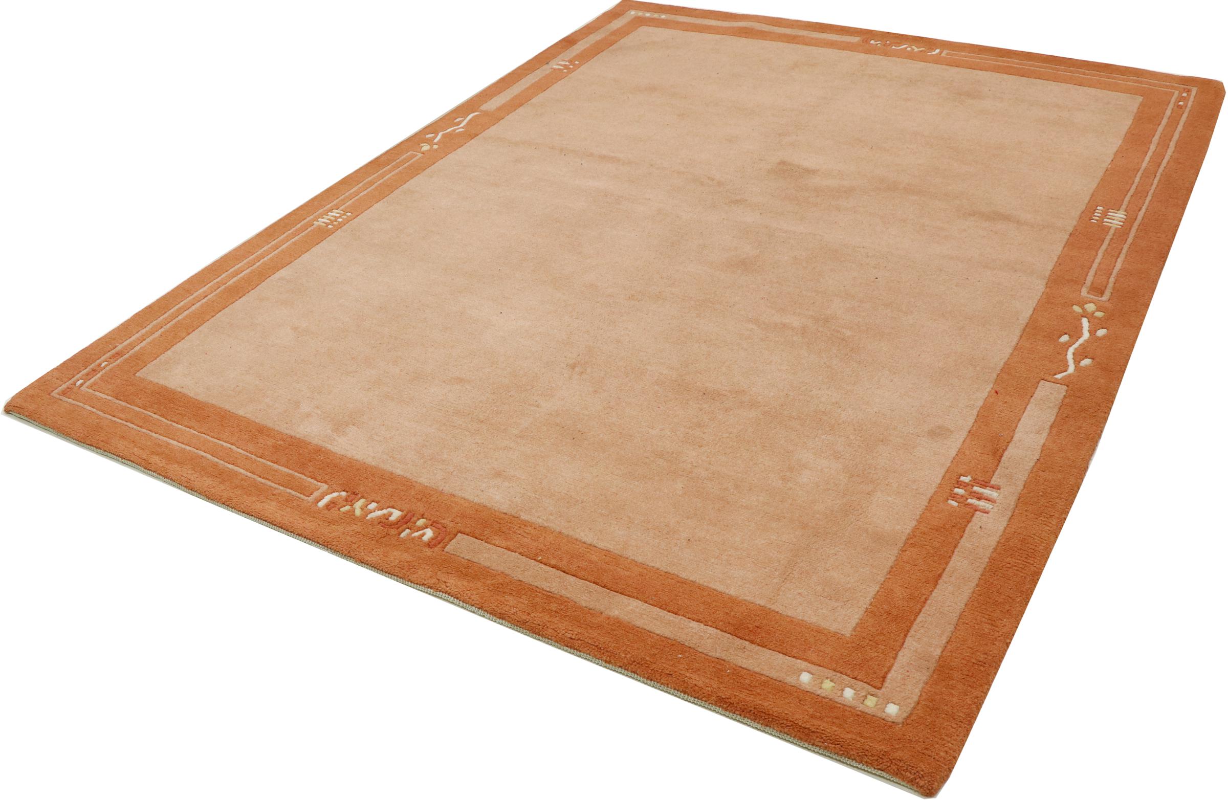Esta alcatifa vem do Nepal e foi atada ali à mão. Normalmente, os tapetes nepaleses são um pouco mais grosseiros e têm padrões coloridos modernos. As variações clássicas captam desenhos de tapetes tradicionais chineses. O aspecto dos tapetes do Nepal tem sido adaptado ao longo do tempo para satisfazer a procura dos mercados ocidentais. Hoje em dia é possível encontrar cores pastel e padrões geométricos nestes tapetes com nó de mão.
