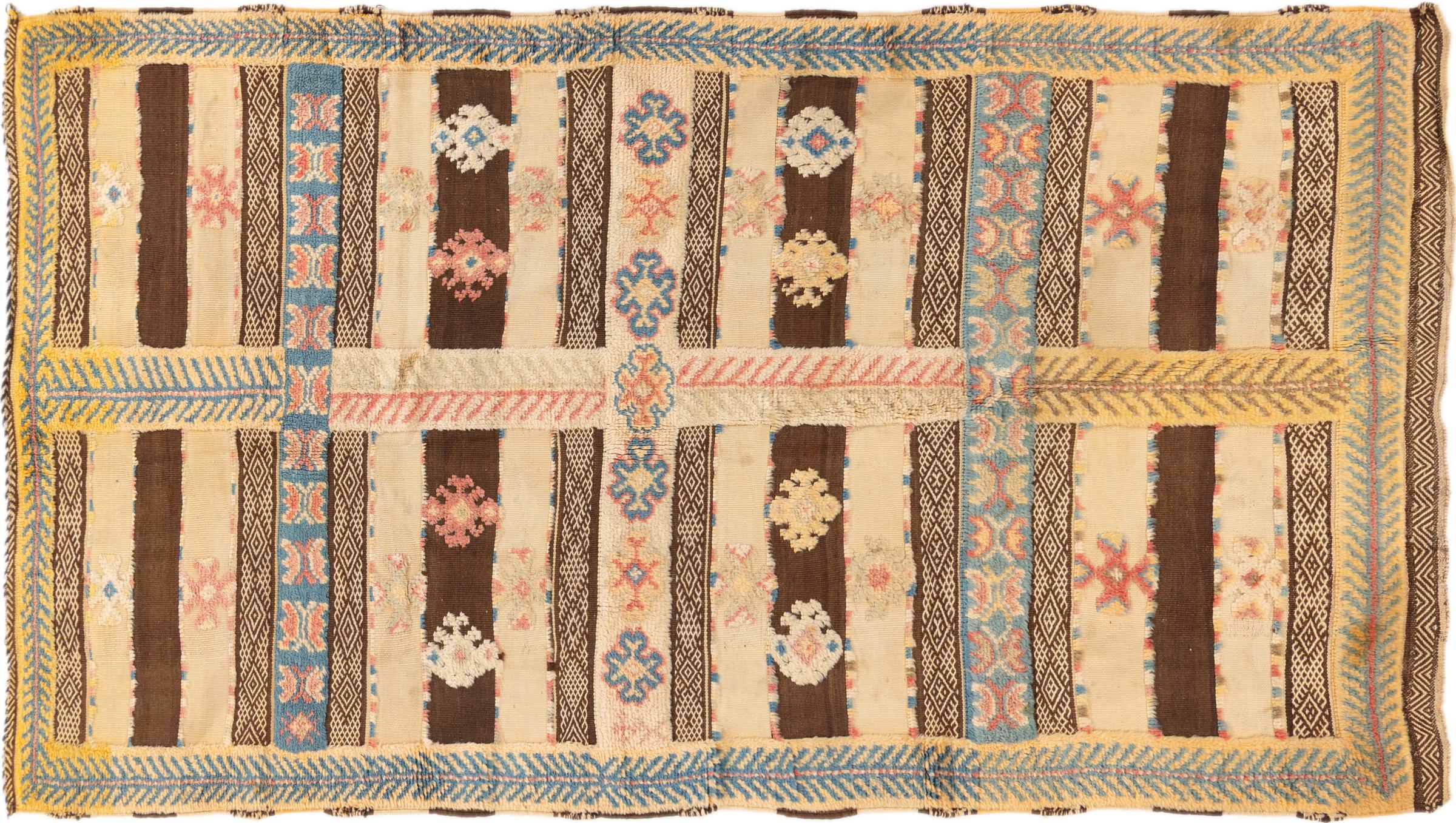 Este tapete é feito de lã de ovelha fiada à mão, da mais alta qualidade. Especialmente no Irão (antiga Pérsia), Afeganistão e Paquistão, a lã ainda é fiada à mão antes do início do nó do tapete. A lã tem provado ser um material natural e extremamente resistente ao longo dos séculos. Entre outras coisas, tem propriedades repelentes de impurezas e isolantes térmicos. Ao mesmo tempo, a lã é incomparavelmente macia e tem um brilho natural.