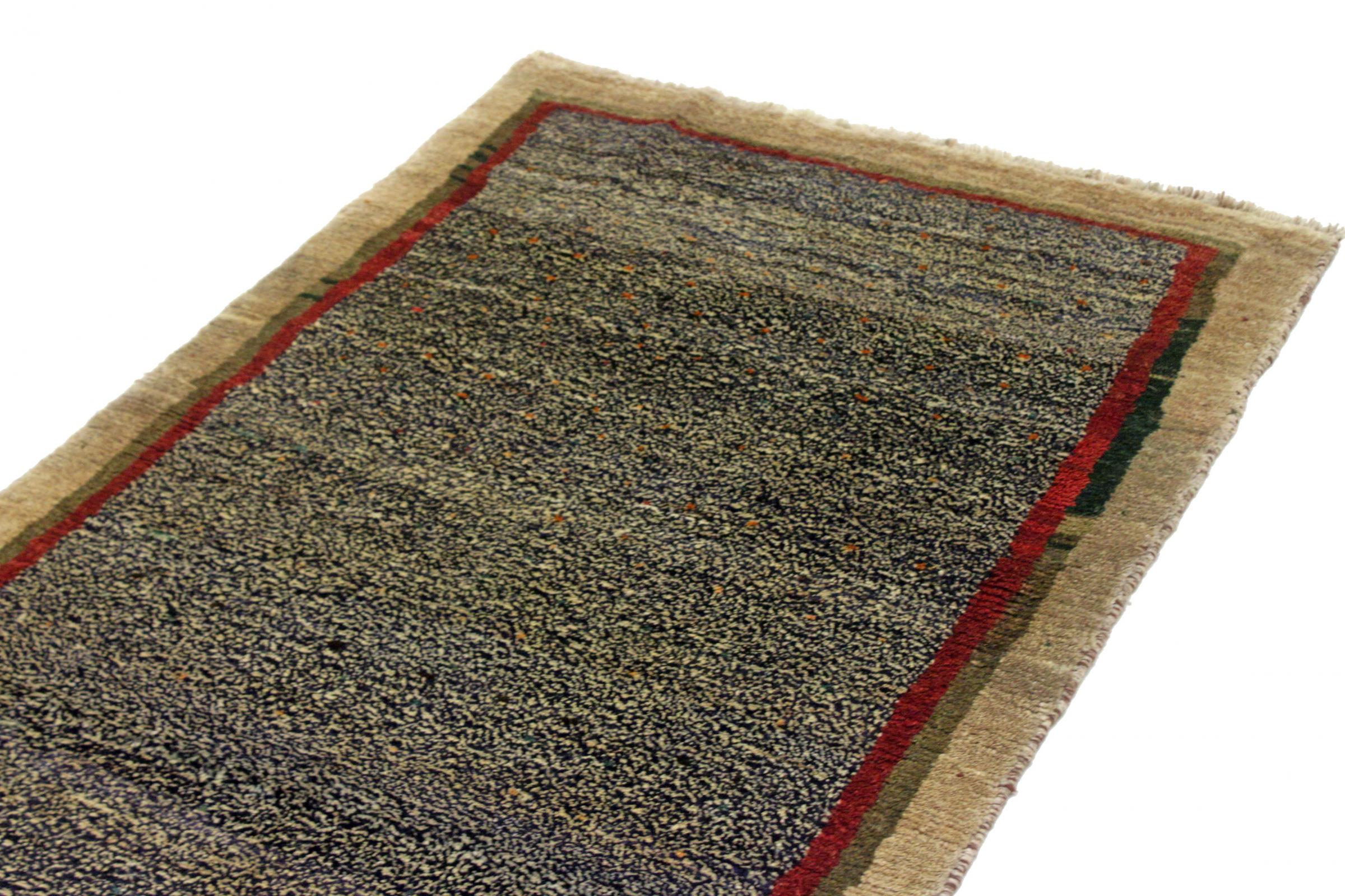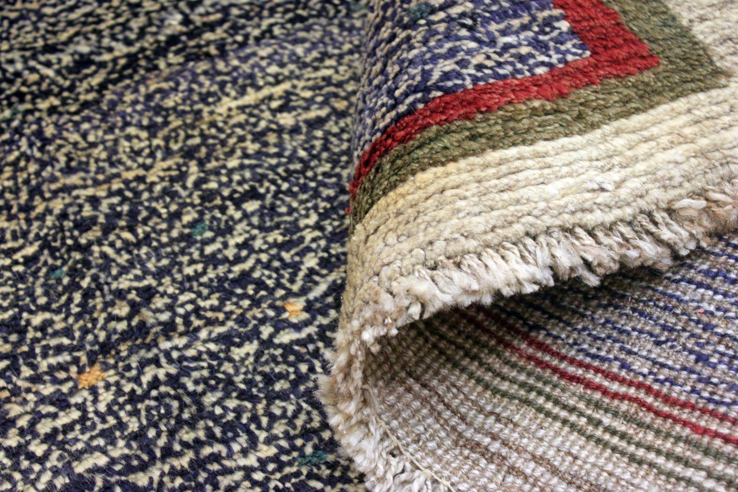 Este belo tapete é um Gabbeh persa e por isso pertence aos tapetes Gabbeh da mais alta qualidade. Os tapetes são atados por nómadas ou semi-nómadas no Irão, de acordo com o artesanato tradicional. Os simples motivos e padrões são, na sua maioria, inspirados pelo ambiente imediato dos nómadas. Por exemplo, camelos, árvores ou arbustos podem ser encontrados nos tapetes tradicionais. Os tapetes Gabbeh persa são feitos de lã proveniente de rebanhos de ovinos criados localmente. Por conseguinte, a lã ainda é, na sua maioria, fiada à mão. Assim, cada um destes tapetes orientais corporiza um carácter único de cultura secular.