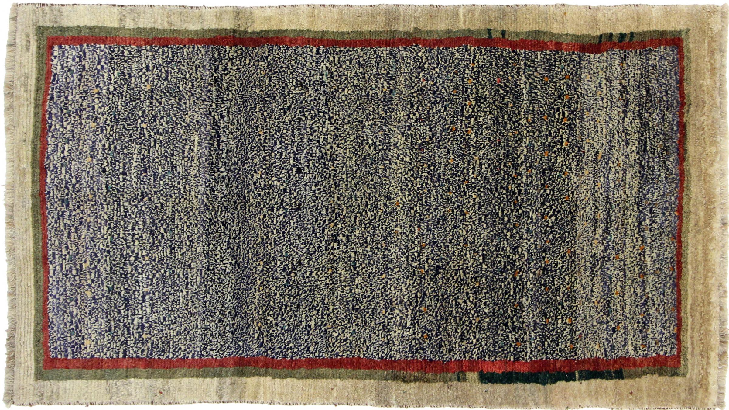 Nº do Tapete: 111078005701598 Tamanho: 184x105 cm Espessura: aproximadamente 18 mm Nós: 96 000 - 120 000 / m² Processamento: Atado à mão Veludo: Lã tecida à mão Urdidura: Lã Natural Origem: Pérsia / Iran Idade: Novo Peso: aproximadamente 10 kg Também conhecido como Gabbe, Ghabbeh Em armazém: Único - Apenas 1 em stock