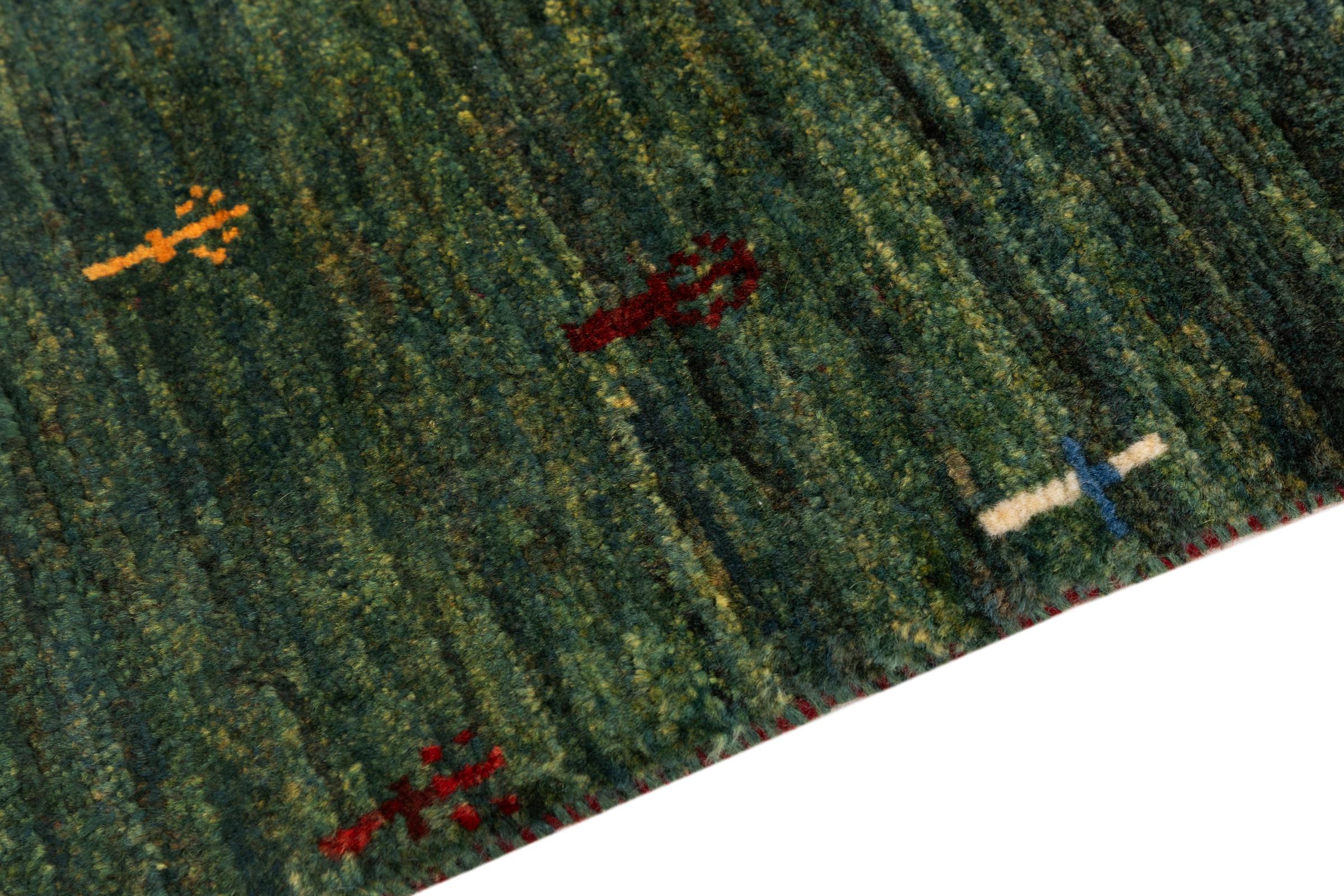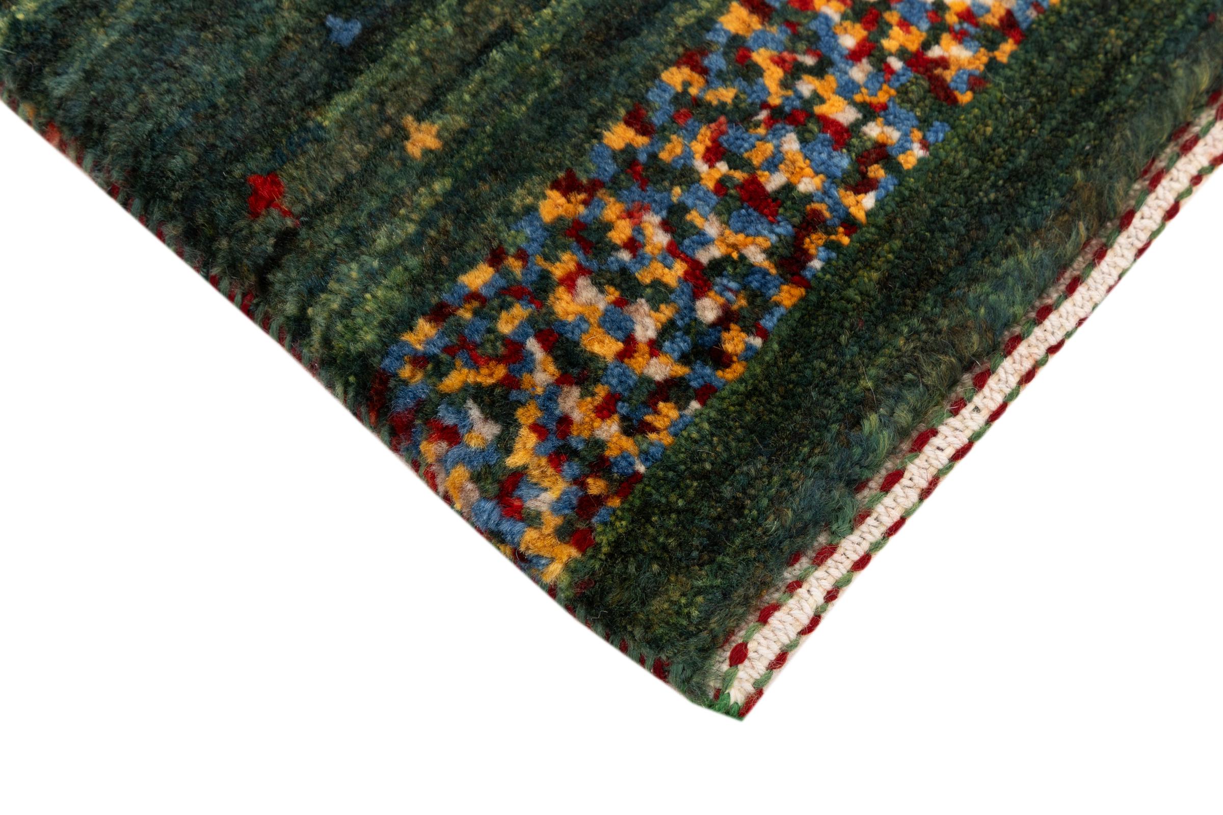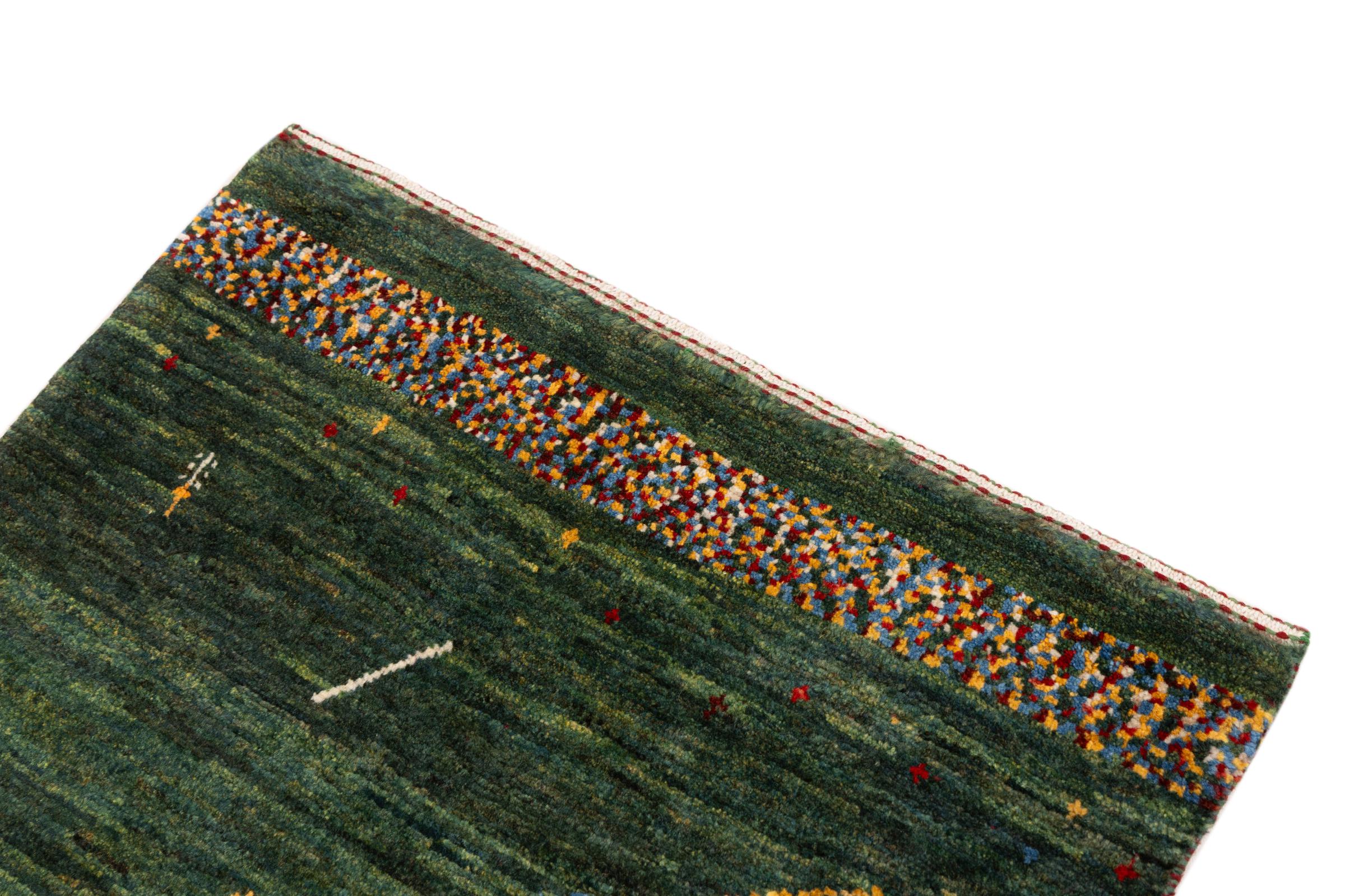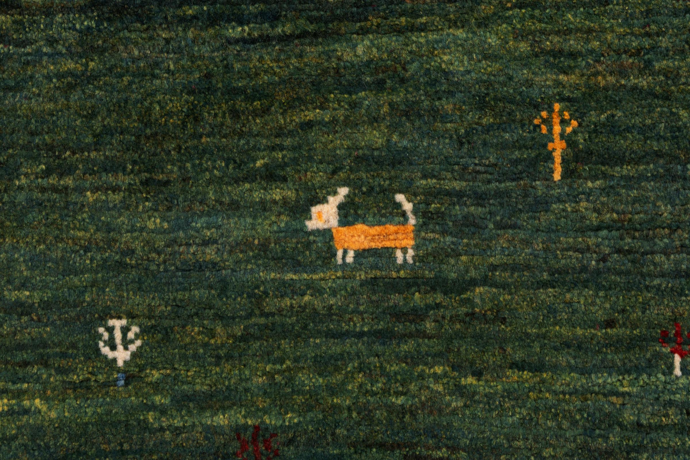 Este Gabbeh Kashkuli foi feito à mão por semi-nómadas no sudoeste do Irão. Graças à tradição persa, oferece uma excelente qualidade. Os motivos deste tipo são geralmente mantidos simples e não parecem demasiado sobrecarregados.