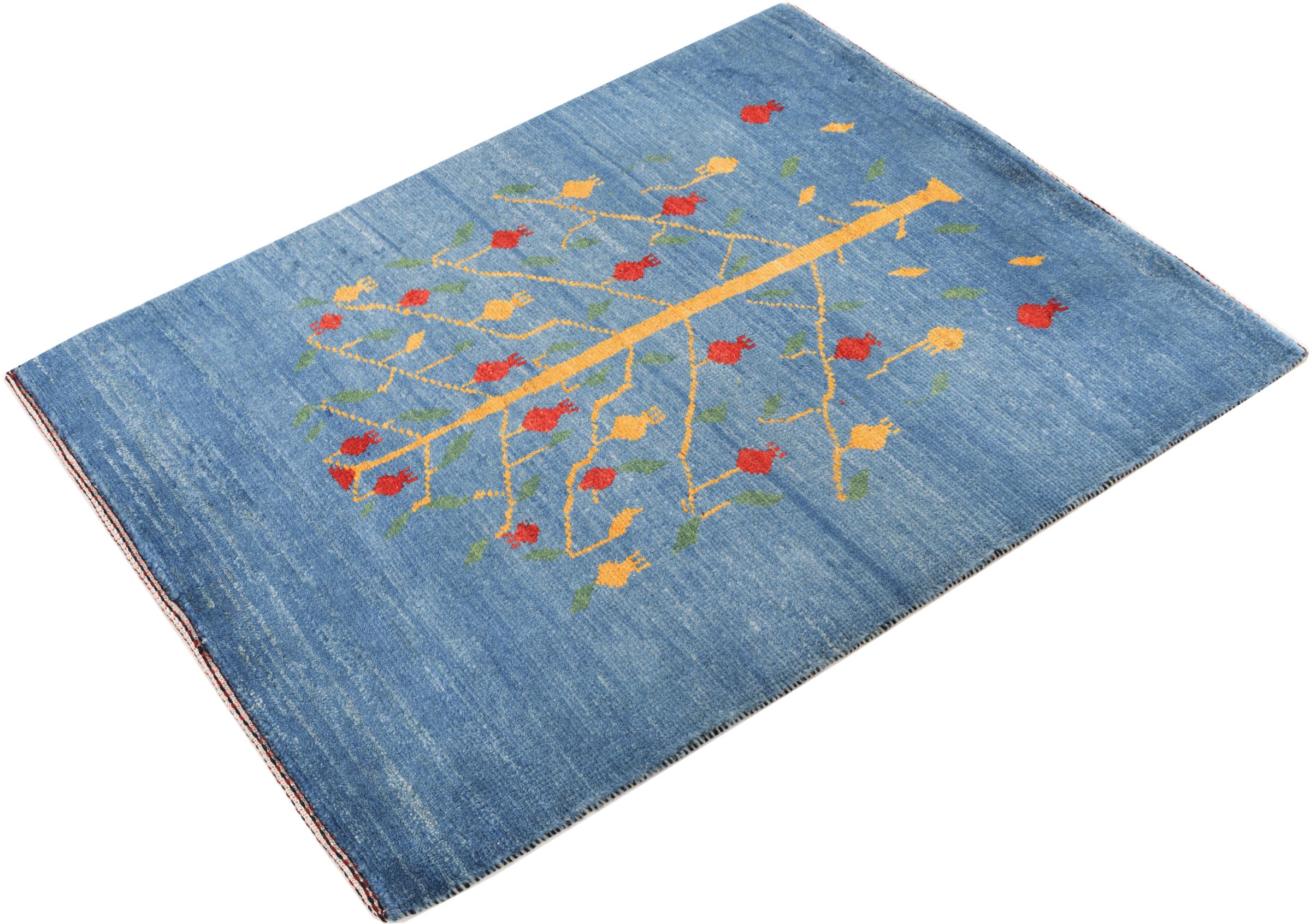 Este belo tapete é um Gabbeh persa e por isso pertence aos tapetes Gabbeh da mais alta qualidade. Os tapetes são atados por nómadas ou semi-nómadas no Irão, de acordo com o artesanato tradicional. Os simples motivos e padrões são, na sua maioria, inspirados pelo ambiente imediato dos nómadas. Por exemplo, camelos, árvores ou arbustos podem ser encontrados nos tapetes tradicionais. Os tapetes Gabbeh persa são feitos de lã proveniente de rebanhos de ovinos criados localmente. Por conseguinte, a lã ainda é, na sua maioria, fiada à mão. Assim, cada um destes tapetes orientais corporiza um carácter único de cultura secular.