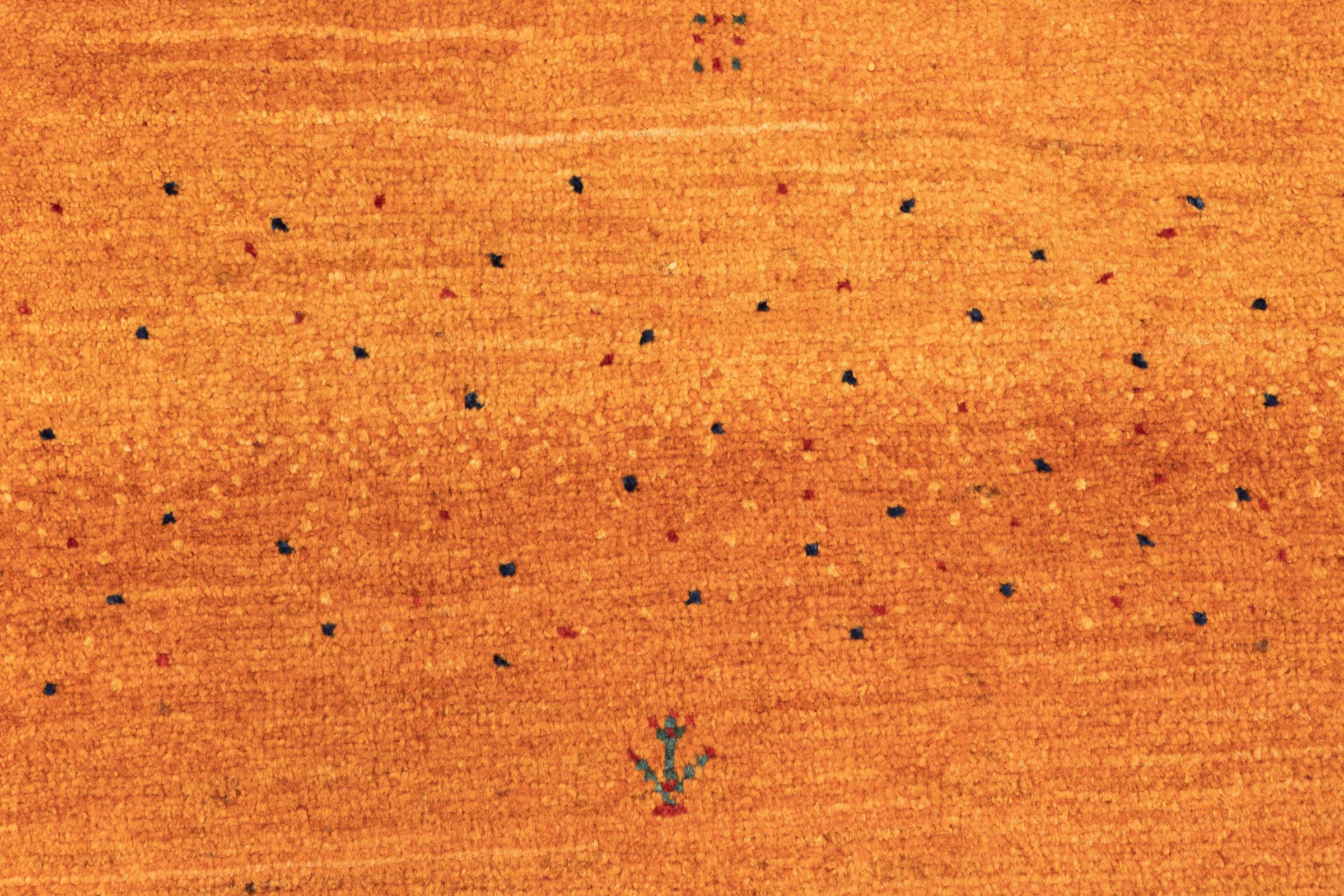 Este belo tapete é um Gabbeh persa e por isso pertence aos tapetes Gabbeh da mais alta qualidade. Os tapetes são atados por nómadas ou semi-nómadas no Irão, de acordo com o artesanato tradicional. Os simples motivos e padrões são, na sua maioria, inspirados pelo ambiente imediato dos nómadas. Por exemplo, camelos, árvores ou arbustos podem ser encontrados nos tapetes tradicionais. Os tapetes Gabbeh persa são feitos de lã proveniente de rebanhos de ovinos criados localmente. Por conseguinte, a lã ainda é, na sua maioria, fiada à mão. Assim, cada um destes tapetes orientais corporiza um carácter único de cultura secular.