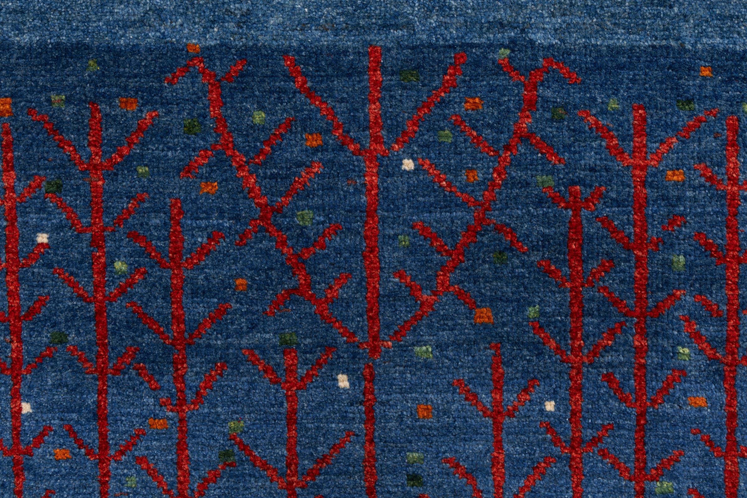 Este Gabbeh Kashkuli foi feito à mão por semi-nómadas no sudoeste do Irão. Graças à tradição persa, oferece uma excelente qualidade. Os motivos deste tipo são geralmente mantidos simples e não parecem demasiado sobrecarregados.