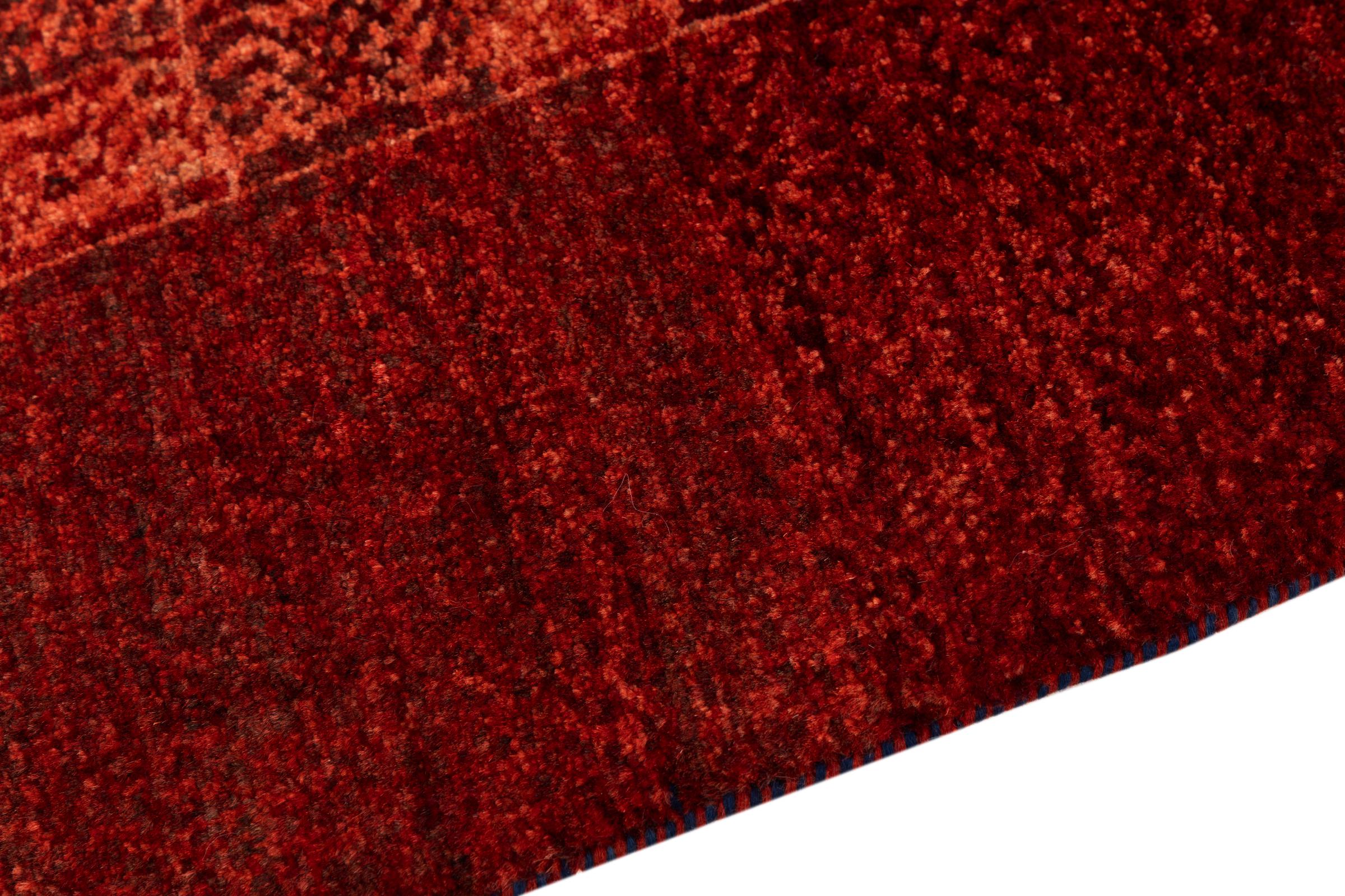 Este belo tapete é um Gabbeh persa e por isso pertence aos tapetes Gabbeh da mais alta qualidade. Os tapetes são atados por nómadas ou semi-nómadas no Irão, de acordo com o artesanato tradicional. Os simples motivos e padrões são, na sua maioria, inspirados pelo ambiente imediato dos nómadas. Por exemplo, camelos, árvores ou arbustos podem ser encontrados nos tapetes tradicionais. Os tapetes Gabbeh persa são feitos de lã proveniente de rebanhos de ovinos criados localmente. Por conseguinte, a lã ainda é, na sua maioria, fiada à mão. Assim, cada um destes tapetes orientais corporiza um carácter único de cultura secular.