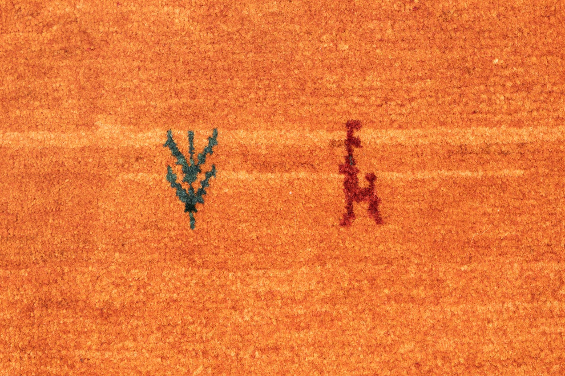Este belo tapete é um Gabbeh persa e por isso pertence aos tapetes Gabbeh da mais alta qualidade. Os tapetes são atados por nómadas ou semi-nómadas no Irão, de acordo com o artesanato tradicional. Os simples motivos e padrões são, na sua maioria, inspirados pelo ambiente imediato dos nómadas. Por exemplo, camelos, árvores ou arbustos podem ser encontrados nos tapetes tradicionais. Os tapetes Gabbeh persa são feitos de lã proveniente de rebanhos de ovinos criados localmente. Por conseguinte, a lã ainda é, na sua maioria, fiada à mão. Assim, cada um destes tapetes orientais corporiza um carácter único de cultura secular.