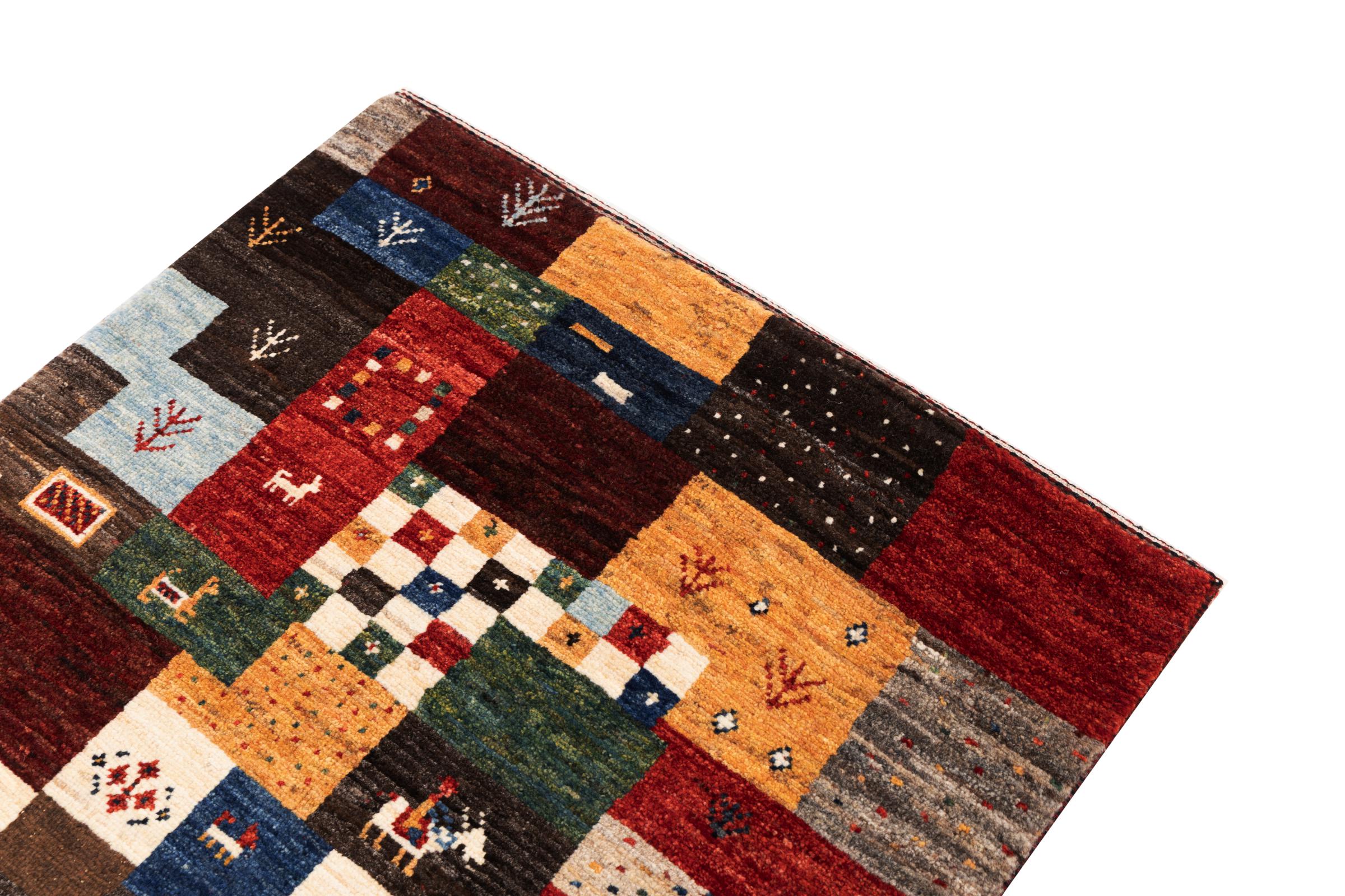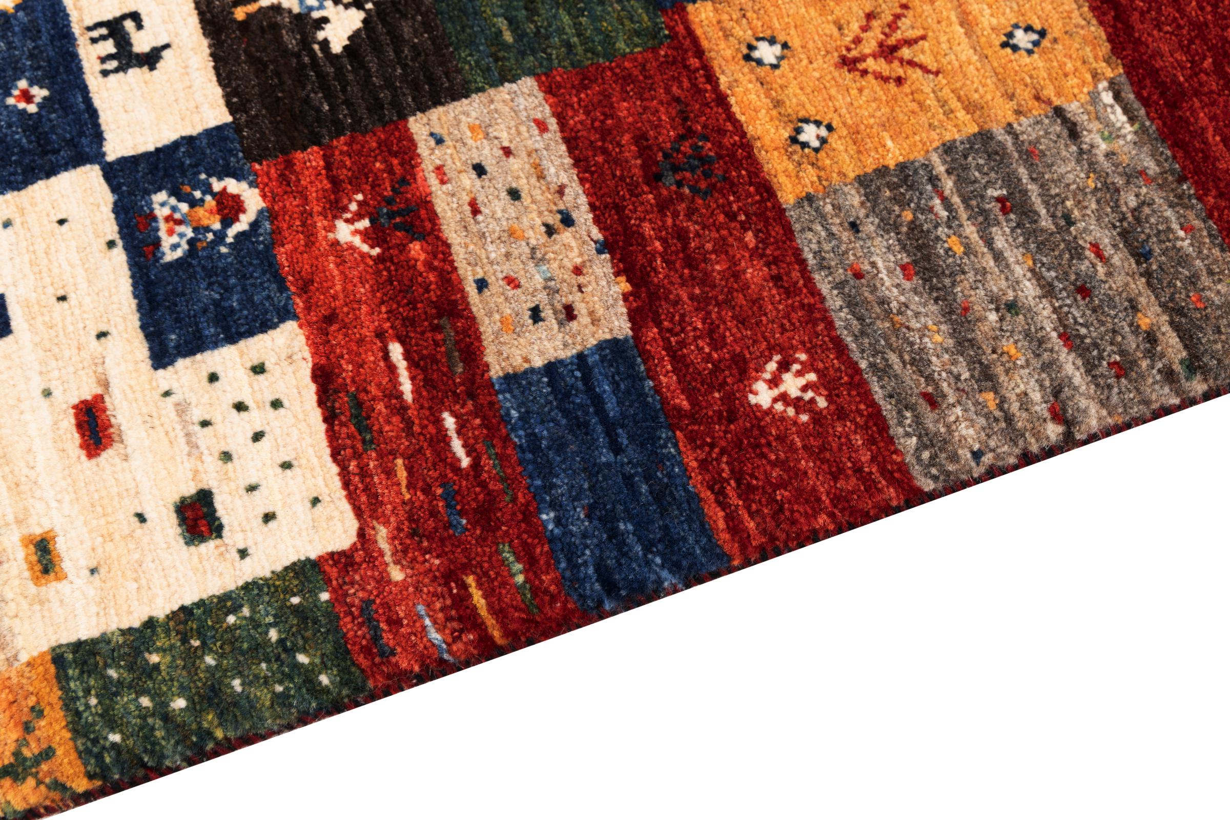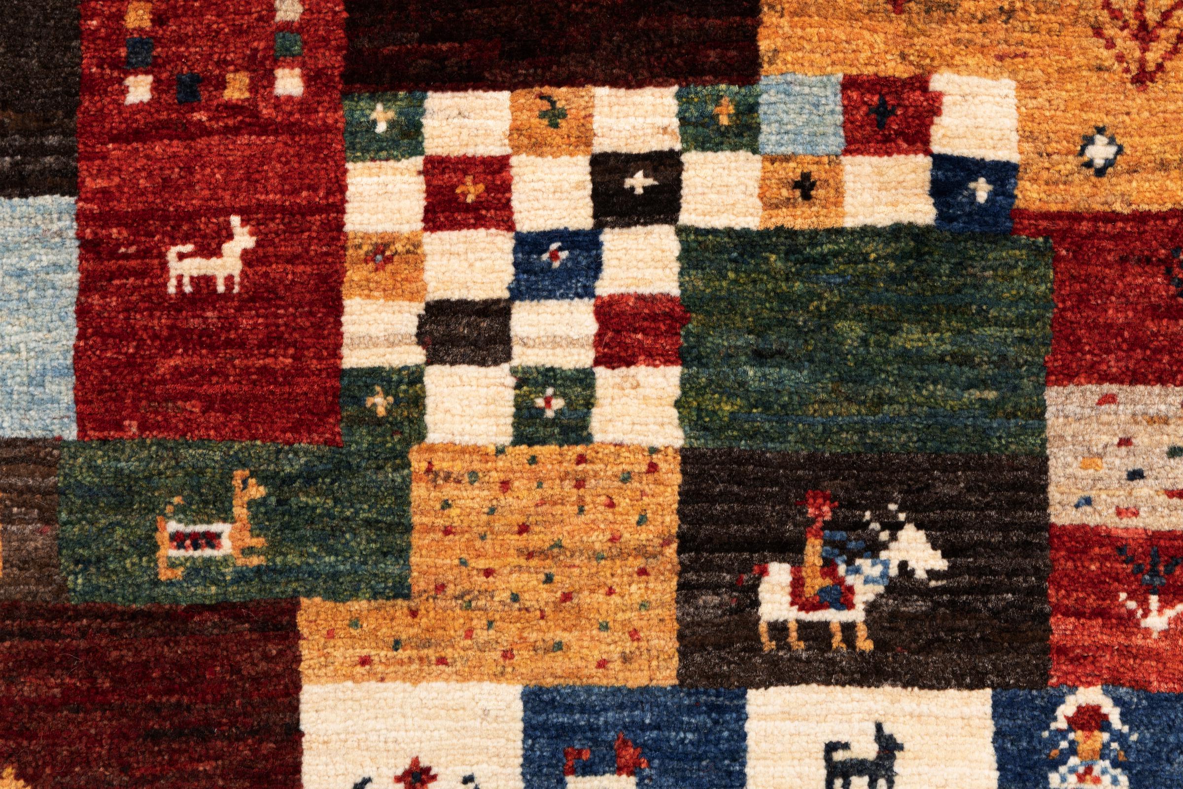 Este Gabbeh Kashkuli foi feito à mão por semi-nómadas no sudoeste do Irão. Graças à tradição persa, oferece uma excelente qualidade. Os motivos deste tipo são geralmente mantidos simples e não parecem demasiado sobrecarregados.
