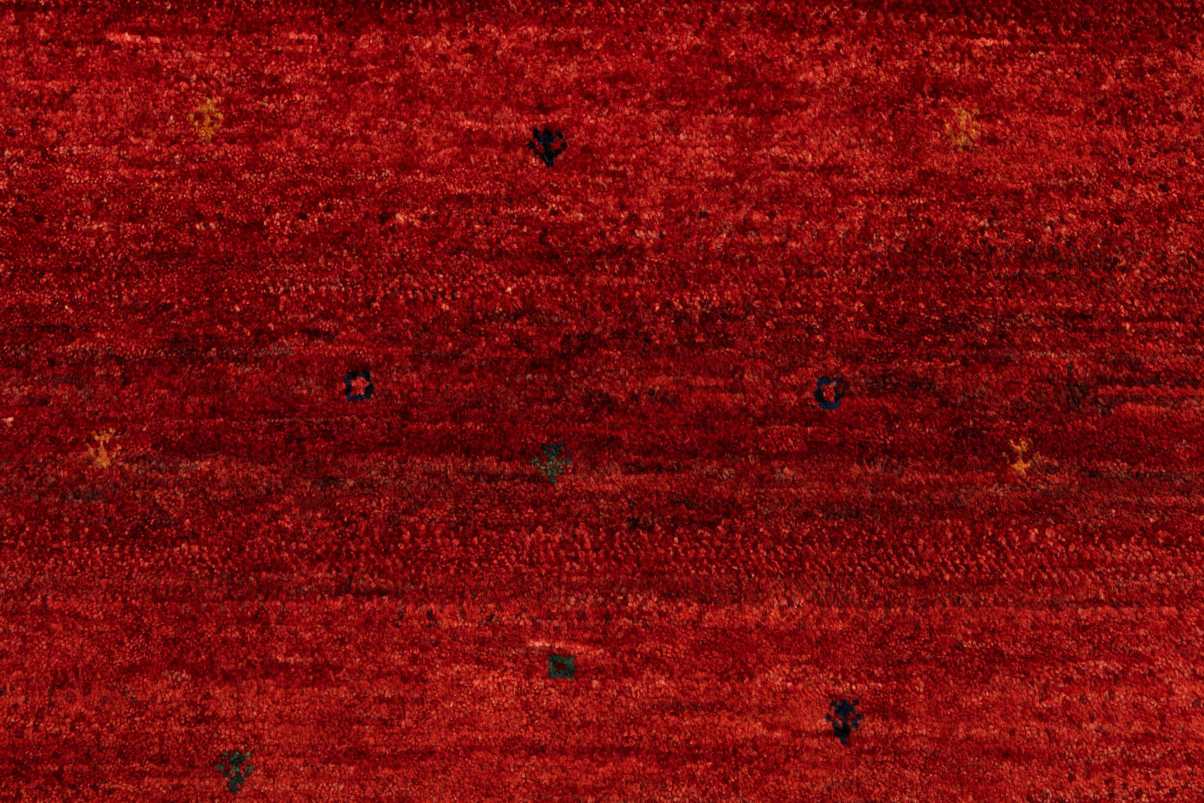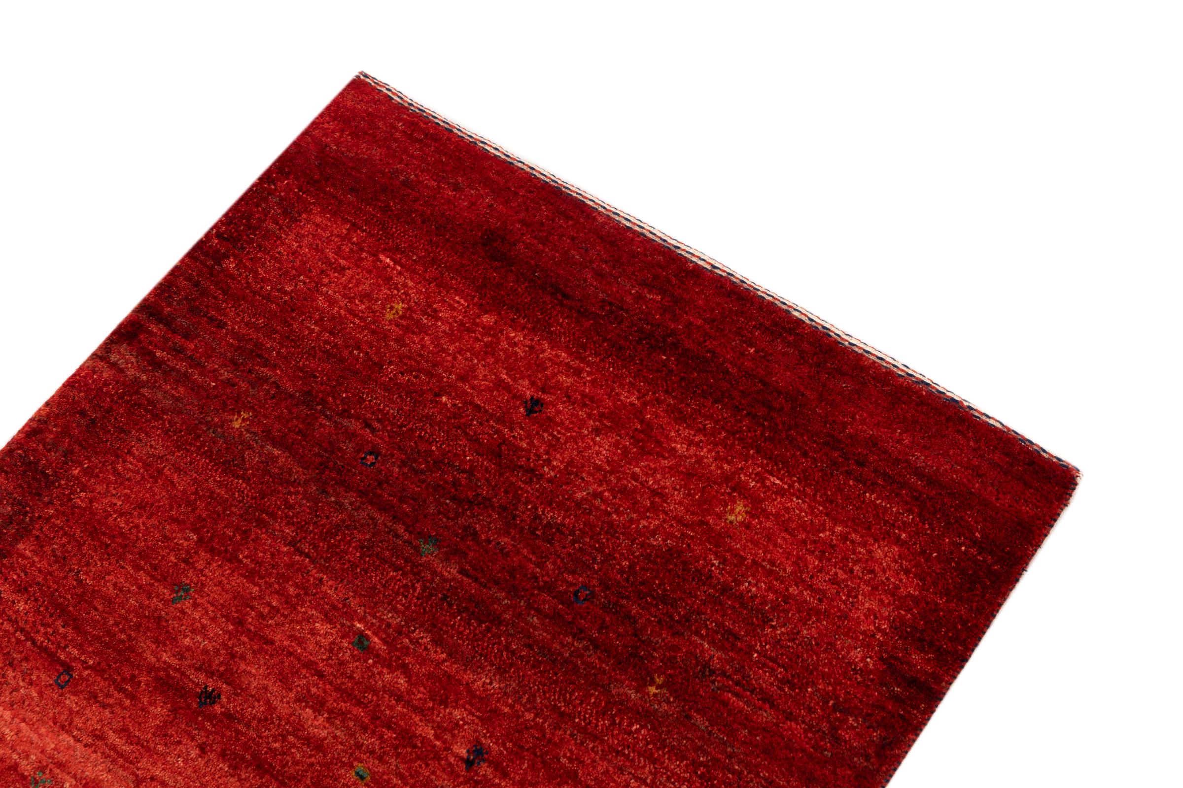 Este Gabbeh Kashkuli foi feito à mão por semi-nómadas no sudoeste do Irão. Graças à tradição persa, oferece uma excelente qualidade. Os motivos deste tipo são geralmente mantidos simples e não parecem demasiado sobrecarregados.
