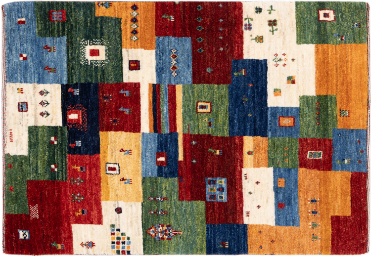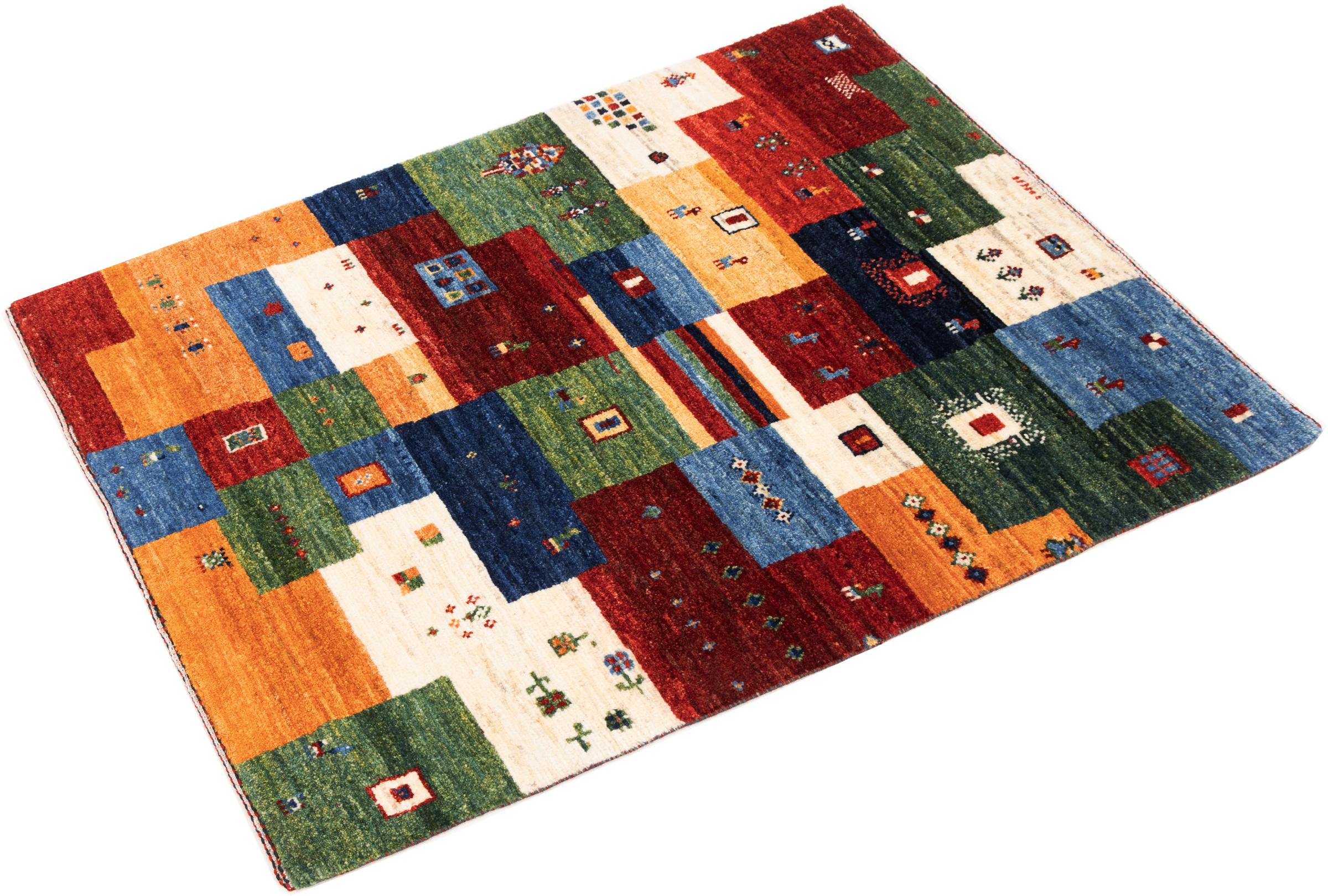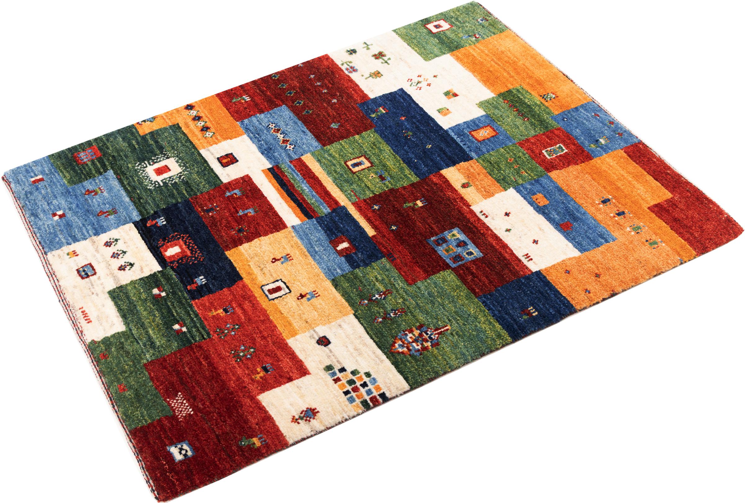 Nº do Tapete: 301800007697703 Tamanho: 120x84 cm Espessura: aproximadamente 15 mm Nós: 72 000 - 90 000 / m² Processamento: Atado à mão Veludo: Lã tecida à mão Urdidura: Lã Natural Origem: Pérsia / Iran Idade: Novo Peso: aproximadamente 4 kg Também conhecido como Gabbe, Kashkuli Em armazém: Único - Apenas 1 em stock