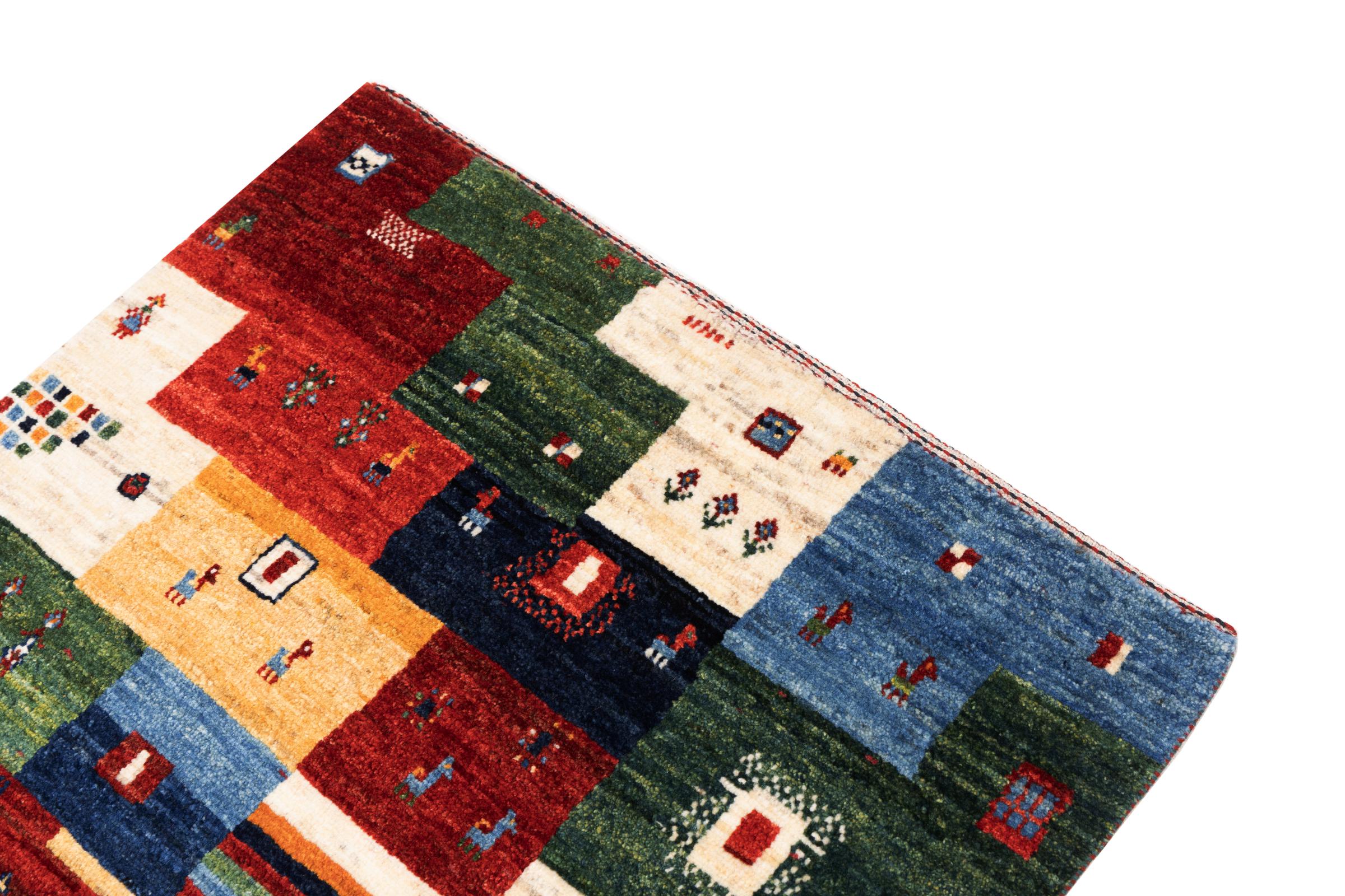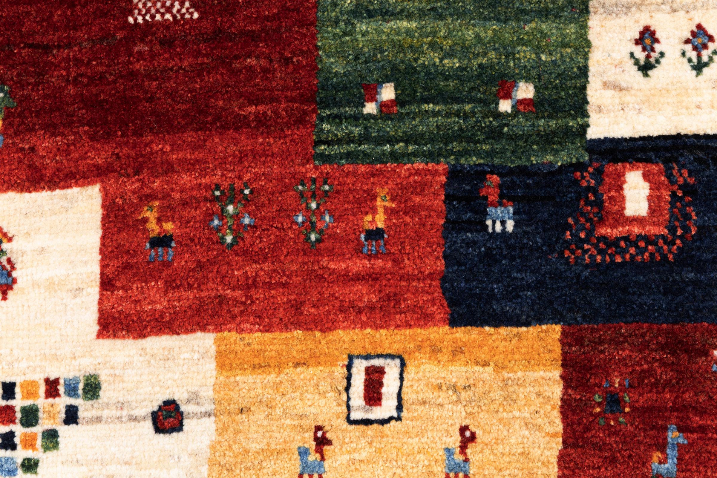 Este Gabbeh Kashkuli foi feito à mão por semi-nómadas no sudoeste do Irão. Graças à tradição persa, oferece uma excelente qualidade. Os motivos deste tipo são geralmente mantidos simples e não parecem demasiado sobrecarregados.