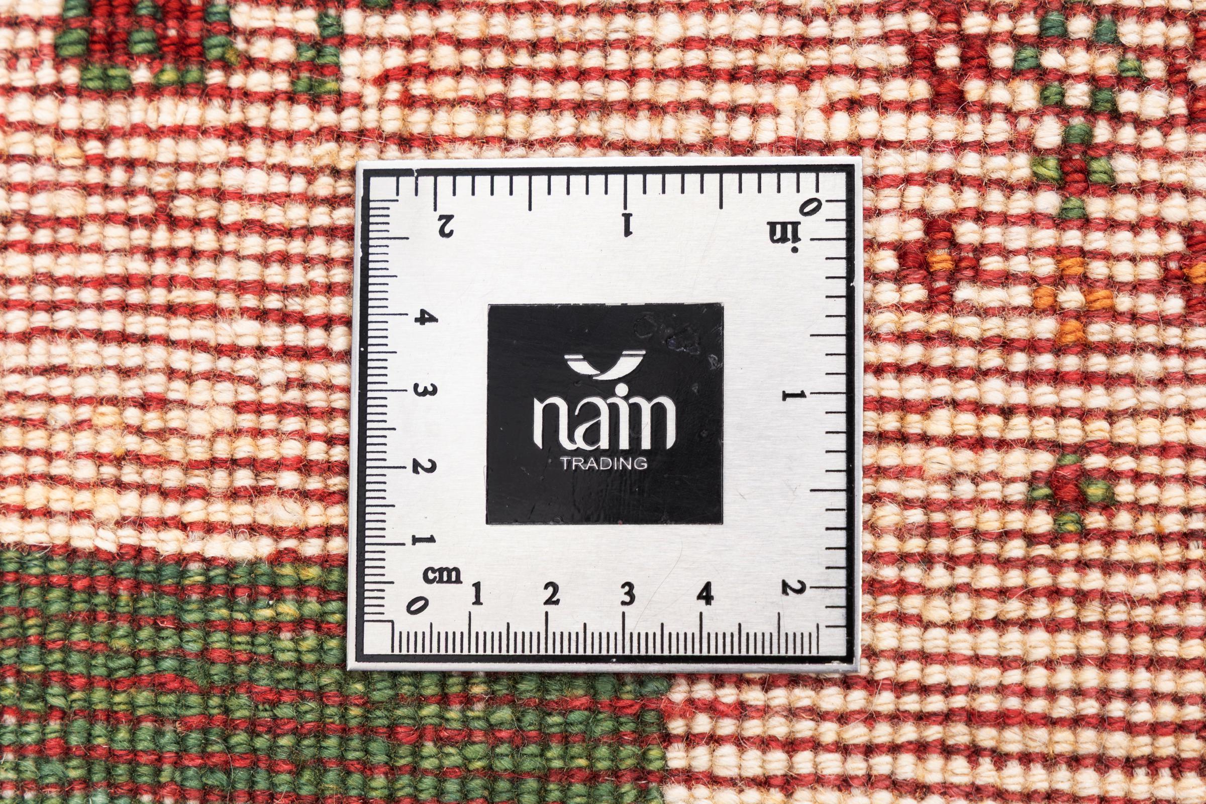 Este tapete é feito de lã de ovelha fiada à mão, da mais alta qualidade. Especialmente no Irão (antiga Pérsia), Afeganistão e Paquistão, a lã ainda é fiada à mão antes do início do nó do tapete. A lã tem provado ser um material natural e extremamente resistente ao longo dos séculos. Entre outras coisas, tem propriedades repelentes de impurezas e isolantes térmicos. Ao mesmo tempo, a lã é incomparavelmente macia e tem um brilho natural.