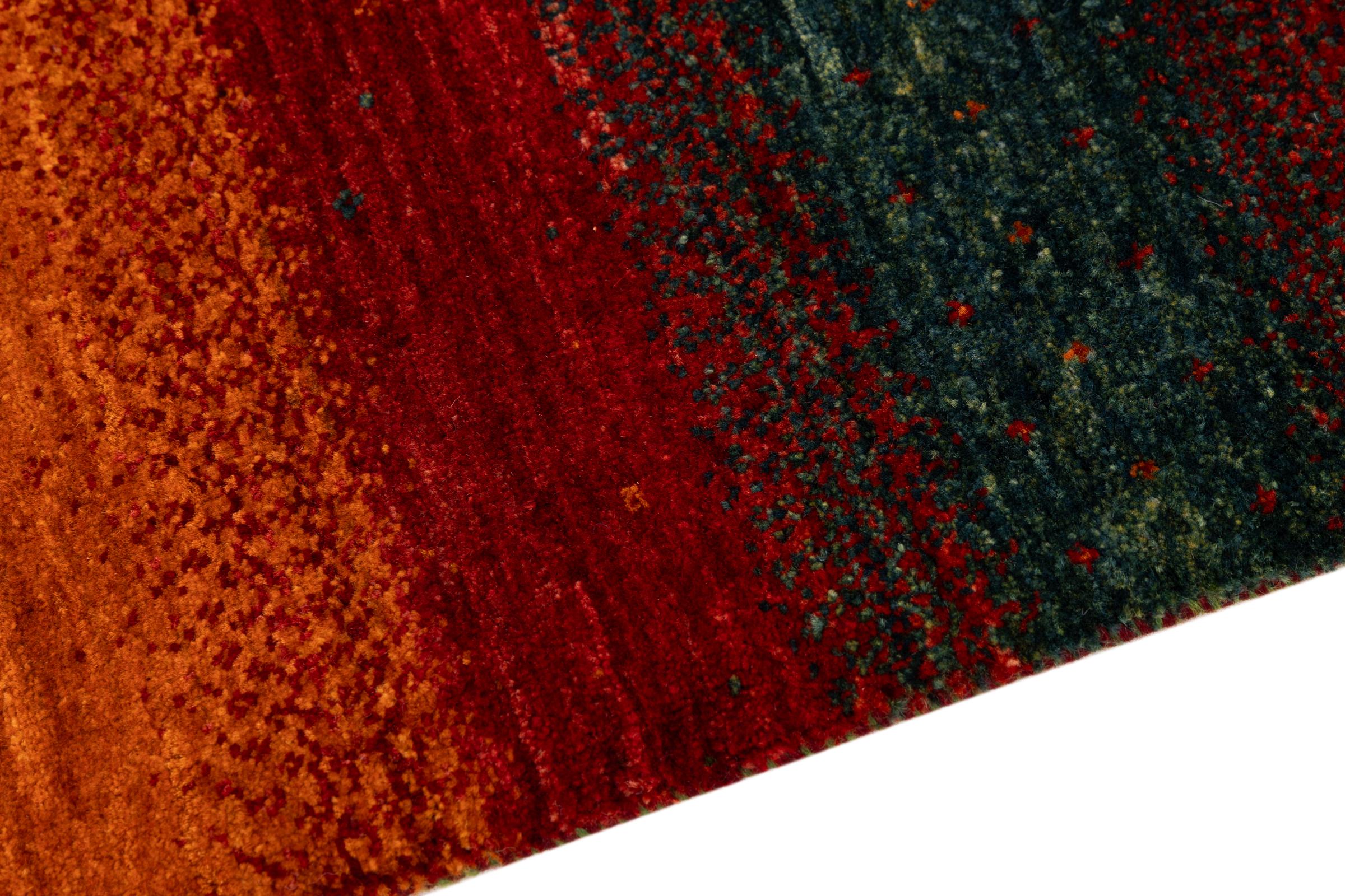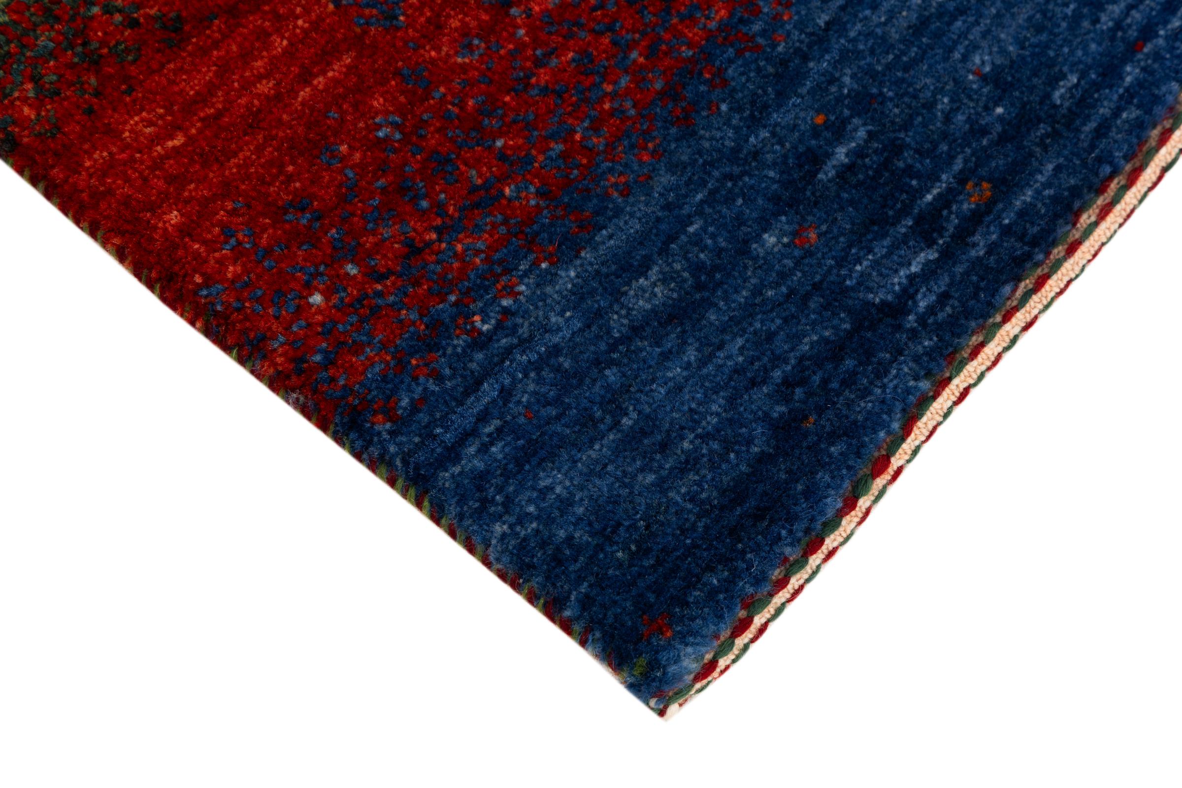 Este belo tapete é um Gabbeh persa e por isso pertence aos tapetes Gabbeh da mais alta qualidade. Os tapetes são atados por nómadas ou semi-nómadas no Irão, de acordo com o artesanato tradicional. Os simples motivos e padrões são, na sua maioria, inspirados pelo ambiente imediato dos nómadas. Por exemplo, camelos, árvores ou arbustos podem ser encontrados nos tapetes tradicionais. Os tapetes Gabbeh persa são feitos de lã proveniente de rebanhos de ovinos criados localmente. Por conseguinte, a lã ainda é, na sua maioria, fiada à mão. Assim, cada um destes tapetes orientais corporiza um carácter único de cultura secular.