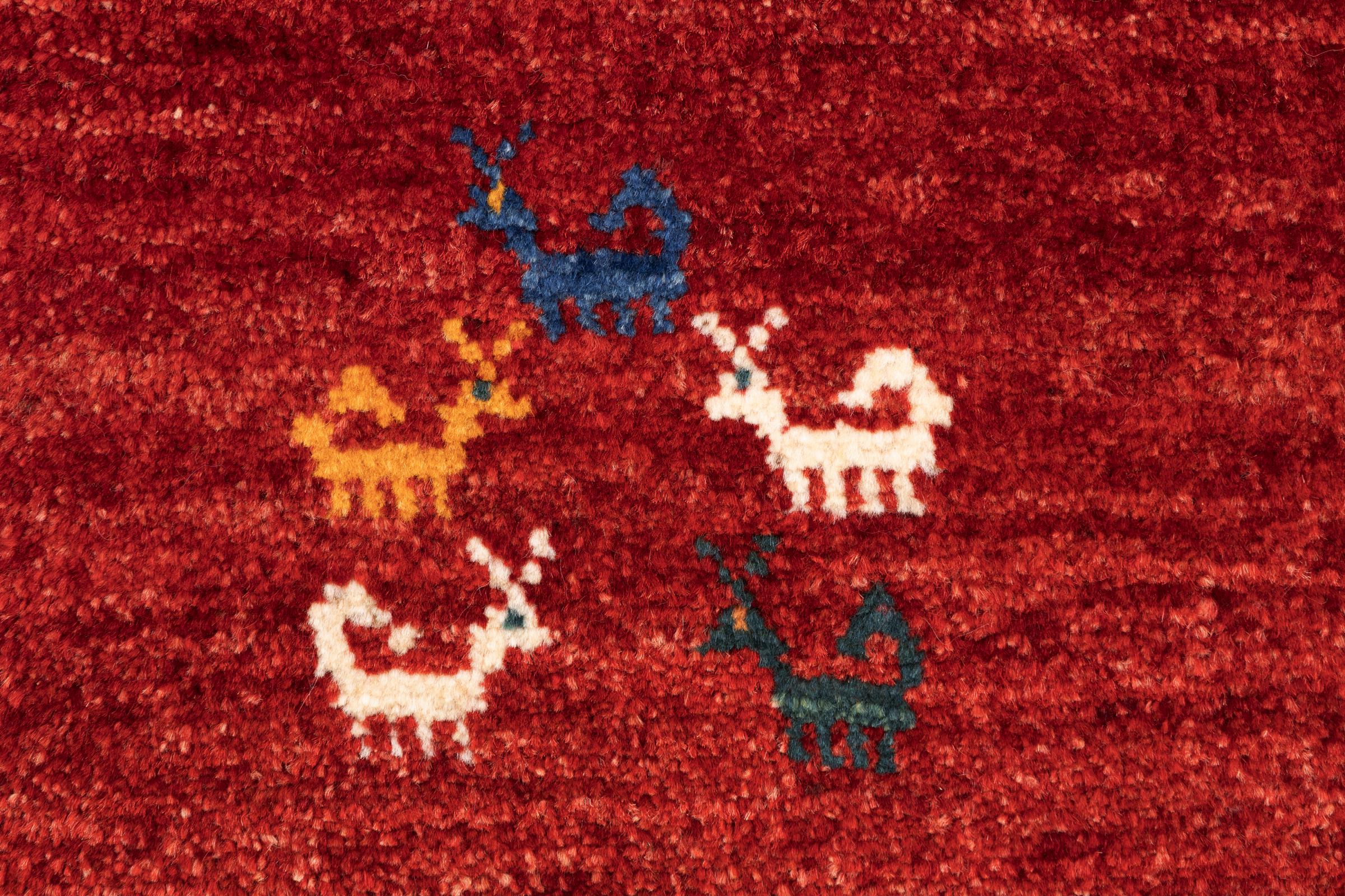 Este Gabbeh Kashkuli foi feito à mão por semi-nómadas no sudoeste do Irão. Graças à tradição persa, oferece uma excelente qualidade. Os motivos deste tipo são geralmente mantidos simples e não parecem demasiado sobrecarregados.