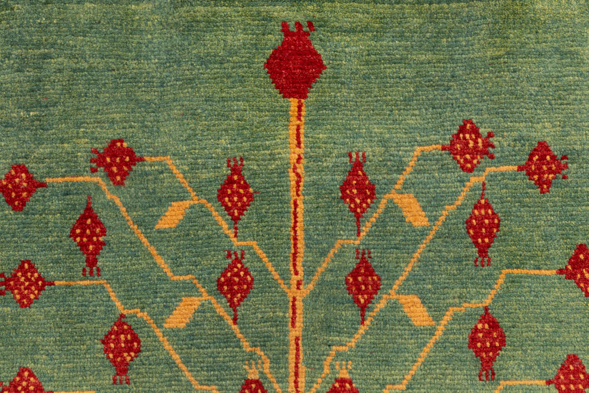 Este tapete é feito de lã de ovelha fiada à mão, da mais alta qualidade. Especialmente no Irão (antiga Pérsia), Afeganistão e Paquistão, a lã ainda é fiada à mão antes do início do nó do tapete. A lã tem provado ser um material natural e extremamente resistente ao longo dos séculos. Entre outras coisas, tem propriedades repelentes de impurezas e isolantes térmicos. Ao mesmo tempo, a lã é incomparavelmente macia e tem um brilho natural.
