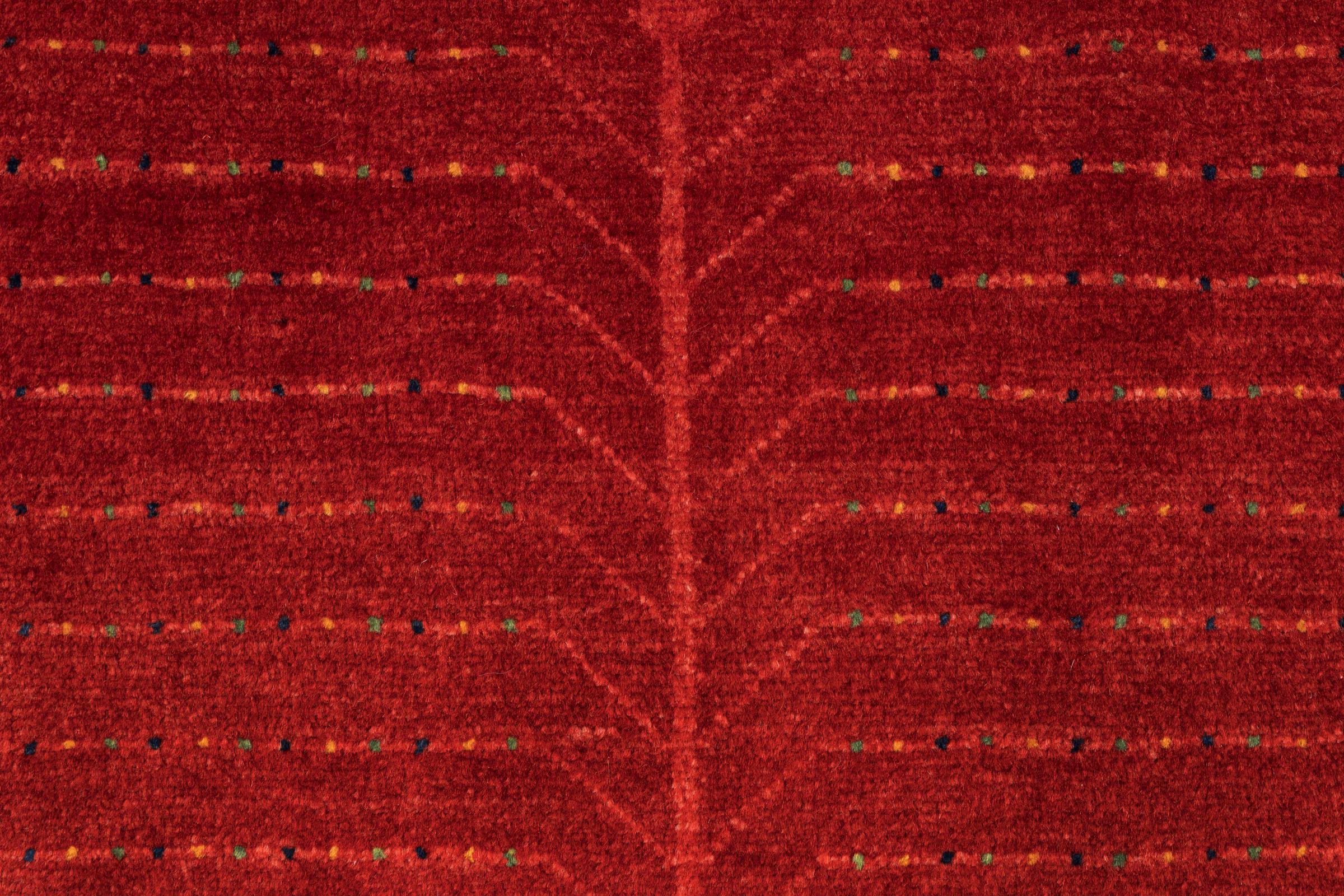 Este belo tapete é um Gabbeh persa e por isso pertence aos tapetes Gabbeh da mais alta qualidade. Os tapetes são atados por nómadas ou semi-nómadas no Irão, de acordo com o artesanato tradicional. Os simples motivos e padrões são, na sua maioria, inspirados pelo ambiente imediato dos nómadas. Por exemplo, camelos, árvores ou arbustos podem ser encontrados nos tapetes tradicionais. Os tapetes Gabbeh persa são feitos de lã proveniente de rebanhos de ovinos criados localmente. Por conseguinte, a lã ainda é, na sua maioria, fiada à mão. Assim, cada um destes tapetes orientais corporiza um carácter único de cultura secular.