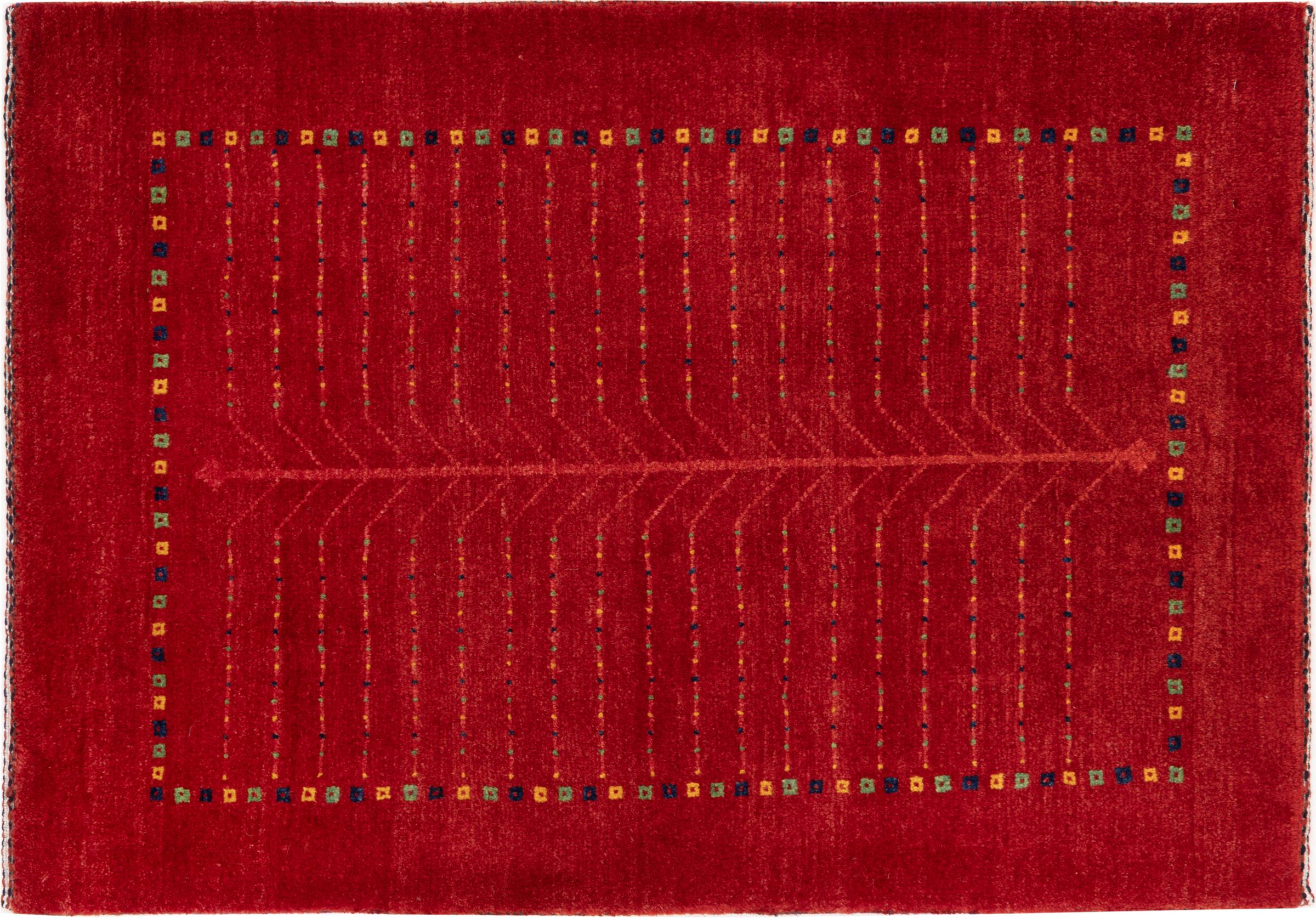 Este Gabbeh Kashkuli foi feito à mão por semi-nómadas no sudoeste do Irão. Graças à tradição persa, oferece uma excelente qualidade. Os motivos deste tipo são geralmente mantidos simples e não parecem demasiado sobrecarregados.
