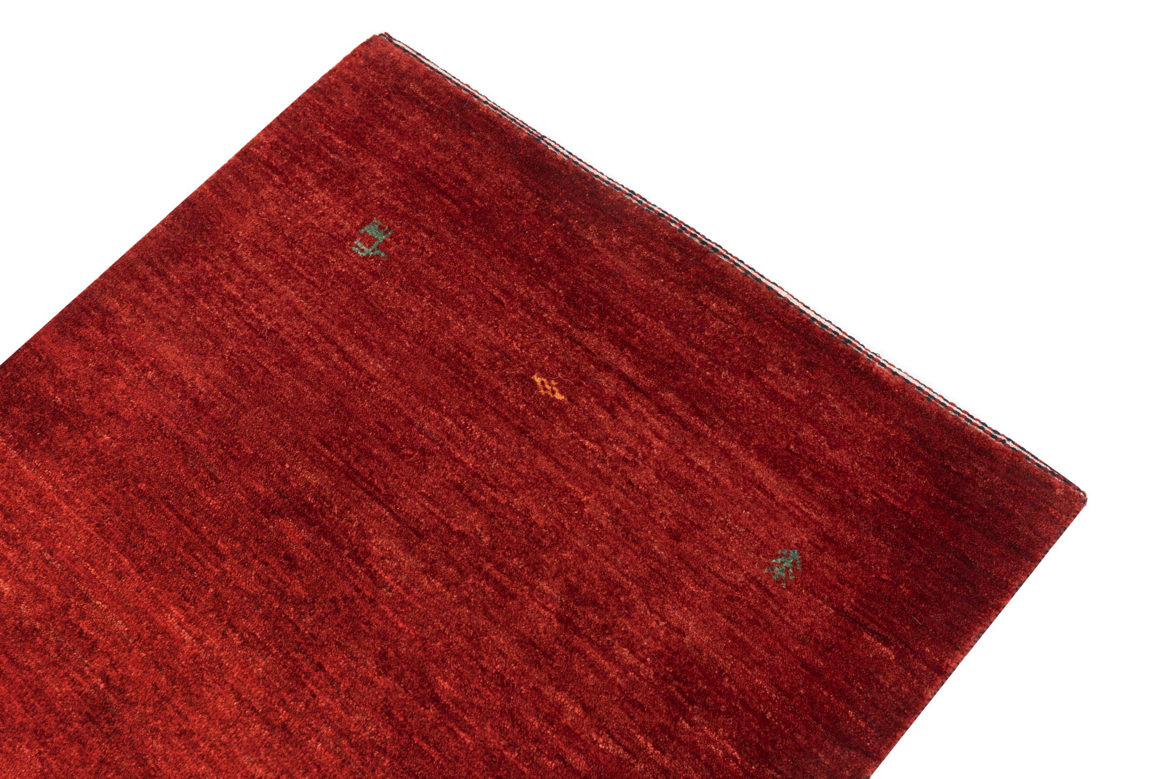Este Gabbeh Kashkuli foi feito à mão por semi-nómadas no sudoeste do Irão. Graças à tradição persa, oferece uma excelente qualidade. Os motivos deste tipo são geralmente mantidos simples e não parecem demasiado sobrecarregados.