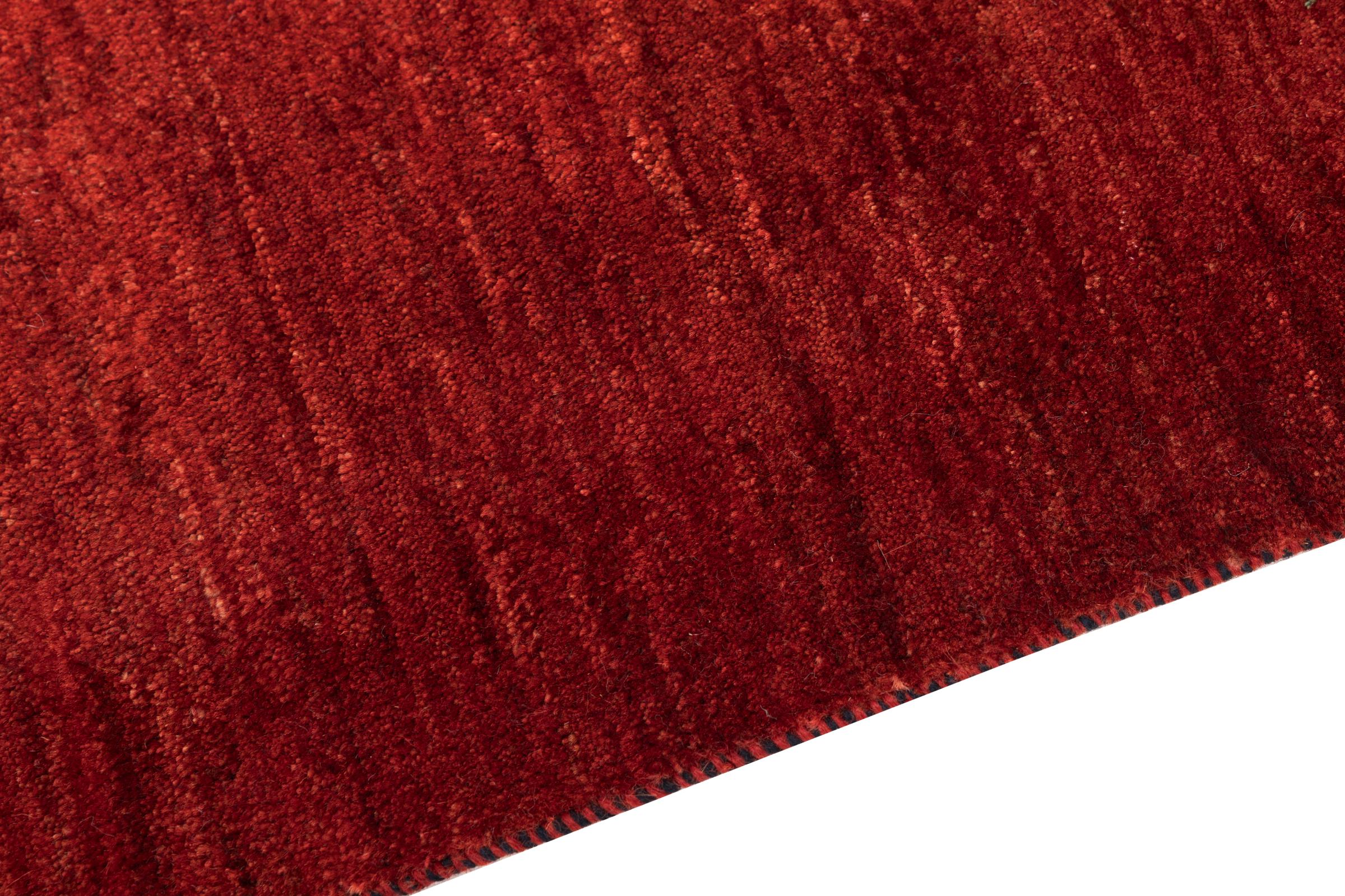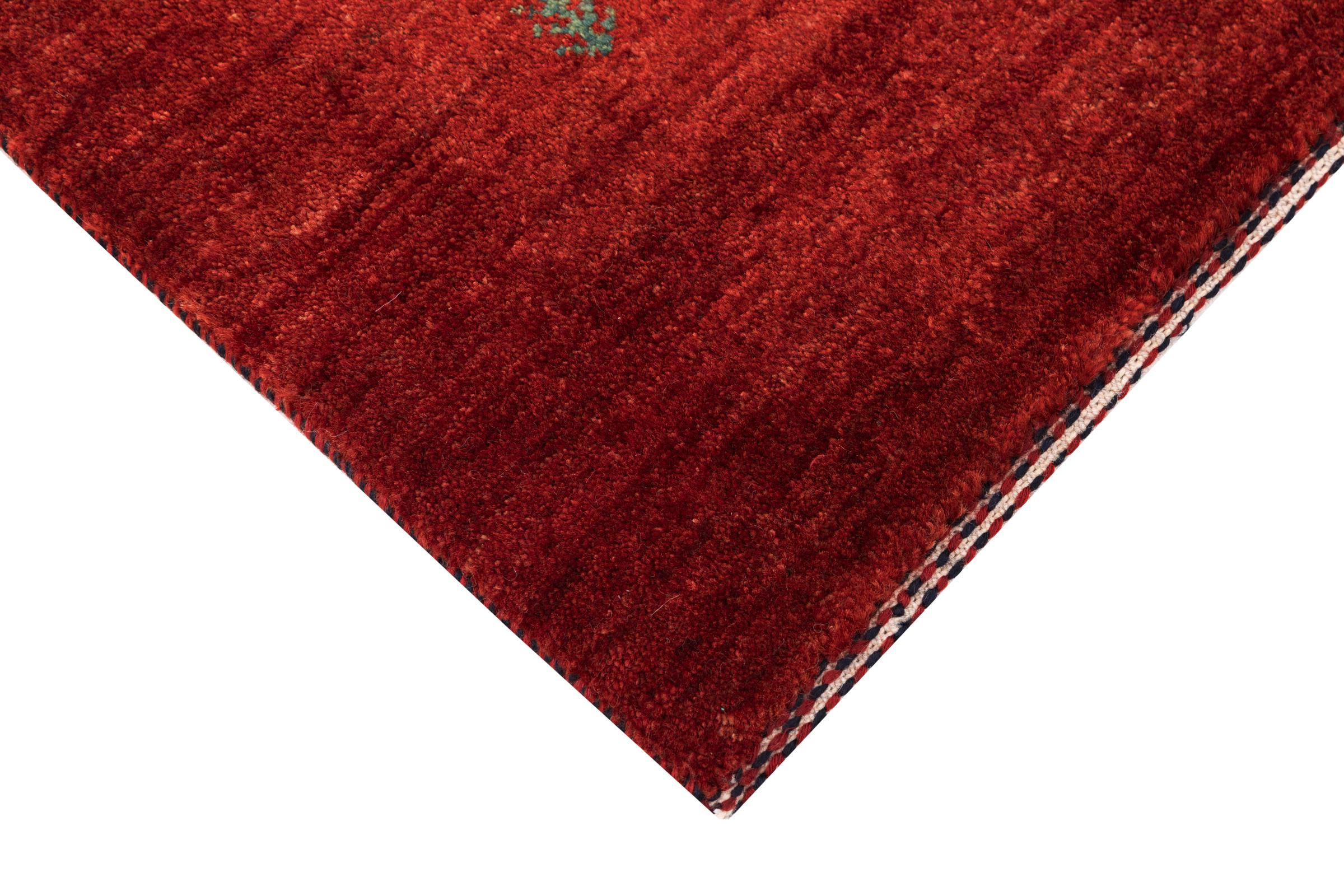 Este belo tapete é um Gabbeh persa e por isso pertence aos tapetes Gabbeh da mais alta qualidade. Os tapetes são atados por nómadas ou semi-nómadas no Irão, de acordo com o artesanato tradicional. Os simples motivos e padrões são, na sua maioria, inspirados pelo ambiente imediato dos nómadas. Por exemplo, camelos, árvores ou arbustos podem ser encontrados nos tapetes tradicionais. Os tapetes Gabbeh persa são feitos de lã proveniente de rebanhos de ovinos criados localmente. Por conseguinte, a lã ainda é, na sua maioria, fiada à mão. Assim, cada um destes tapetes orientais corporiza um carácter único de cultura secular.
