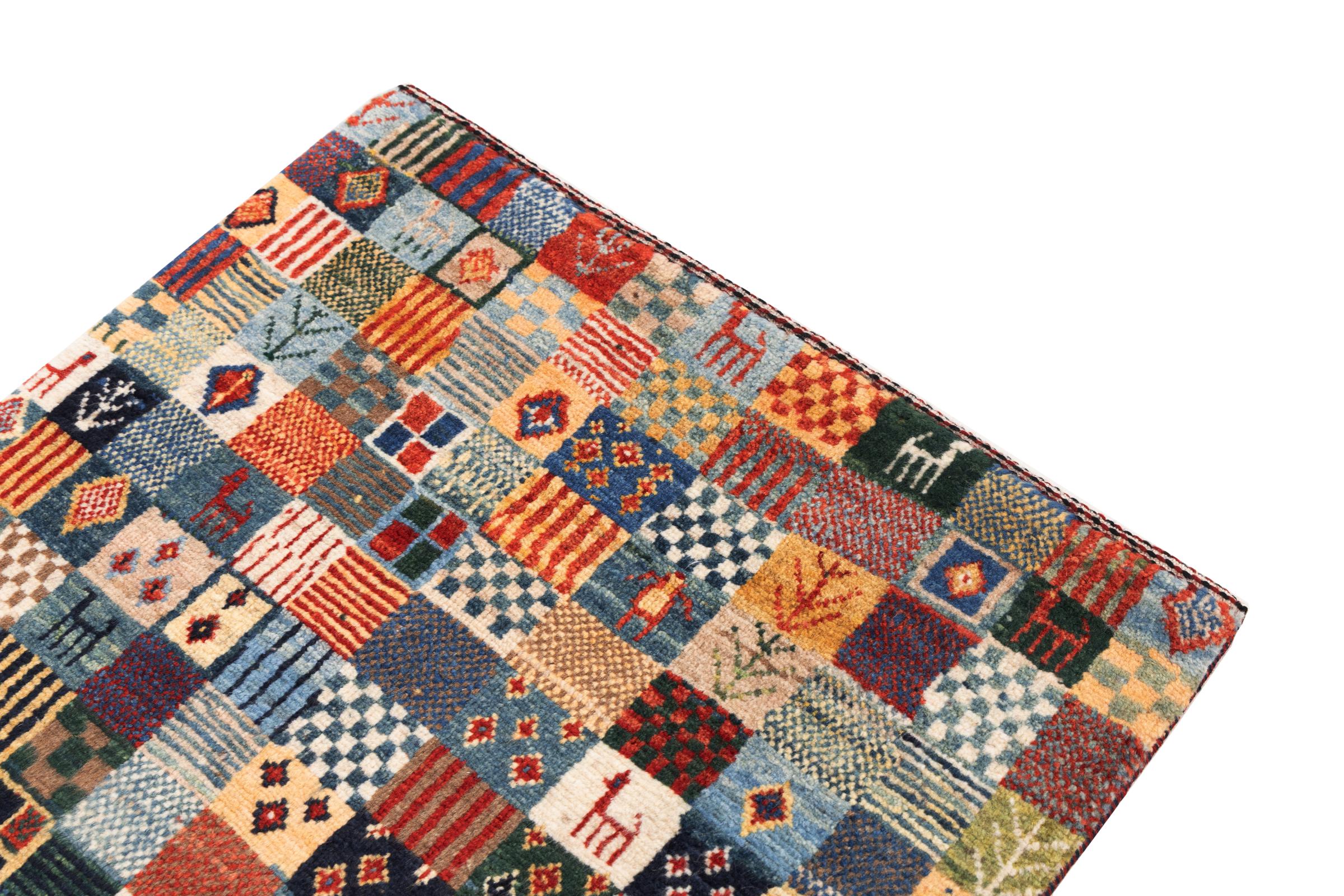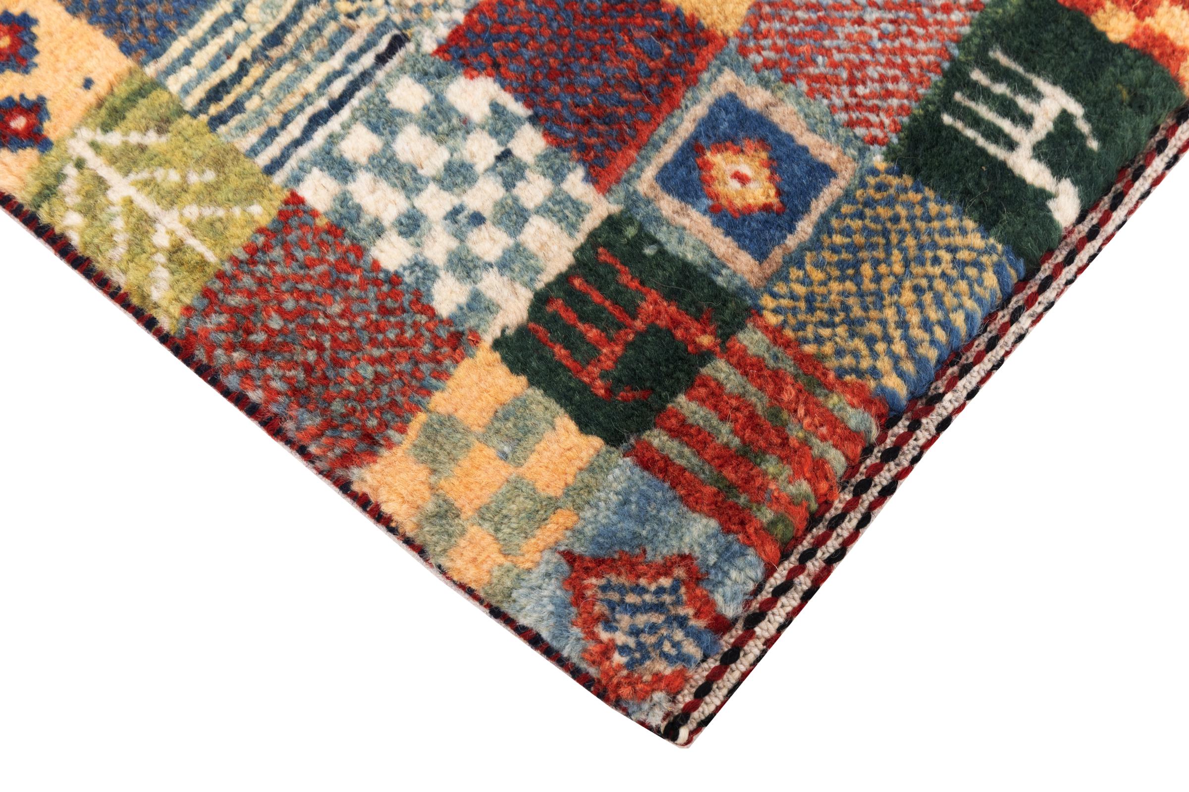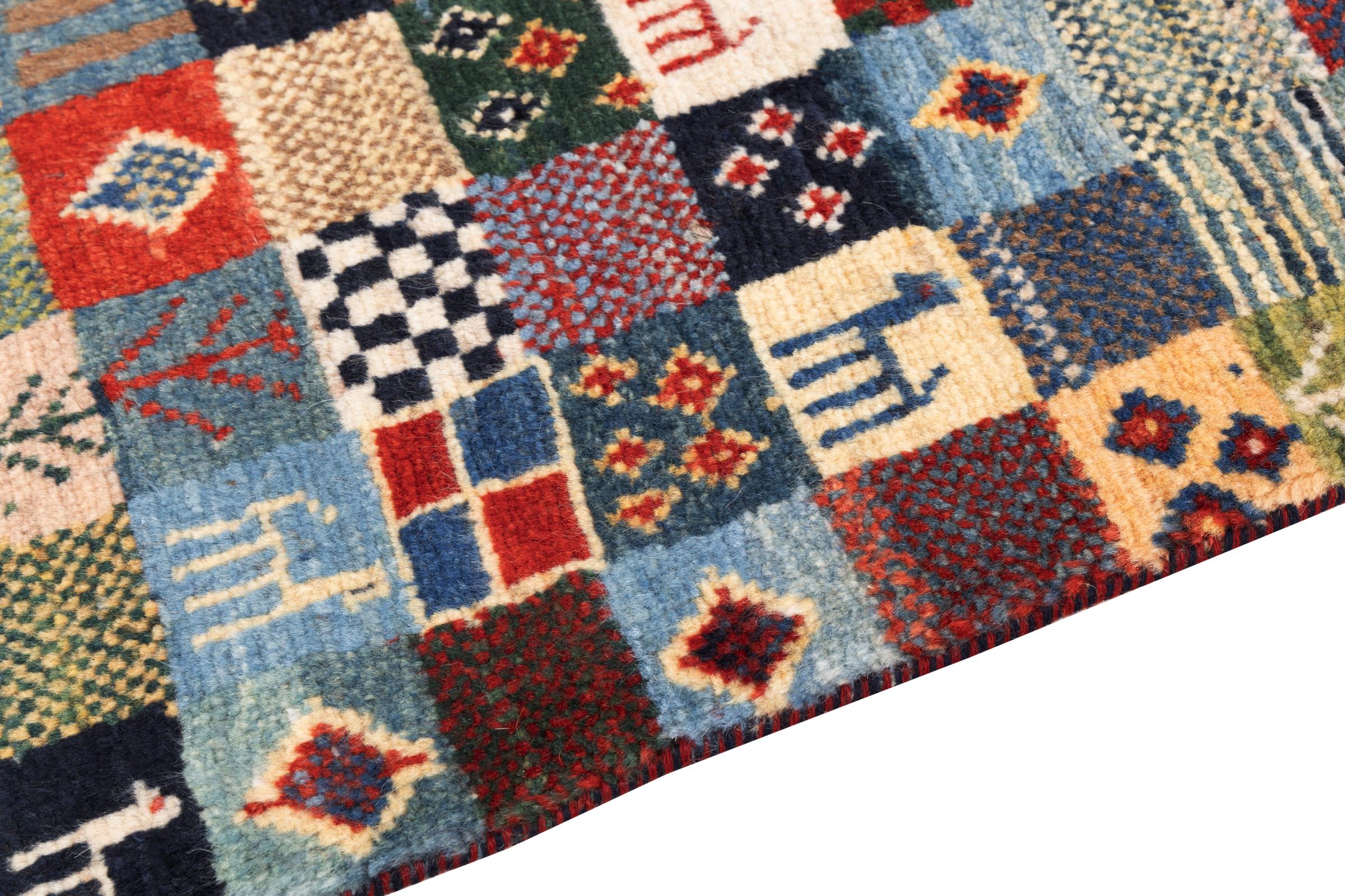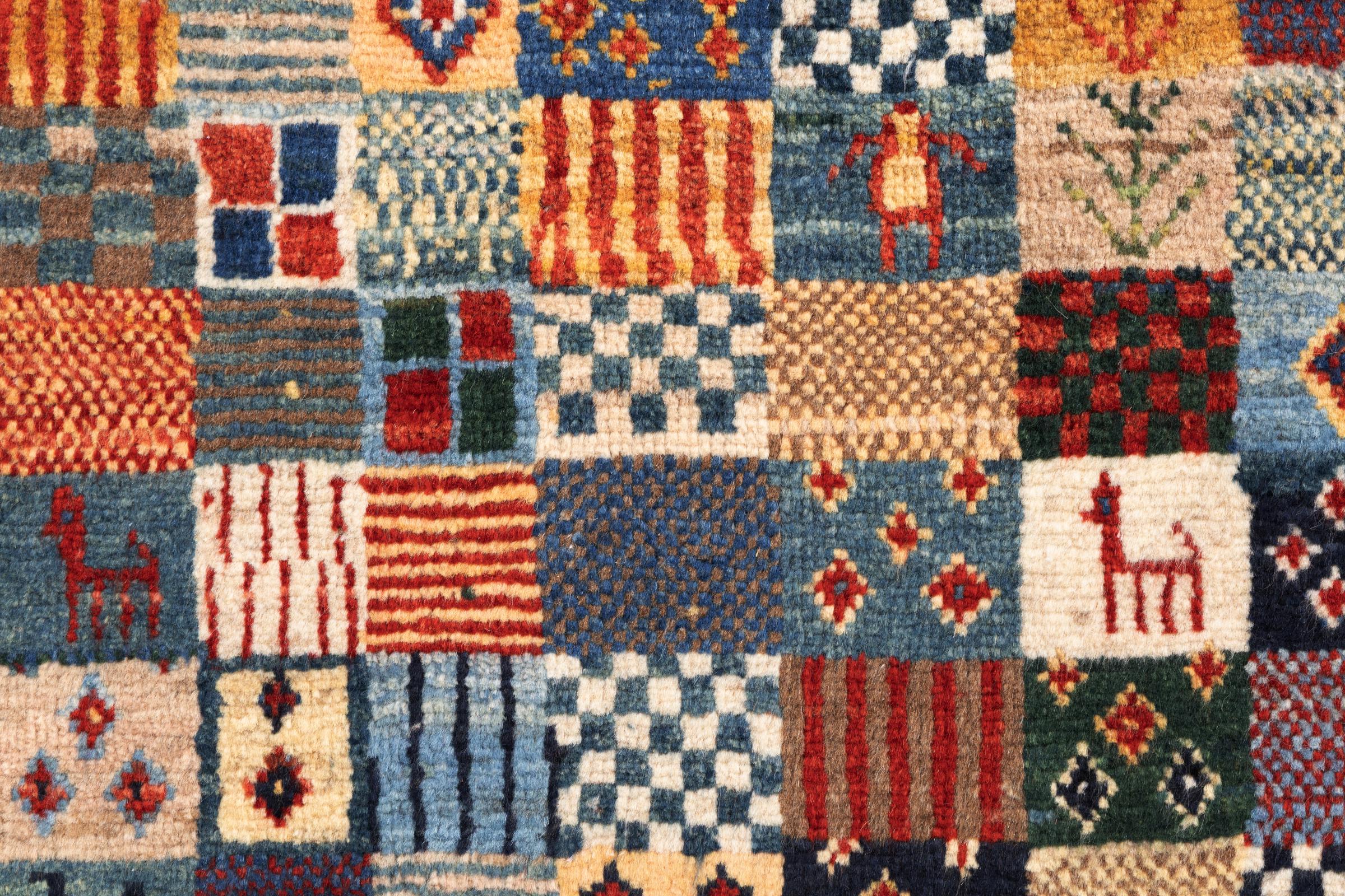 Este Gabbeh Kashkuli foi feito à mão por semi-nómadas no sudoeste do Irão. Graças à tradição persa, oferece uma excelente qualidade. Os motivos deste tipo são geralmente mantidos simples e não parecem demasiado sobrecarregados.