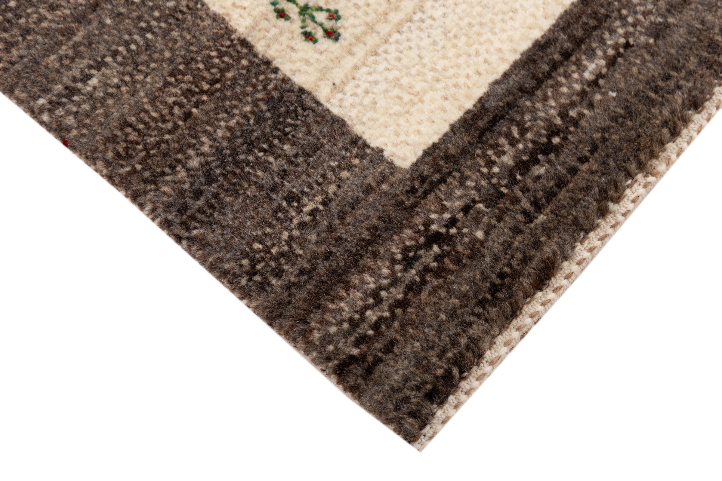 Este Gabbeh Kashkuli foi feito à mão por semi-nómadas no sudoeste do Irão. Graças à tradição persa, oferece uma excelente qualidade. Os motivos deste tipo são geralmente mantidos simples e não parecem demasiado sobrecarregados.