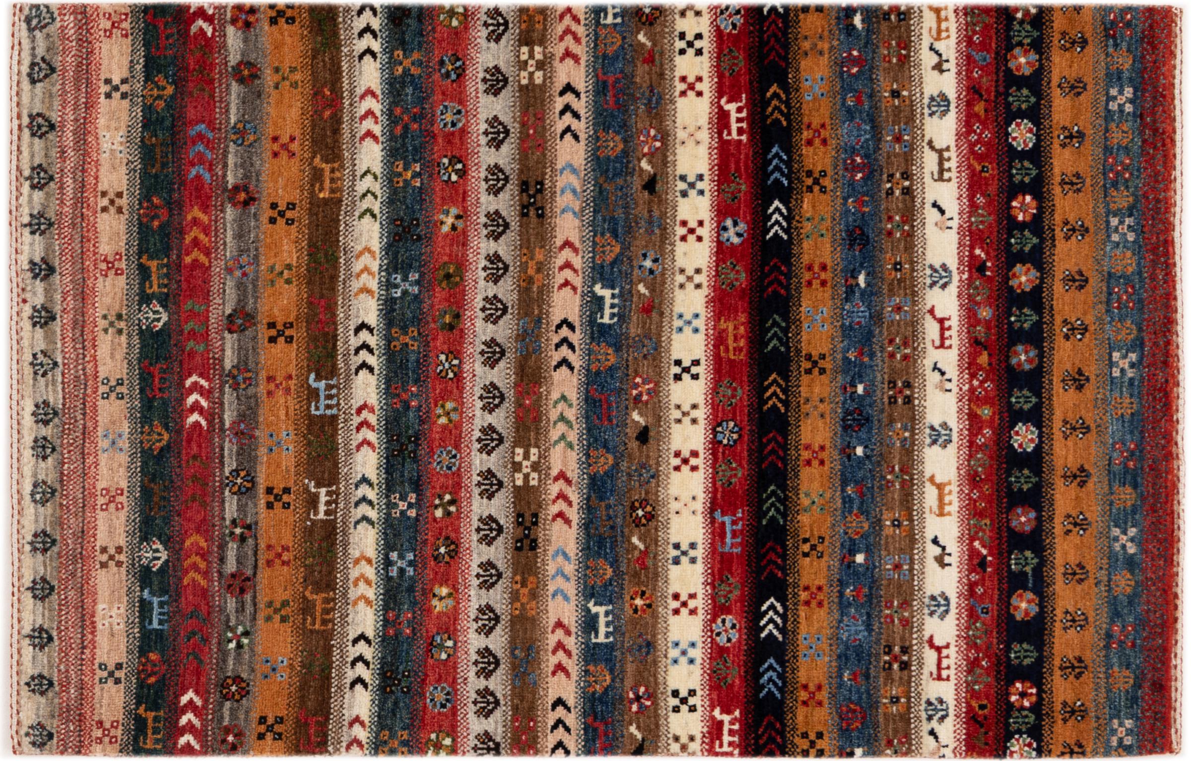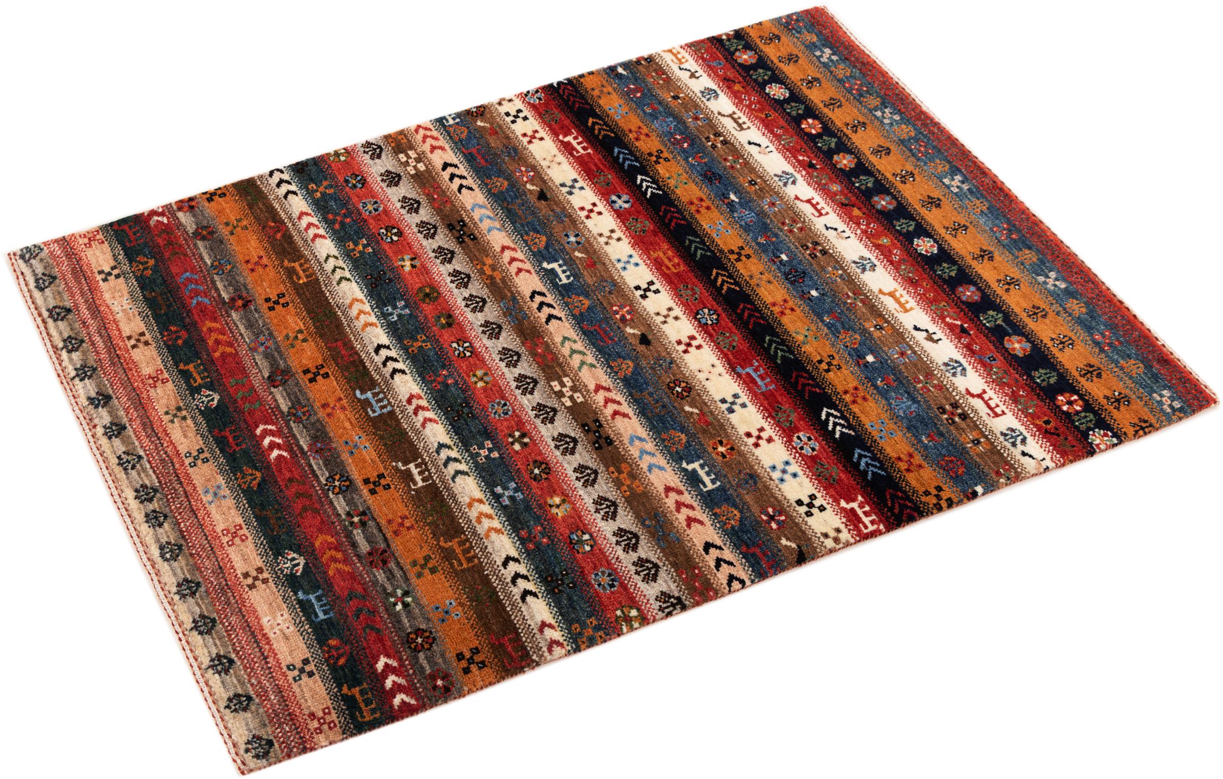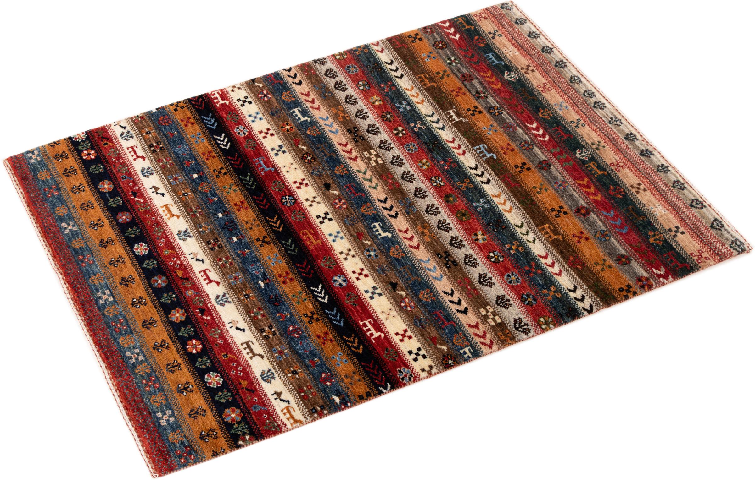 Nº do Tapete: 301412006504617 Tamanho: 123x81 cm Espessura: aproximadamente 15 mm Nós: 72 000 - 90 000 / m² Processamento: Atado à mão Veludo: Lã tecida à mão Urdidura: Lã Natural Origem: Pérsia / Iran Idade: Novo Peso: aproximadamente 4 kg Também conhecido como Gabbe, Kashkuli Em armazém: Único - Apenas 1 em stock