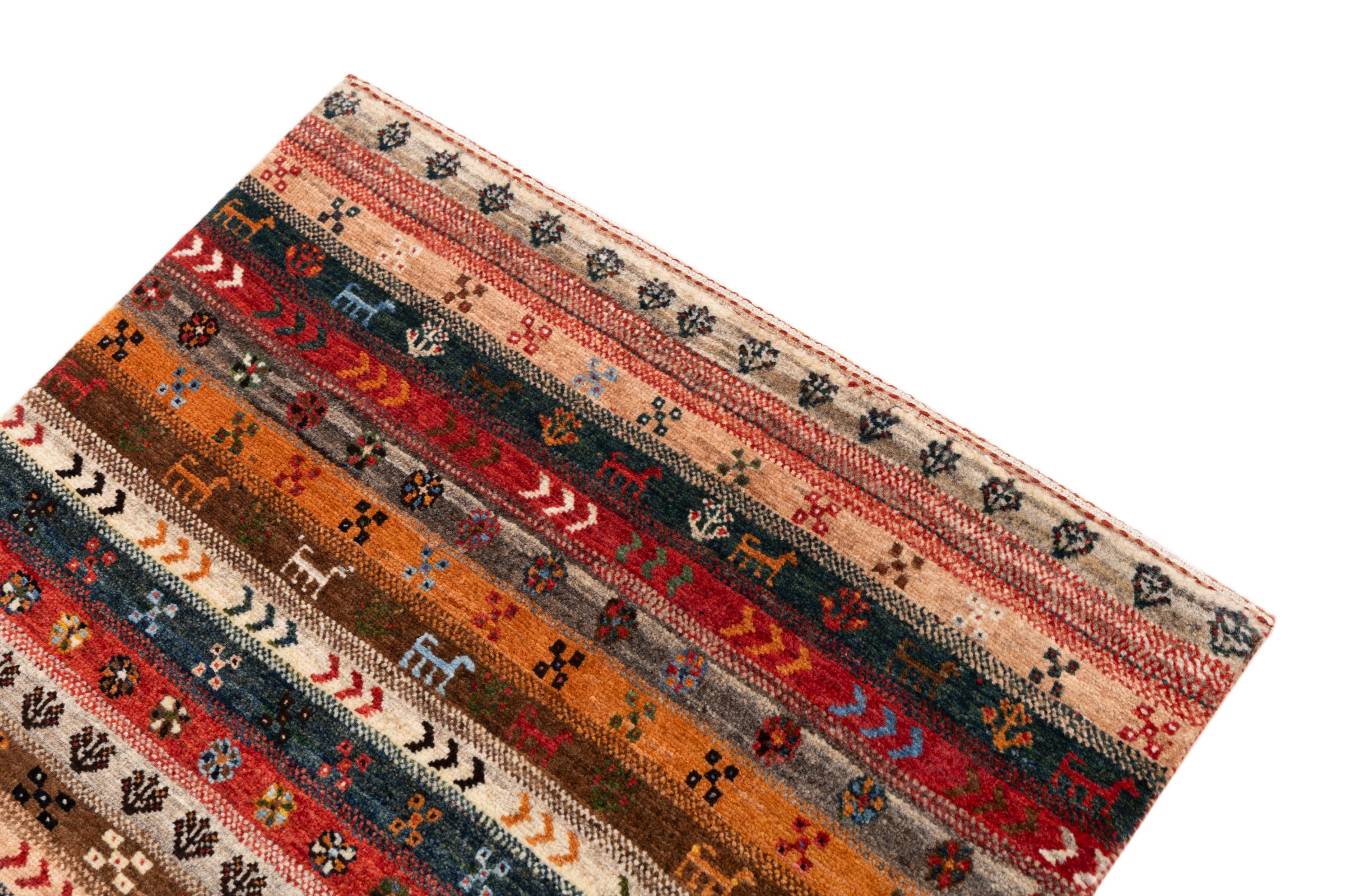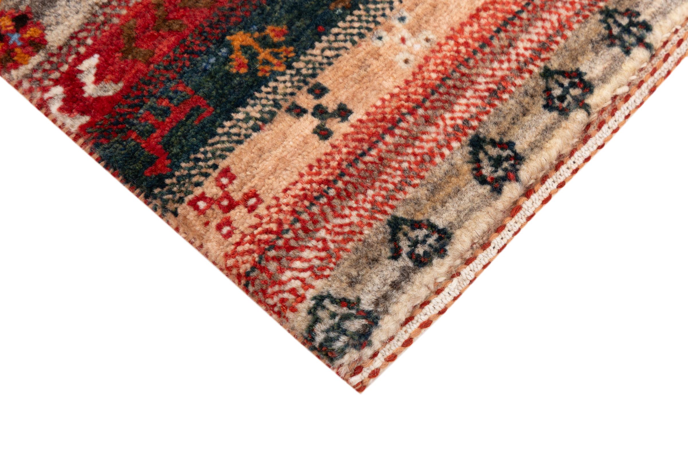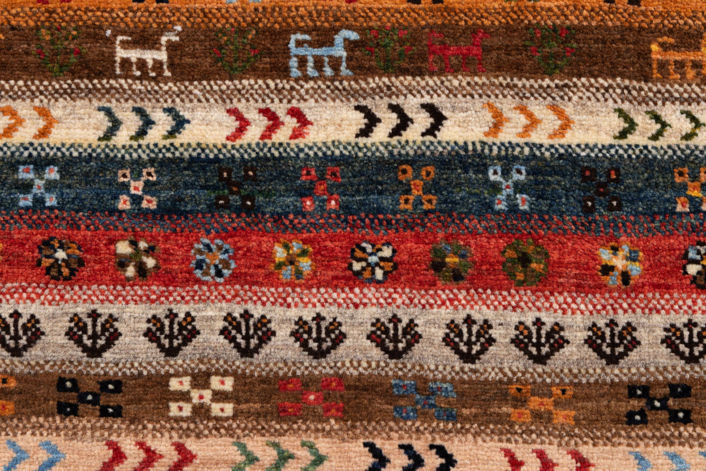 Este Gabbeh Kashkuli foi feito à mão por semi-nómadas no sudoeste do Irão. Graças à tradição persa, oferece uma excelente qualidade. Os motivos deste tipo são geralmente mantidos simples e não parecem demasiado sobrecarregados.