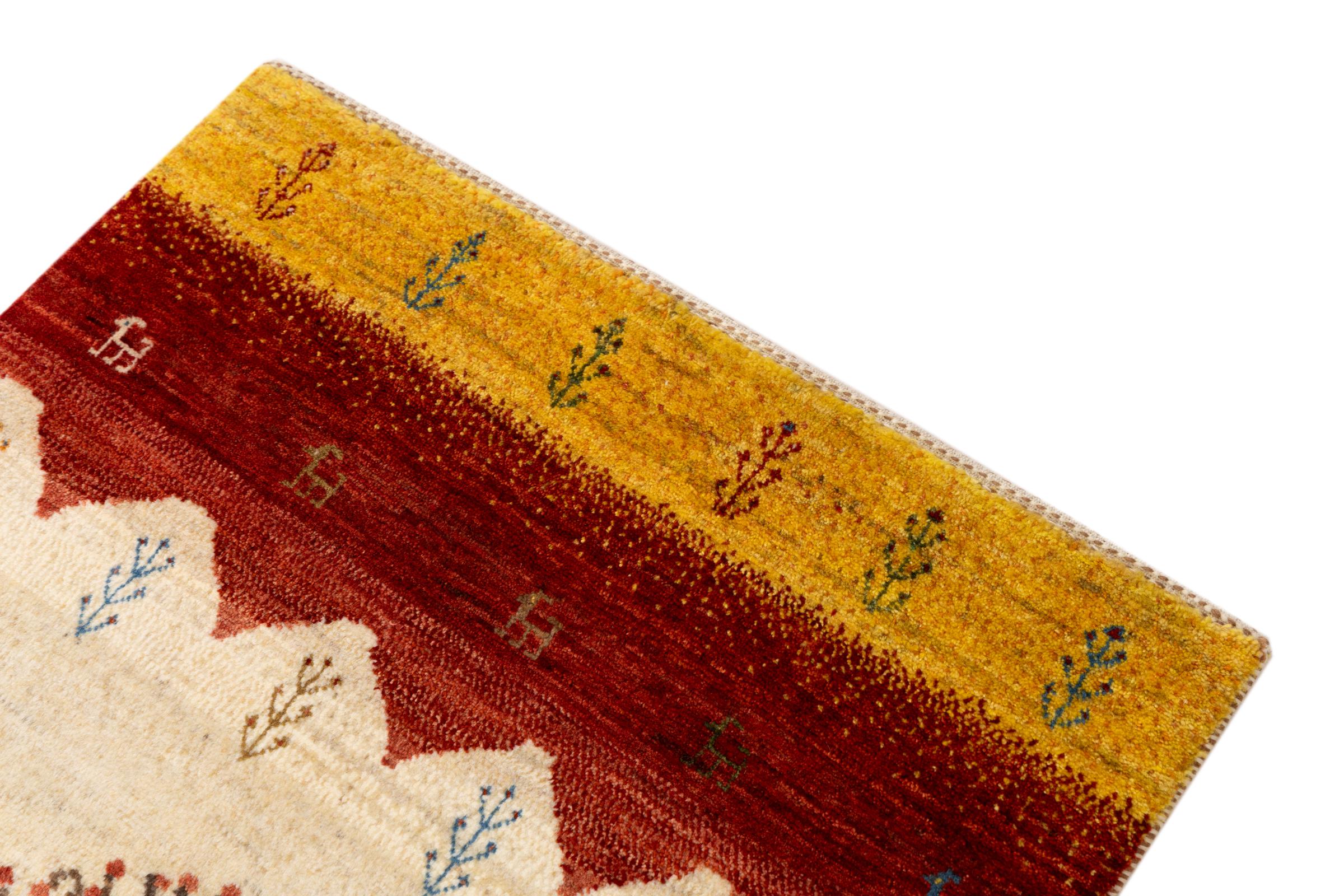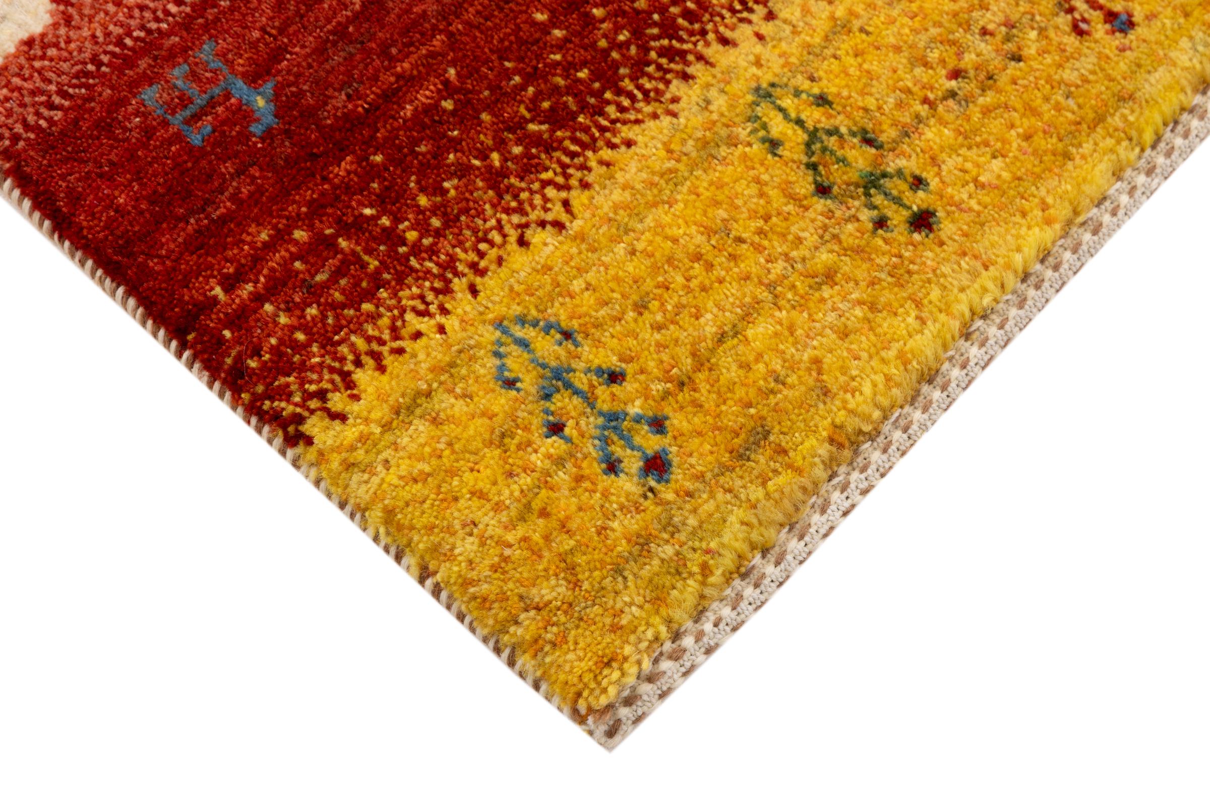 Este Gabbeh Kashkuli foi feito à mão por semi-nómadas no sudoeste do Irão. Graças à tradição persa, oferece uma excelente qualidade. Os motivos deste tipo são geralmente mantidos simples e não parecem demasiado sobrecarregados.