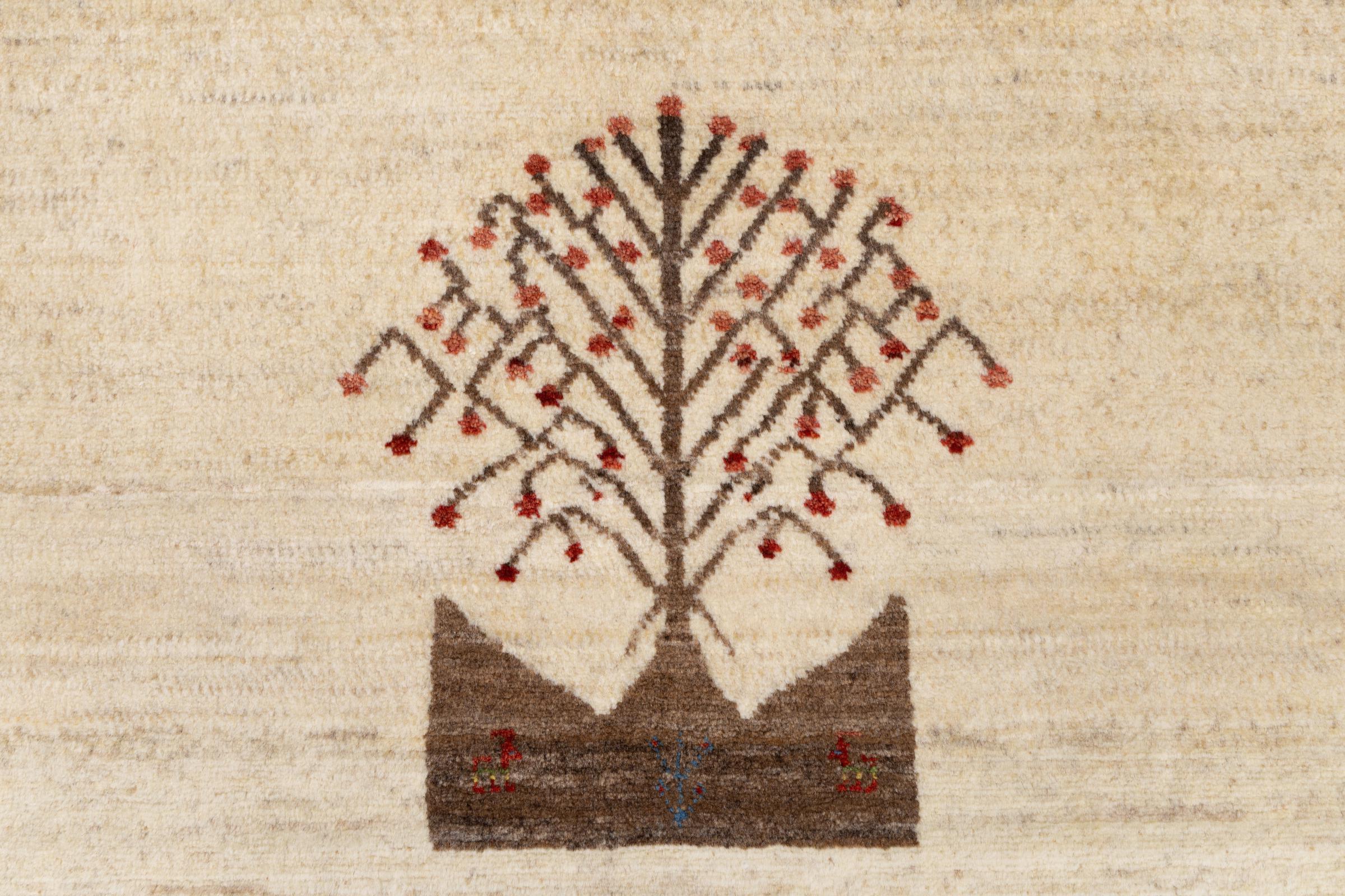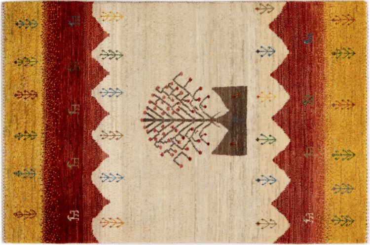 Este belo tapete é um Gabbeh persa e por isso pertence aos tapetes Gabbeh da mais alta qualidade. Os tapetes são atados por nómadas ou semi-nómadas no Irão, de acordo com o artesanato tradicional. Os simples motivos e padrões são, na sua maioria, inspirados pelo ambiente imediato dos nómadas. Por exemplo, camelos, árvores ou arbustos podem ser encontrados nos tapetes tradicionais. Os tapetes Gabbeh persa são feitos de lã proveniente de rebanhos de ovinos criados localmente. Por conseguinte, a lã ainda é, na sua maioria, fiada à mão. Assim, cada um destes tapetes orientais corporiza um carácter único de cultura secular.