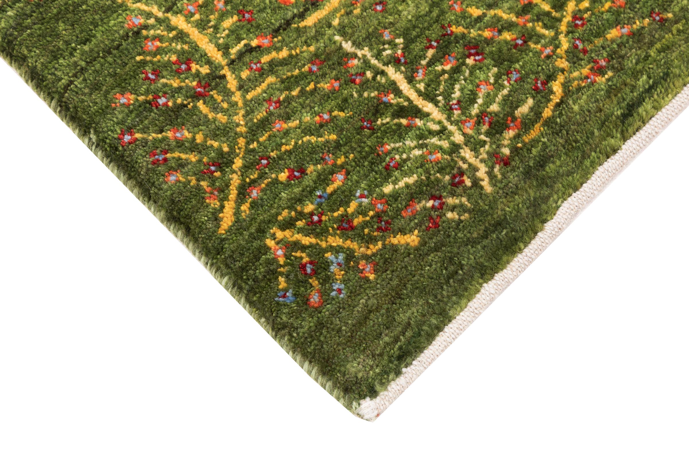Este belo tapete é um Gabbeh persa e por isso pertence aos tapetes Gabbeh da mais alta qualidade. Os tapetes são atados por nómadas ou semi-nómadas no Irão, de acordo com o artesanato tradicional. Os simples motivos e padrões são, na sua maioria, inspirados pelo ambiente imediato dos nómadas. Por exemplo, camelos, árvores ou arbustos podem ser encontrados nos tapetes tradicionais. Os tapetes Gabbeh persa são feitos de lã proveniente de rebanhos de ovinos criados localmente. Por conseguinte, a lã ainda é, na sua maioria, fiada à mão. Assim, cada um destes tapetes orientais corporiza um carácter único de cultura secular.