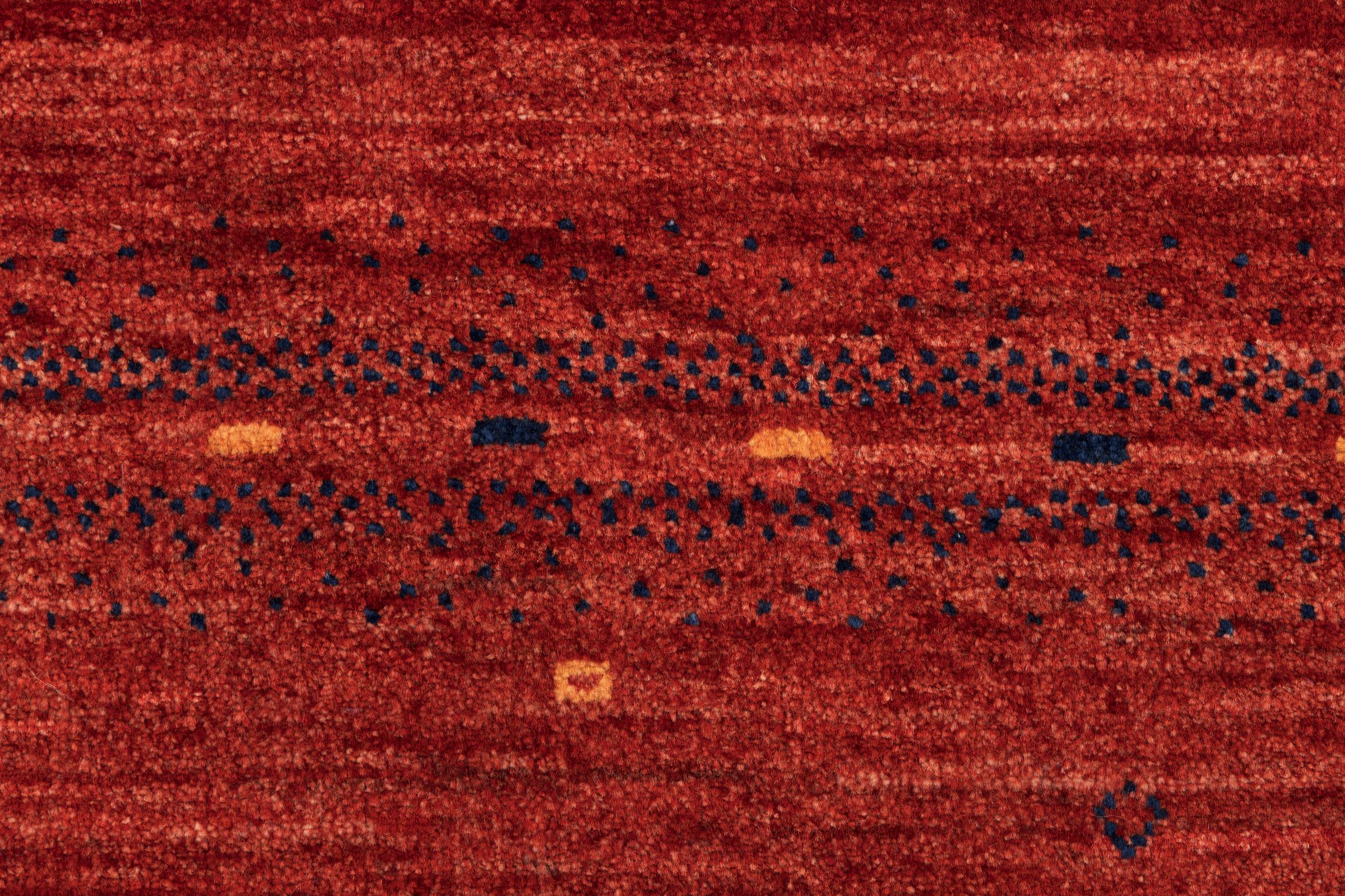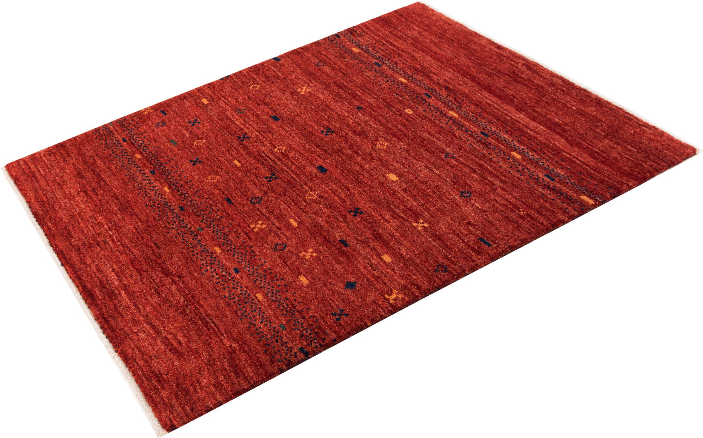 Este belo tapete é um Gabbeh persa e por isso pertence aos tapetes Gabbeh da mais alta qualidade. Os tapetes são atados por nómadas ou semi-nómadas no Irão, de acordo com o artesanato tradicional. Os simples motivos e padrões são, na sua maioria, inspirados pelo ambiente imediato dos nómadas. Por exemplo, camelos, árvores ou arbustos podem ser encontrados nos tapetes tradicionais. Os tapetes Gabbeh persa são feitos de lã proveniente de rebanhos de ovinos criados localmente. Por conseguinte, a lã ainda é, na sua maioria, fiada à mão. Assim, cada um destes tapetes orientais corporiza um carácter único de cultura secular.