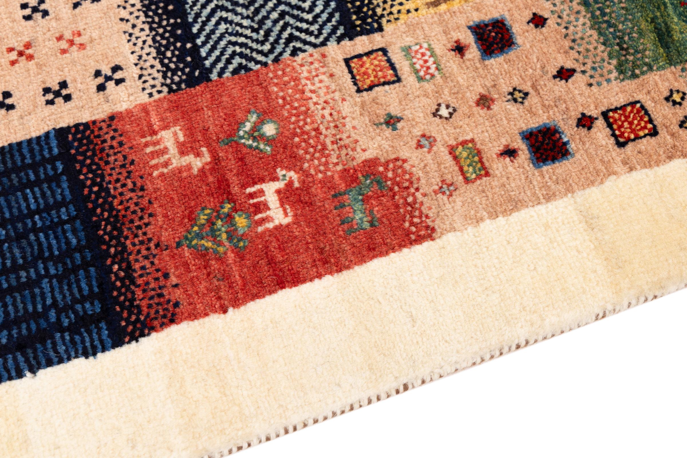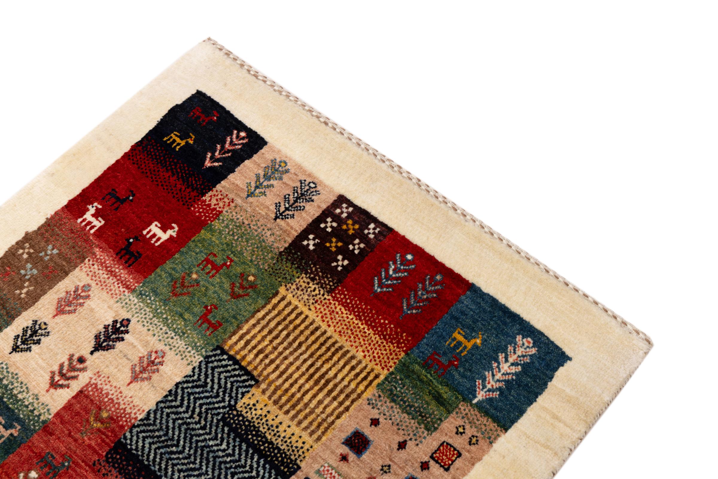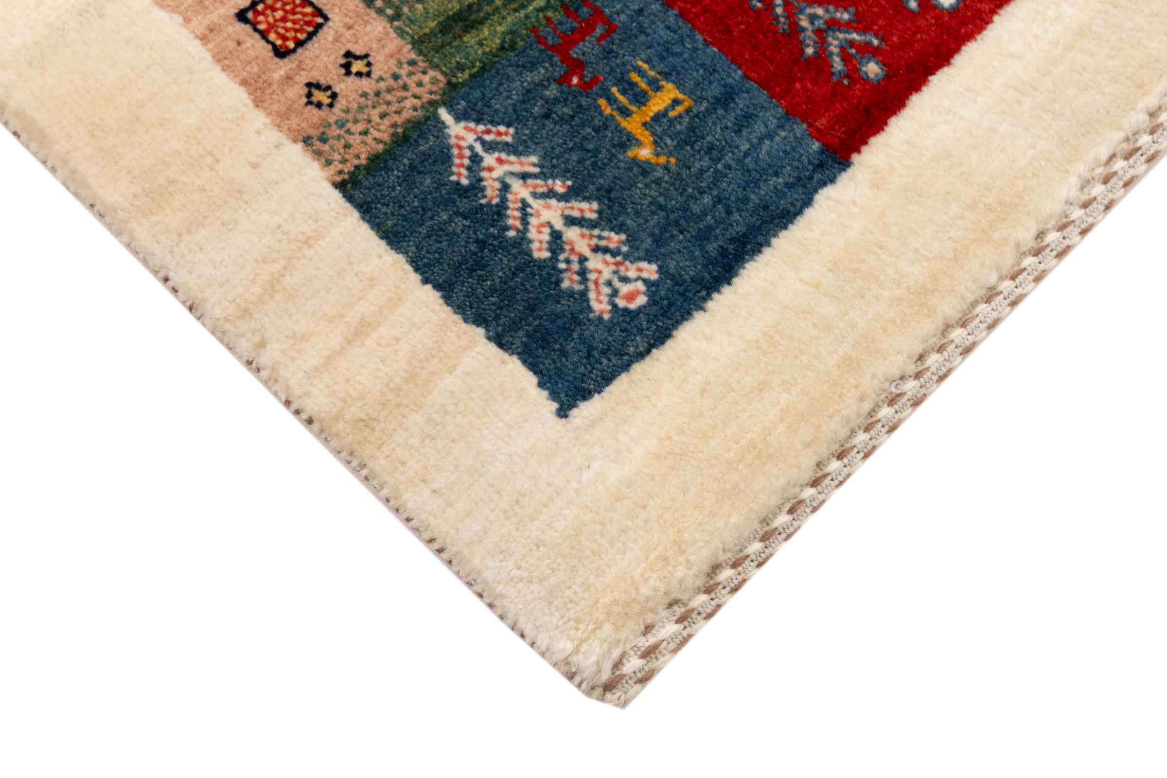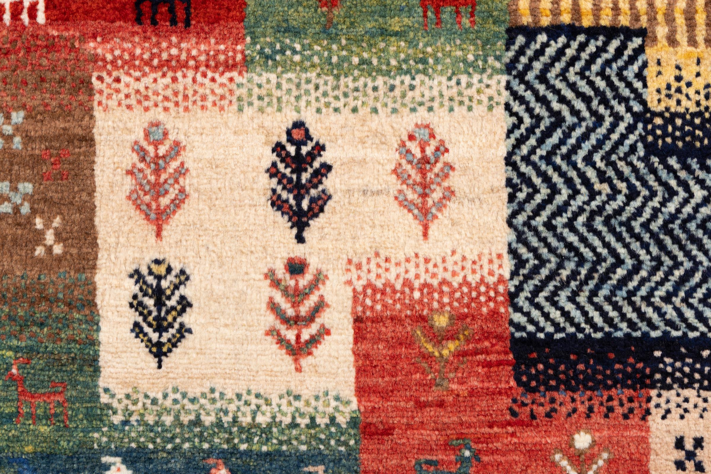 Este Gabbeh Kashkuli foi feito à mão por semi-nómadas no sudoeste do Irão. Graças à tradição persa, oferece uma excelente qualidade. Os motivos deste tipo são geralmente mantidos simples e não parecem demasiado sobrecarregados.