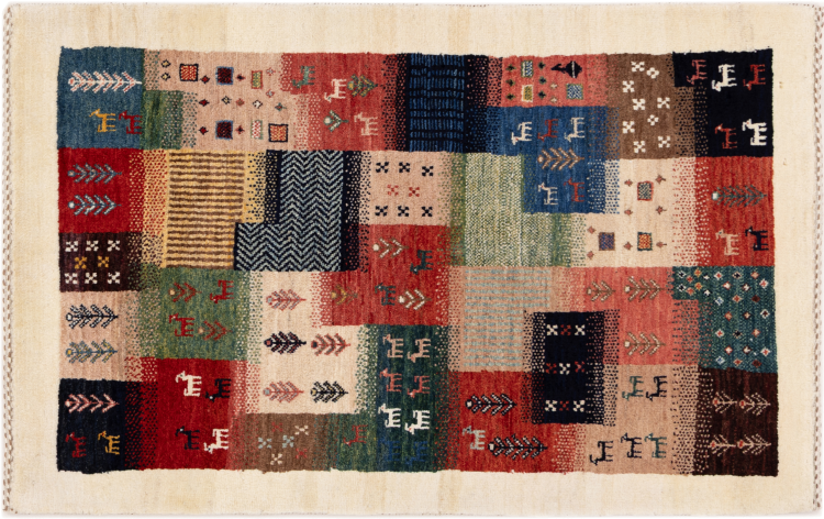 Nº do Tapete: 301415001104024 Tamanho: 126x81 cm Espessura: aproximadamente 15 mm Nós: 72 000 - 90 000 / m² Processamento: Atado à mão Veludo: Lã tecida à mão Urdidura: Lã Natural Origem: Pérsia / Iran Idade: Novo Peso: aproximadamente 4 kg Também conhecido como Gabbe, Kashkuli Em armazém: Único - Apenas 1 em stock