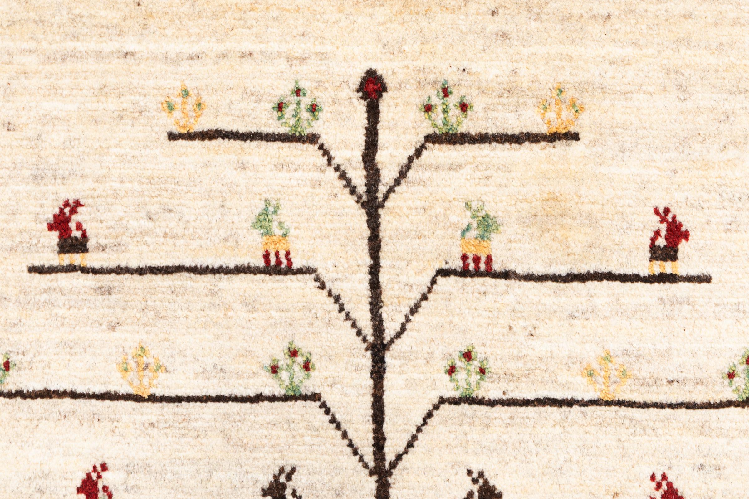 Este Gabbeh Kashkuli foi feito à mão por semi-nómadas no sudoeste do Irão. Graças à tradição persa, oferece uma excelente qualidade. Os motivos deste tipo são geralmente mantidos simples e não parecem demasiado sobrecarregados.