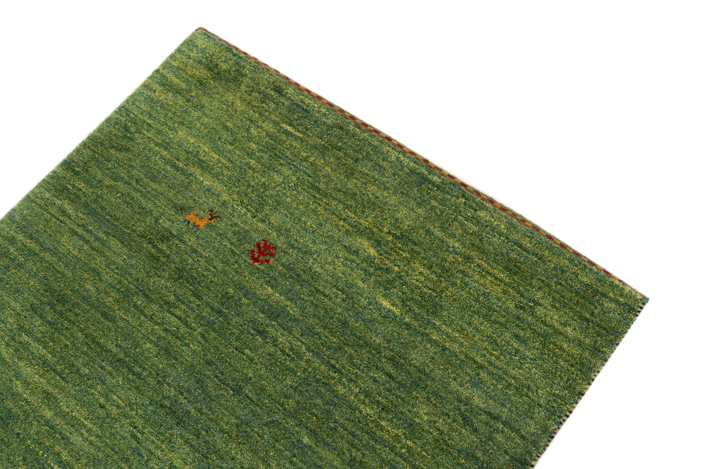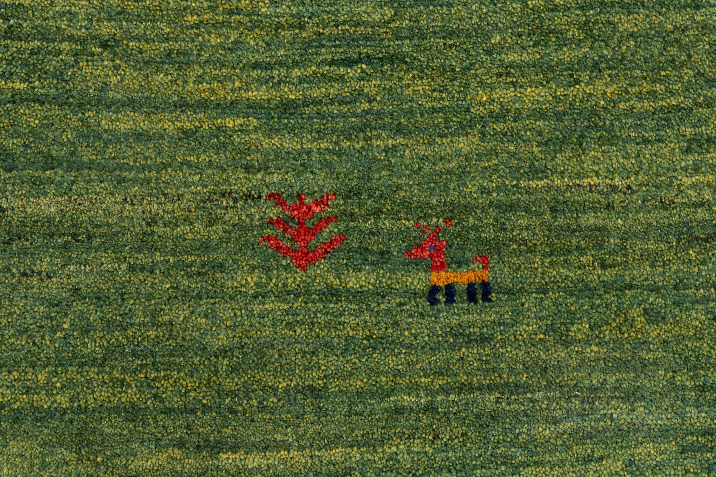 Este Gabbeh Kashkuli foi feito à mão por semi-nómadas no sudoeste do Irão. Graças à tradição persa, oferece uma excelente qualidade. Os motivos deste tipo são geralmente mantidos simples e não parecem demasiado sobrecarregados.