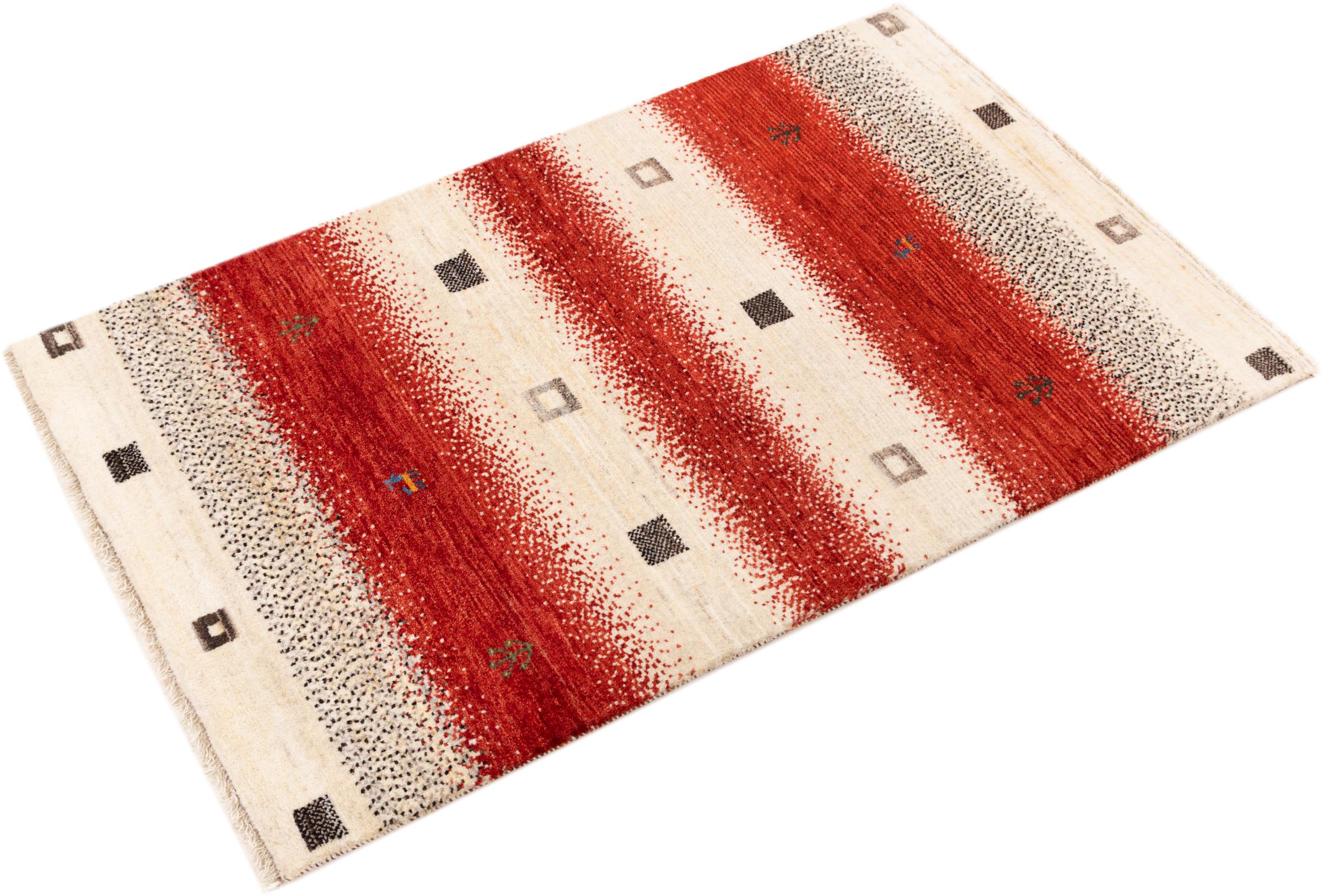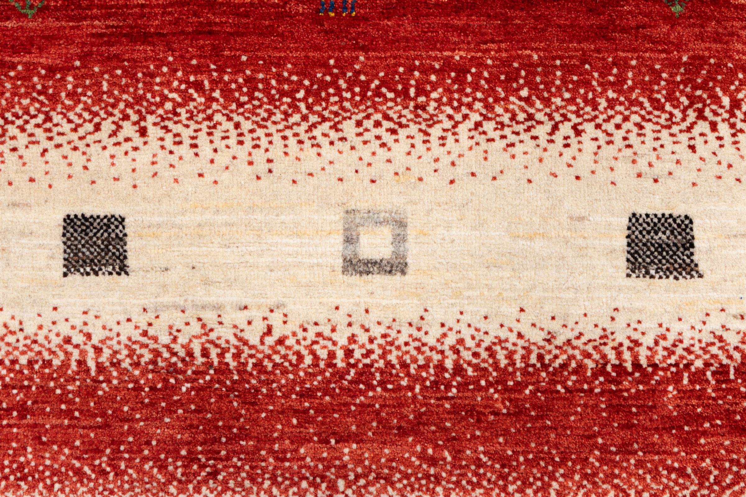 Este Gabbeh Kashkuli foi feito à mão por semi-nómadas no sudoeste do Irão. Graças à tradição persa, oferece uma excelente qualidade. Os motivos deste tipo são geralmente mantidos simples e não parecem demasiado sobrecarregados.