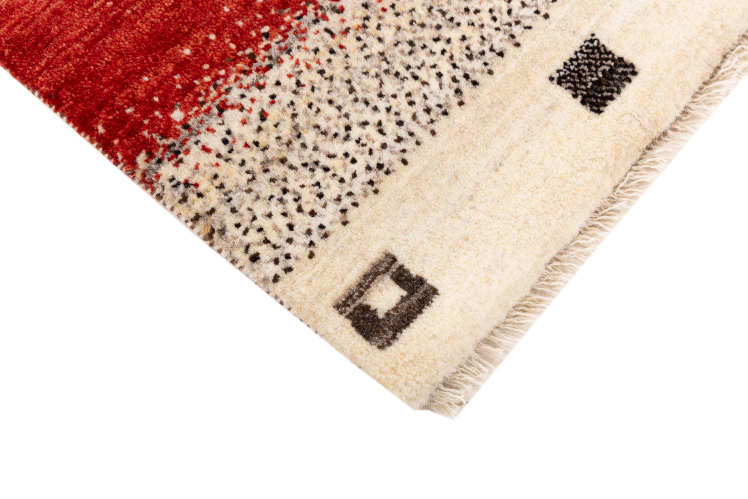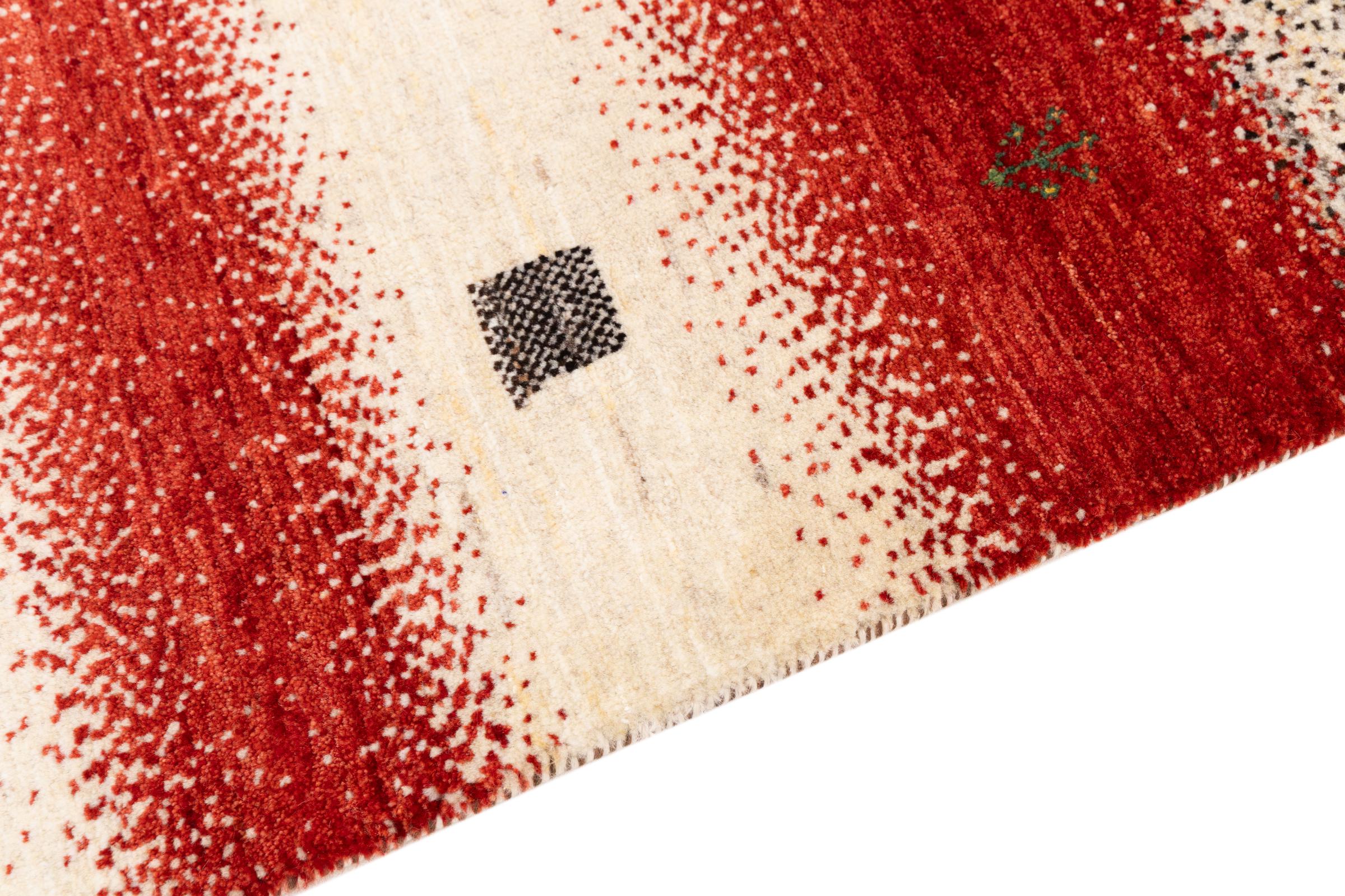 Este belo tapete é um Gabbeh persa e por isso pertence aos tapetes Gabbeh da mais alta qualidade. Os tapetes são atados por nómadas ou semi-nómadas no Irão, de acordo com o artesanato tradicional. Os simples motivos e padrões são, na sua maioria, inspirados pelo ambiente imediato dos nómadas. Por exemplo, camelos, árvores ou arbustos podem ser encontrados nos tapetes tradicionais. Os tapetes Gabbeh persa são feitos de lã proveniente de rebanhos de ovinos criados localmente. Por conseguinte, a lã ainda é, na sua maioria, fiada à mão. Assim, cada um destes tapetes orientais corporiza um carácter único de cultura secular.