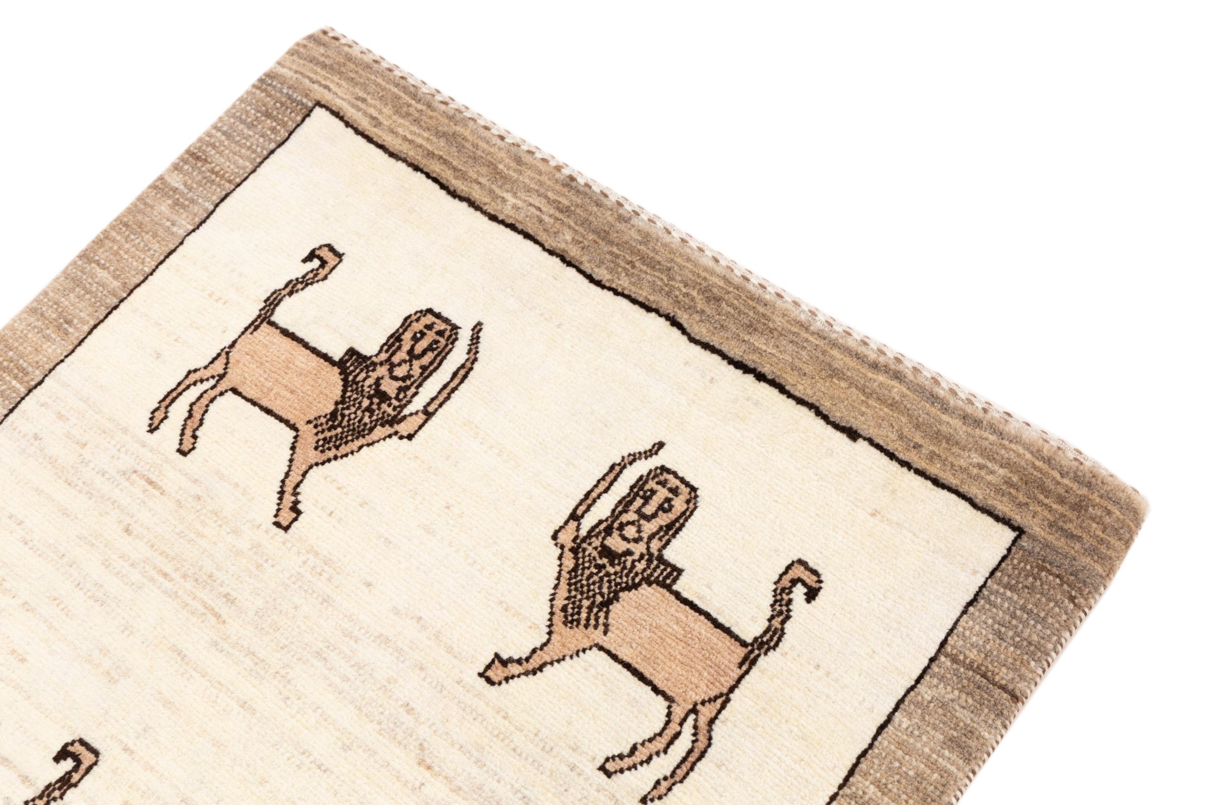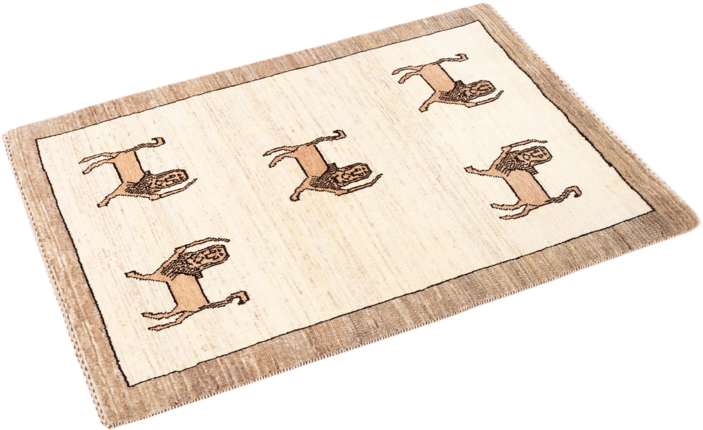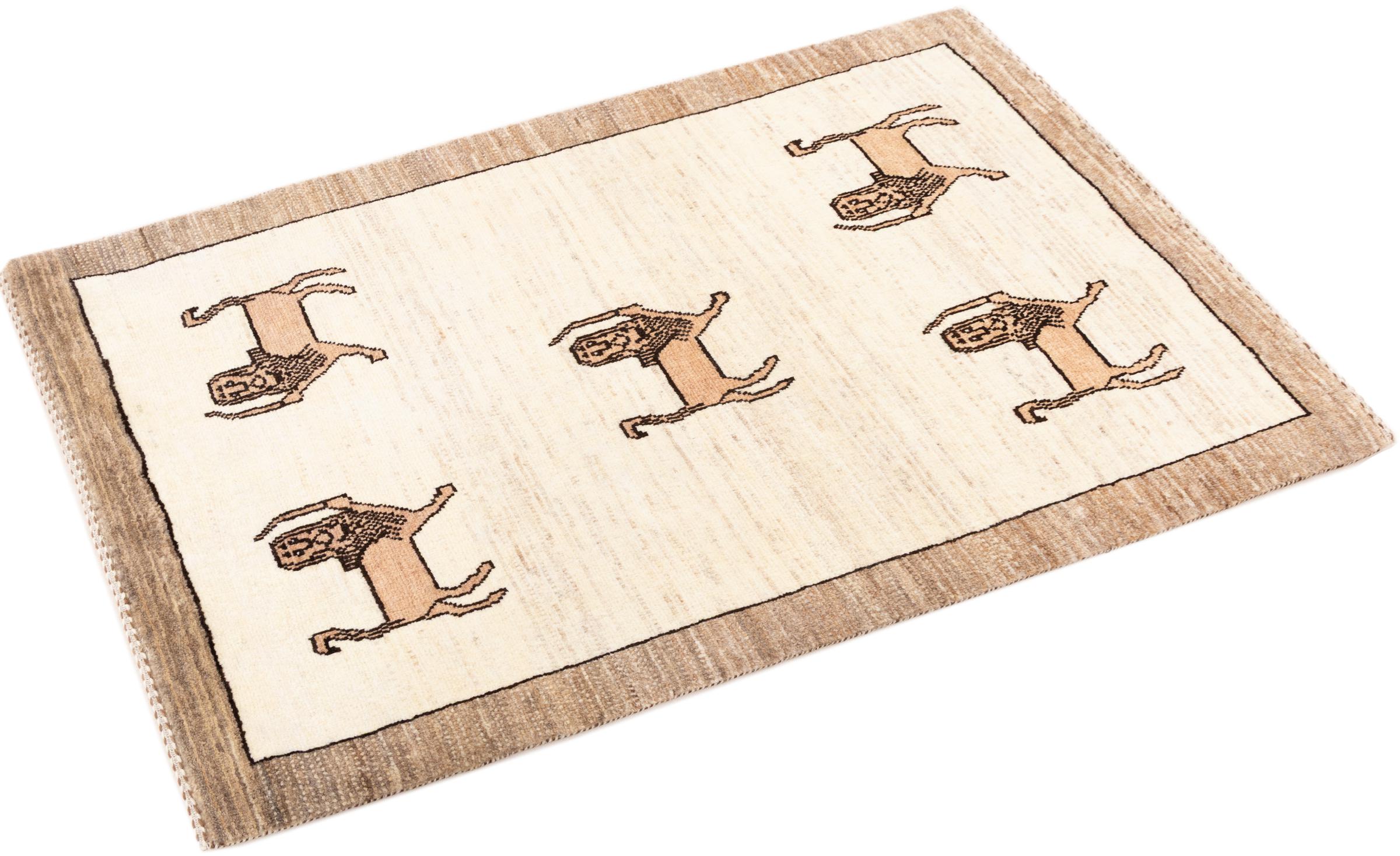Este Gabbeh Kashkuli foi feito à mão por semi-nómadas no sudoeste do Irão. Graças à tradição persa, oferece uma excelente qualidade. Os motivos deste tipo são geralmente mantidos simples e não parecem demasiado sobrecarregados.