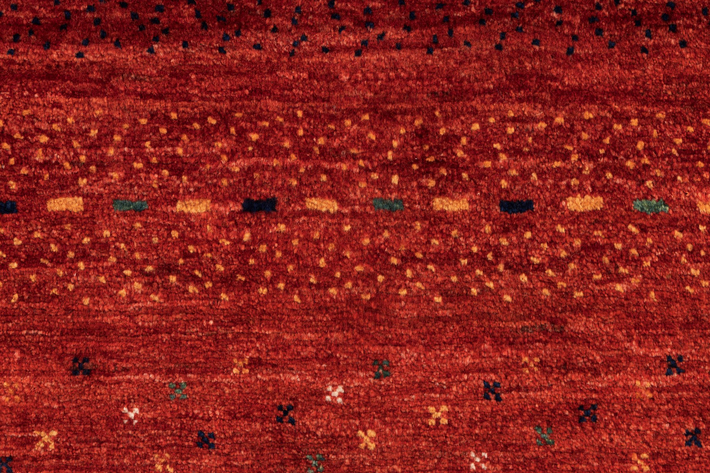 Este belo tapete é um Gabbeh persa e por isso pertence aos tapetes Gabbeh da mais alta qualidade. Os tapetes são atados por nómadas ou semi-nómadas no Irão, de acordo com o artesanato tradicional. Os simples motivos e padrões são, na sua maioria, inspirados pelo ambiente imediato dos nómadas. Por exemplo, camelos, árvores ou arbustos podem ser encontrados nos tapetes tradicionais. Os tapetes Gabbeh persa são feitos de lã proveniente de rebanhos de ovinos criados localmente. Por conseguinte, a lã ainda é, na sua maioria, fiada à mão. Assim, cada um destes tapetes orientais corporiza um carácter único de cultura secular.