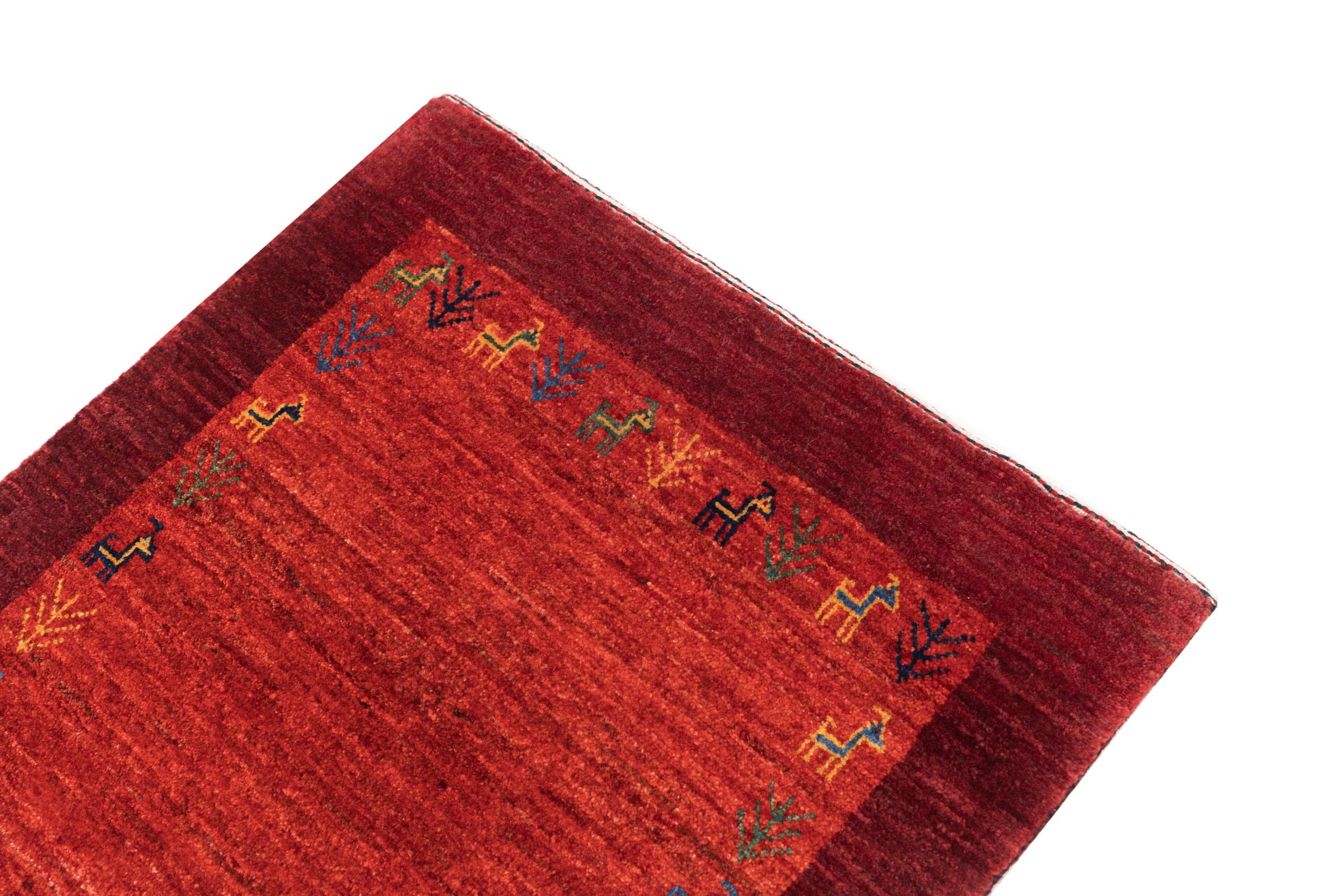 Este Gabbeh Kashkuli foi feito à mão por semi-nómadas no sudoeste do Irão. Graças à tradição persa, oferece uma excelente qualidade. Os motivos deste tipo são geralmente mantidos simples e não parecem demasiado sobrecarregados.