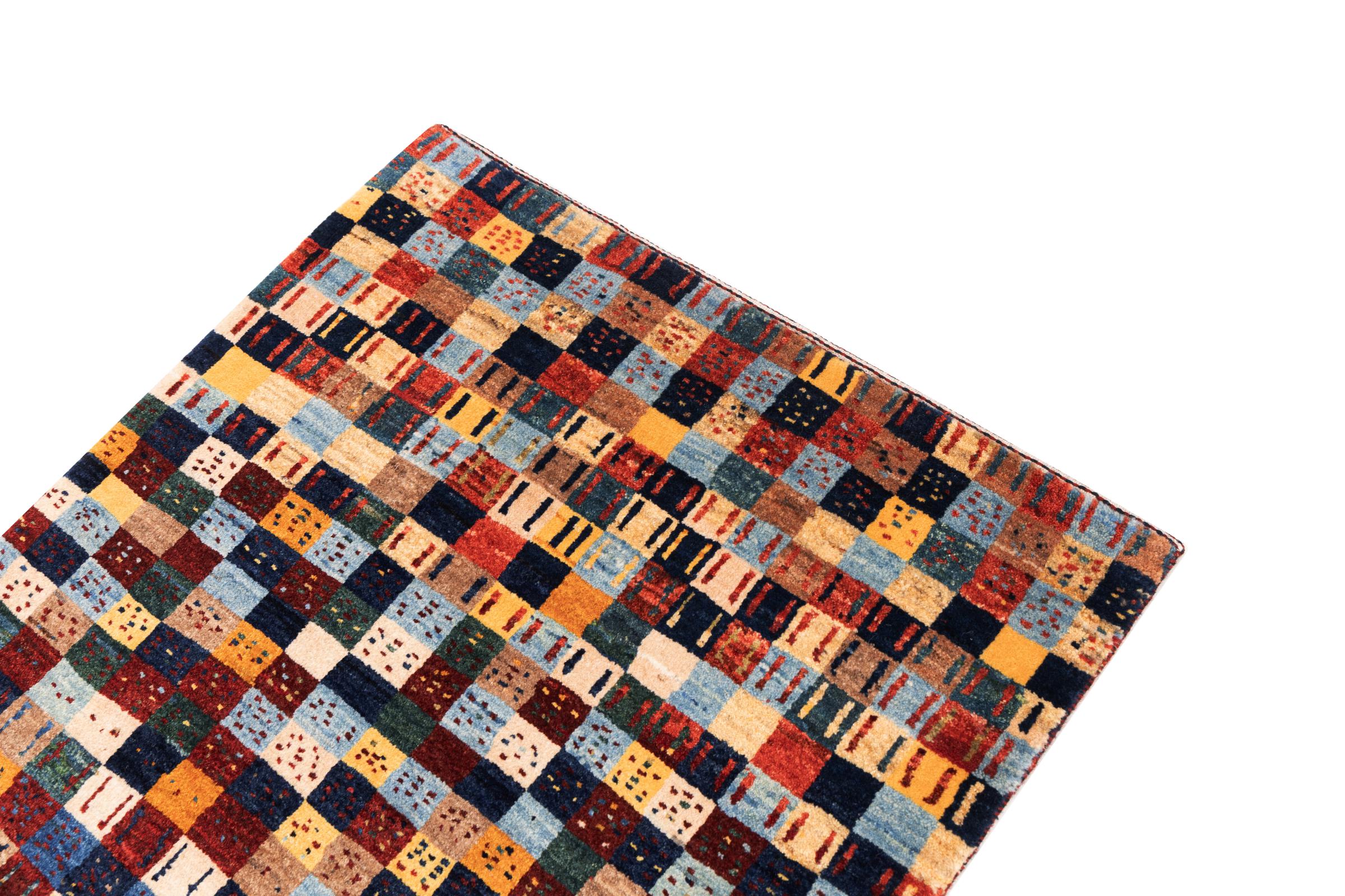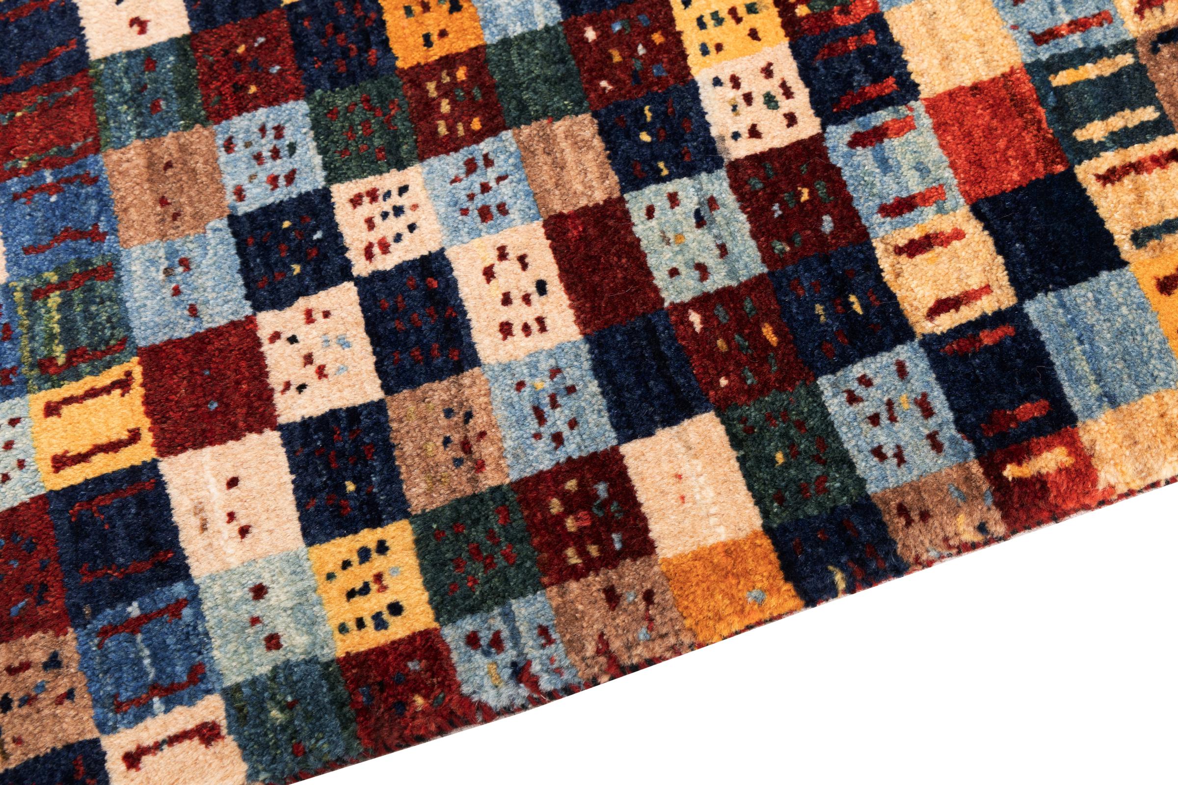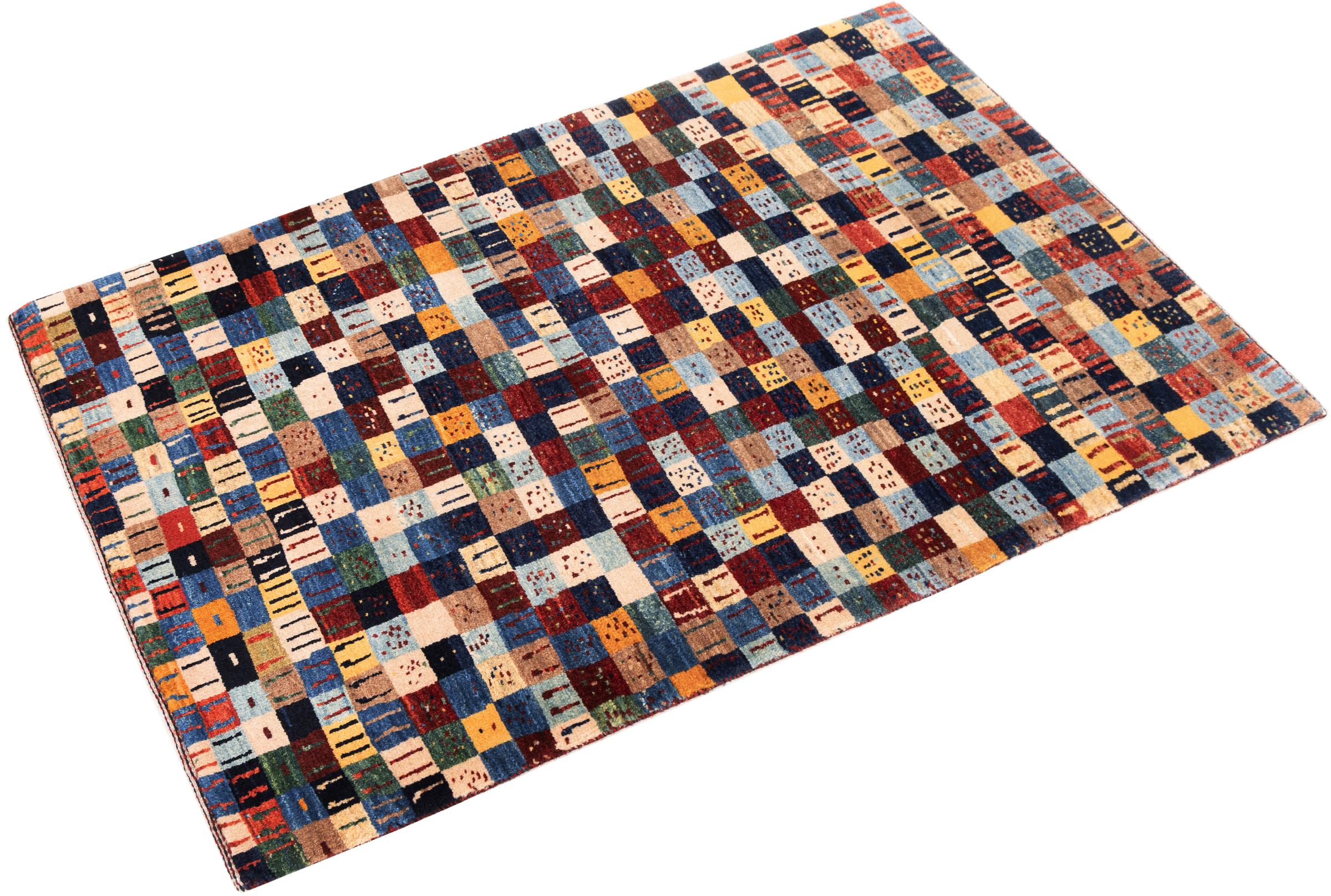 Este Gabbeh Kashkuli foi feito à mão por semi-nómadas no sudoeste do Irão. Graças à tradição persa, oferece uma excelente qualidade. Os motivos deste tipo são geralmente mantidos simples e não parecem demasiado sobrecarregados.