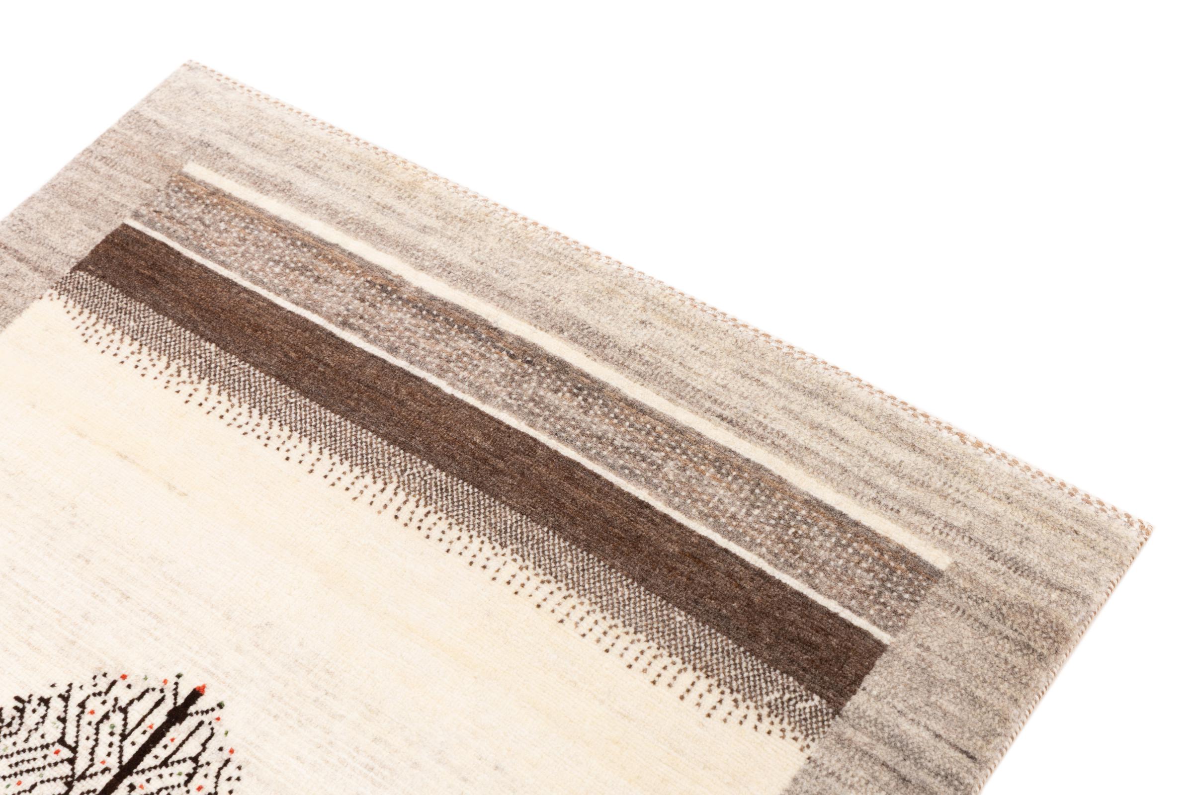 Este Gabbeh Kashkuli foi feito à mão por semi-nómadas no sudoeste do Irão. Graças à tradição persa, oferece uma excelente qualidade. Os motivos deste tipo são geralmente mantidos simples e não parecem demasiado sobrecarregados.