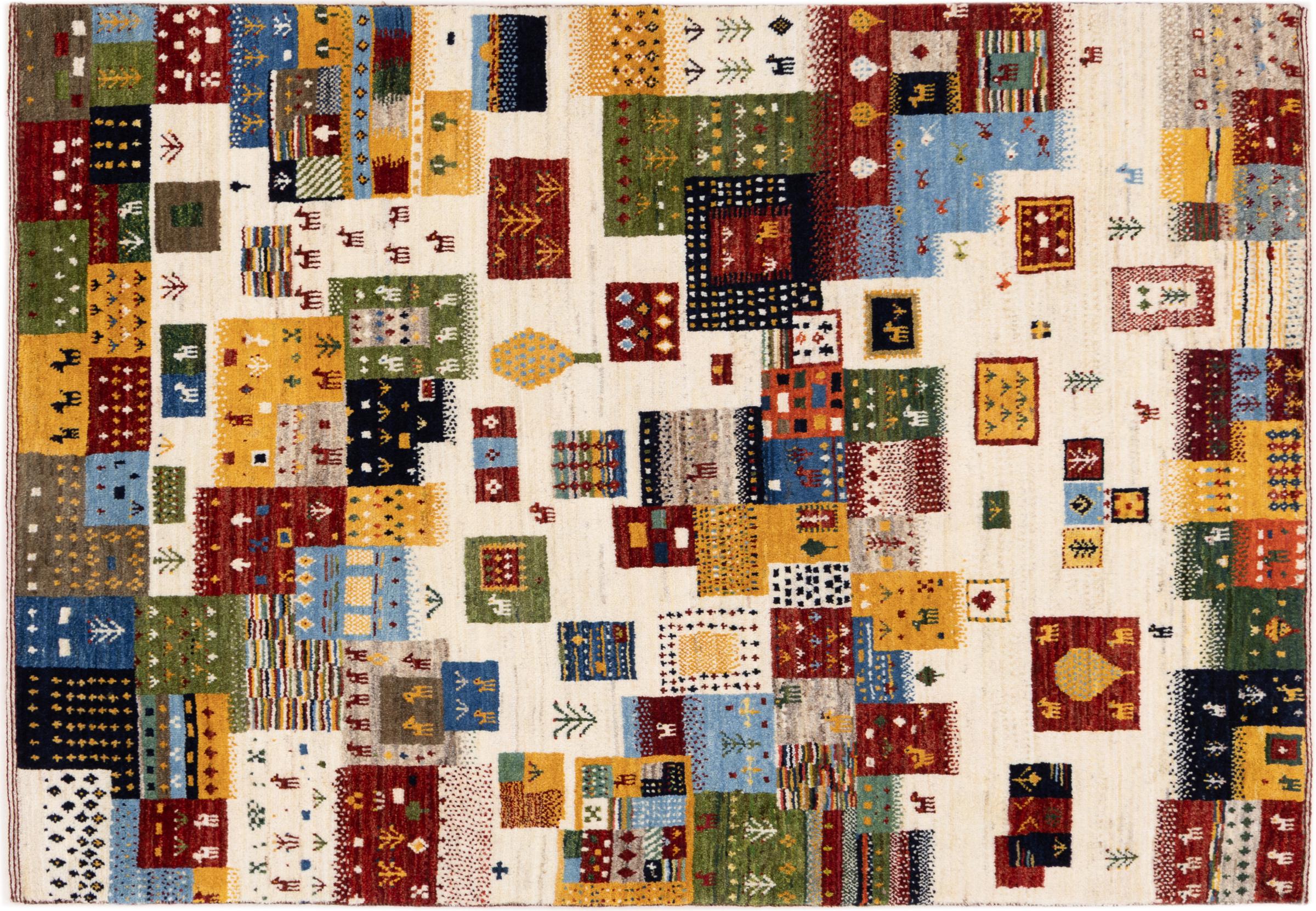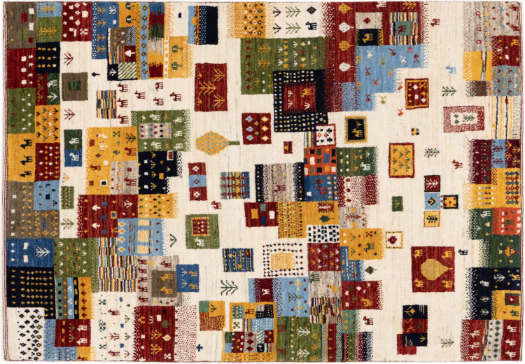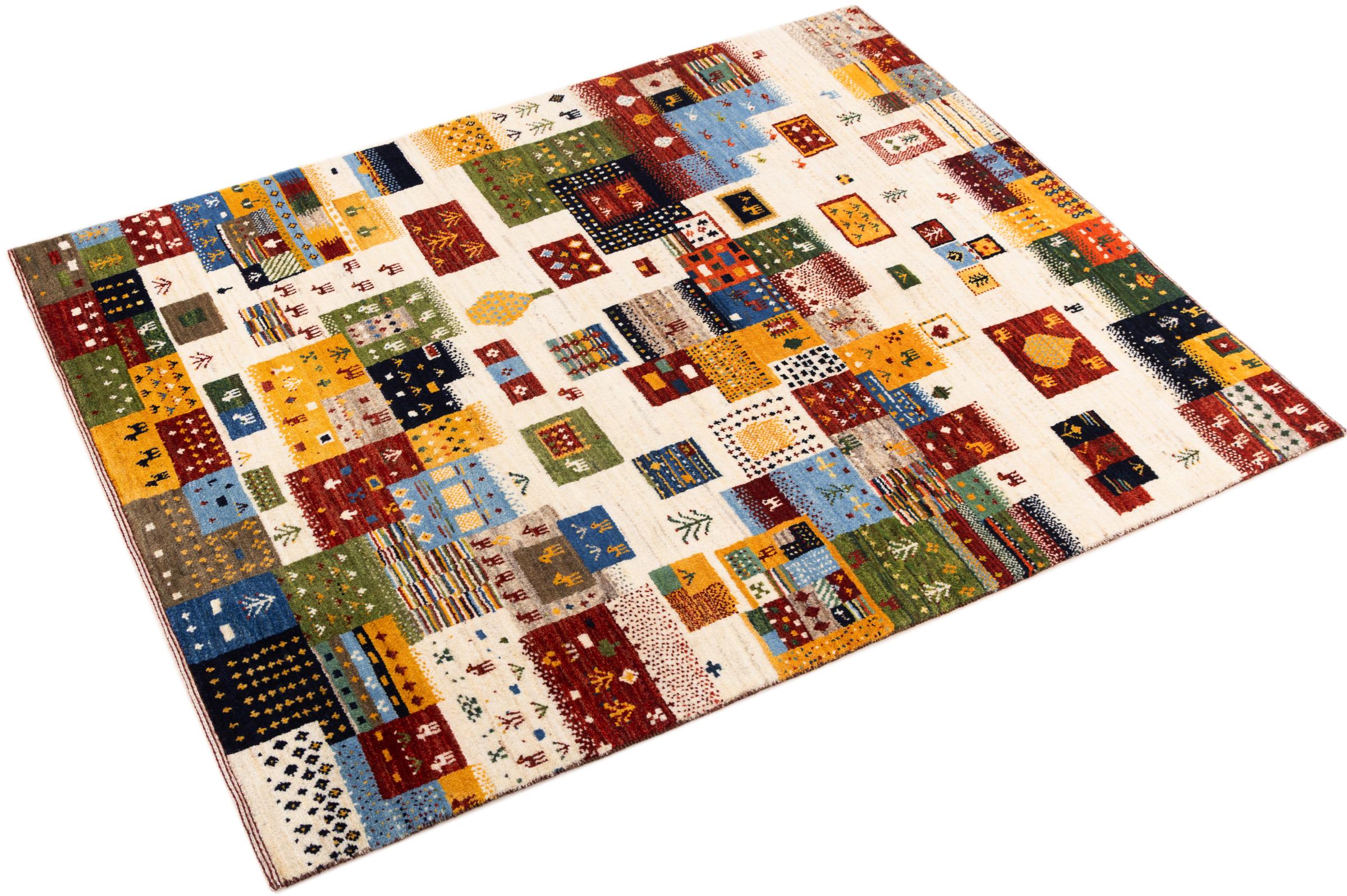 Nº do Tapete: 301362009259892 Tamanho: 169x119 cm Espessura: aproximadamente 15 mm Nós: 72 000 - 90 000 / m² Processamento: Atado à mão Veludo: Lã tecida à mão Urdidura: Lã Natural Origem: Pérsia / Iran Idade: Novo Peso: aproximadamente 8 kg Também conhecido como Gabbe, Kashkuli Em armazém: Único - Apenas 1 em stock