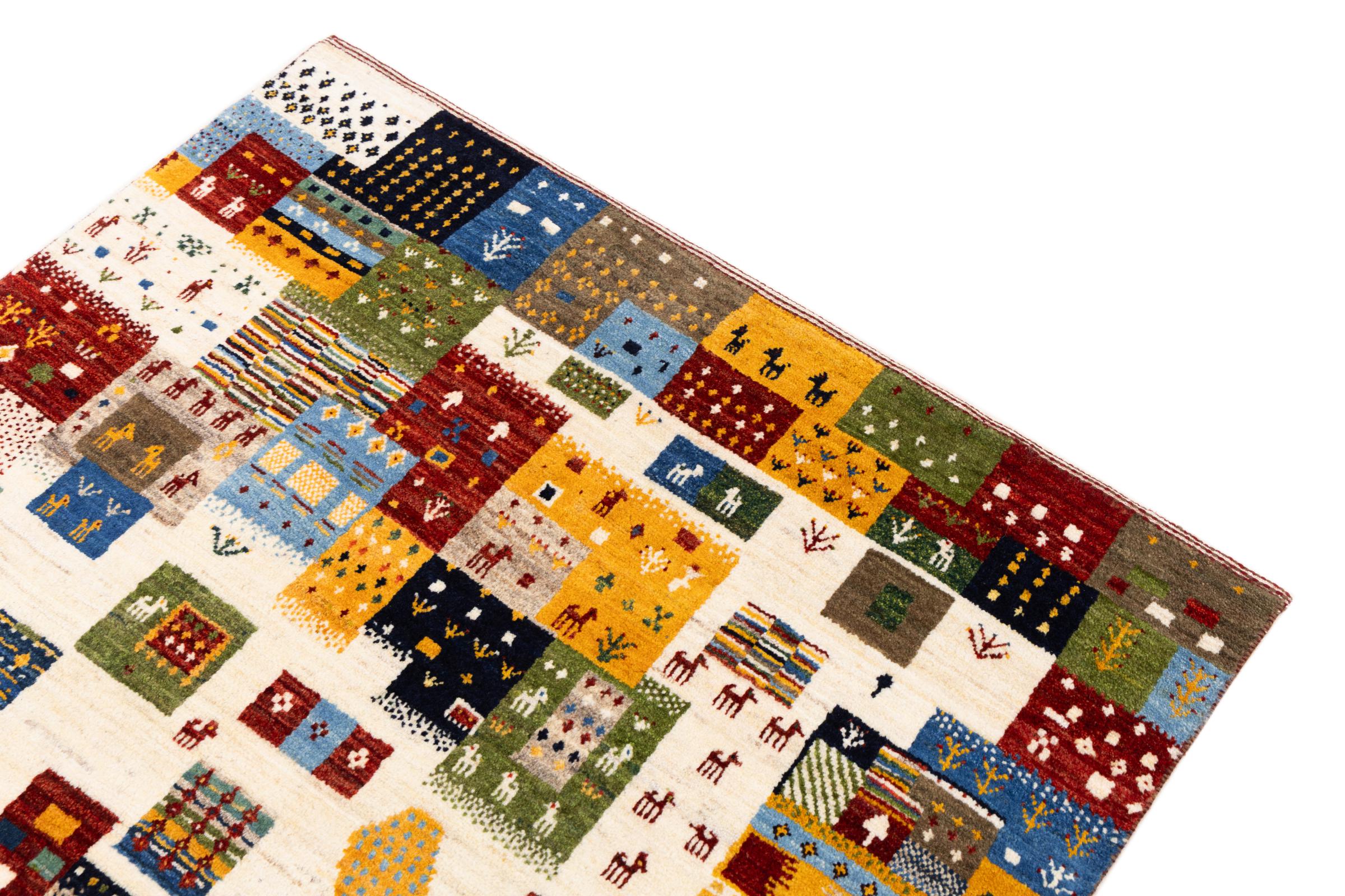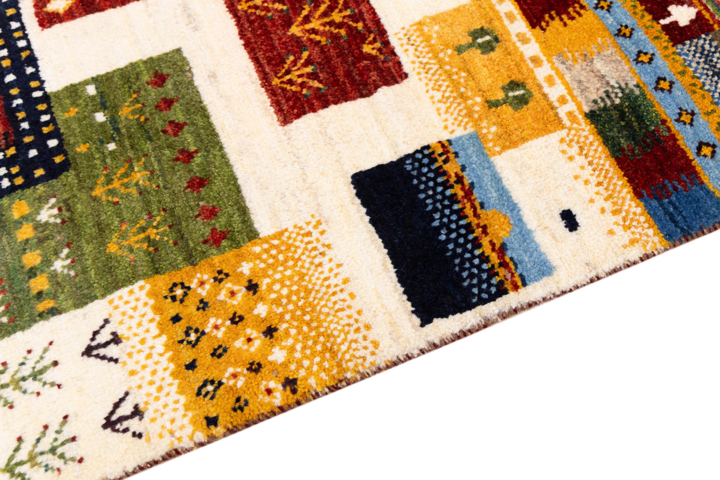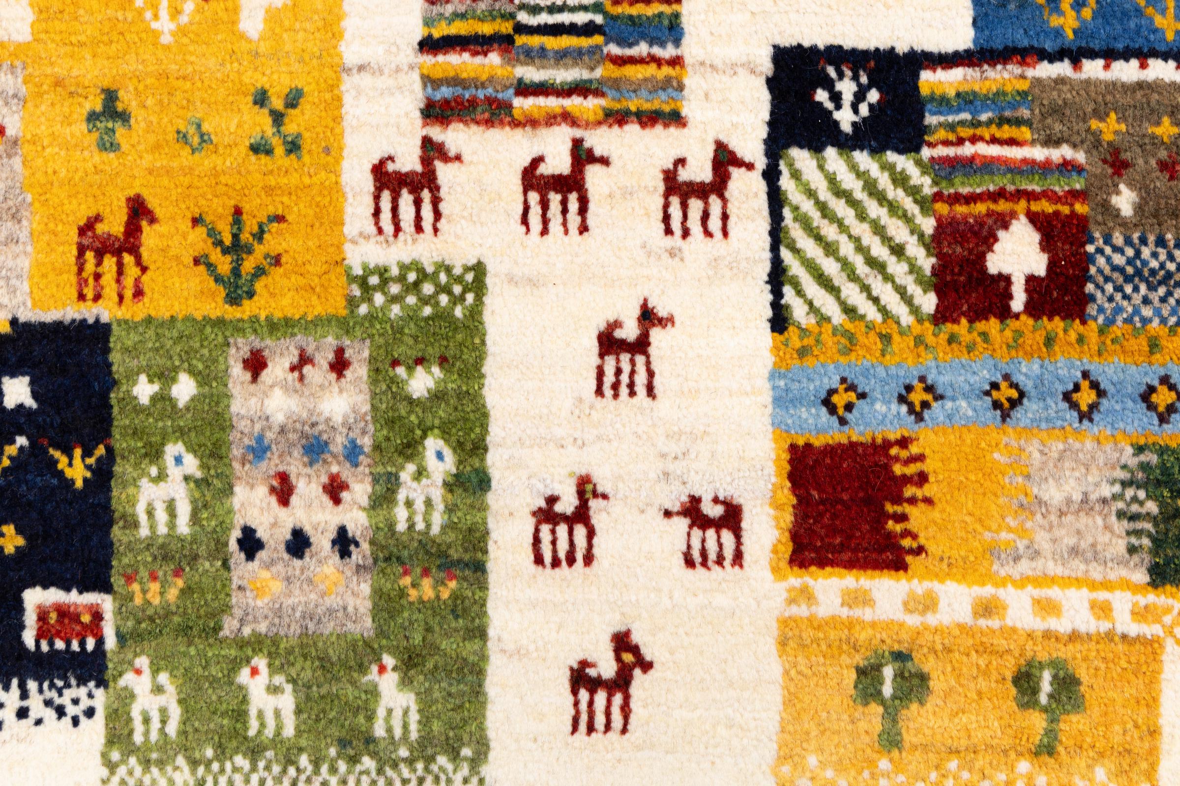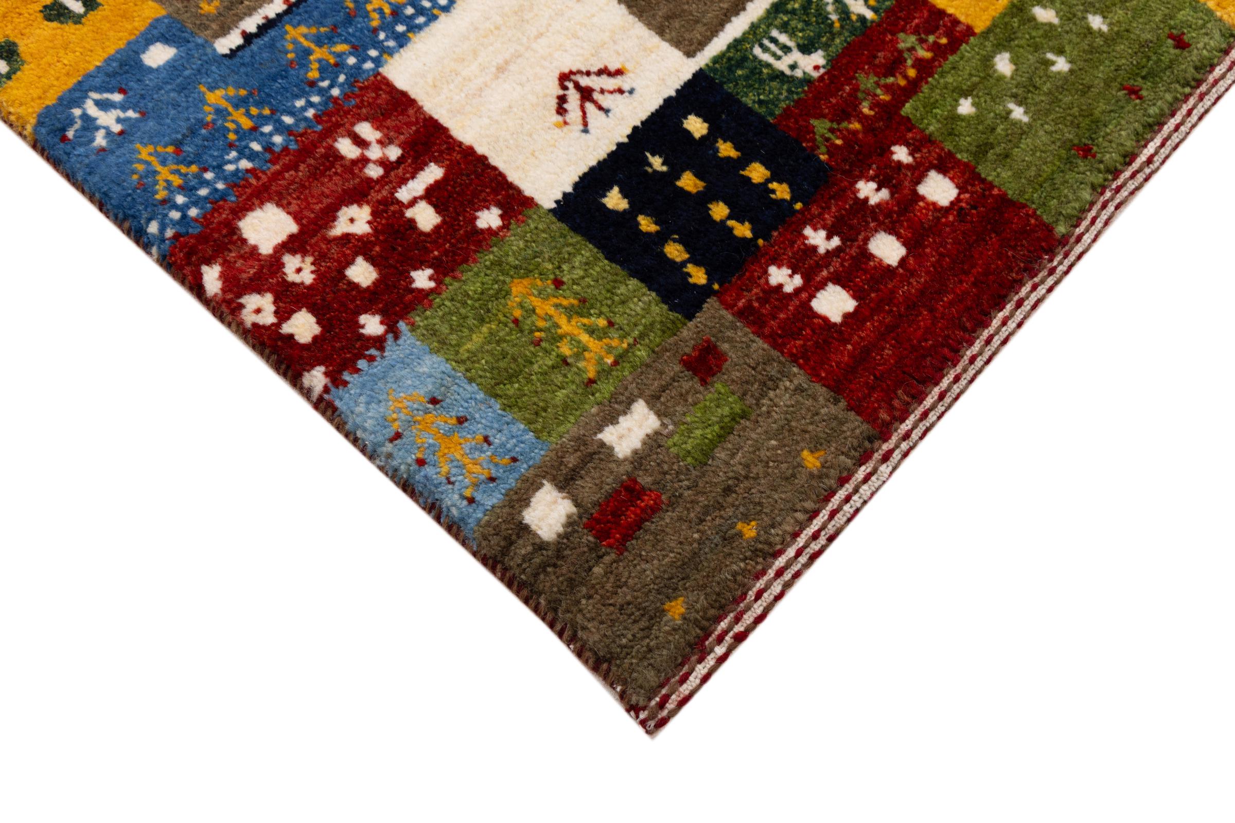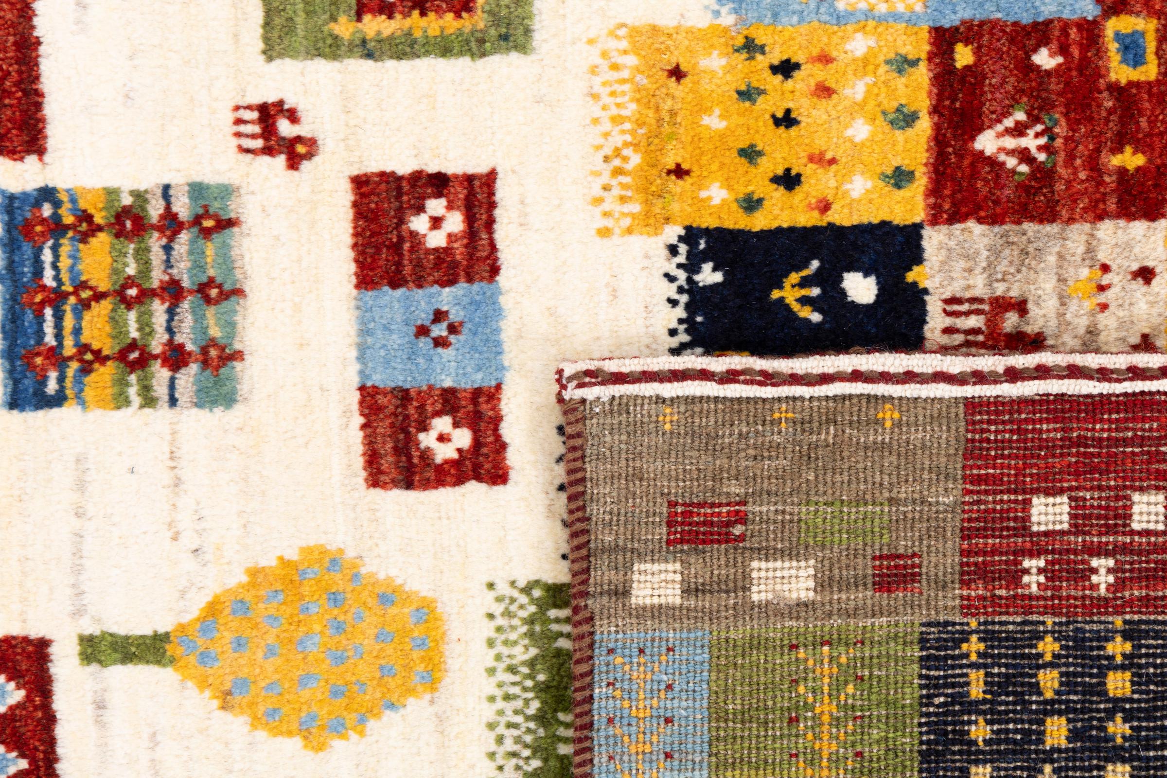 Este Gabbeh Kashkuli foi feito à mão por semi-nómadas no sudoeste do Irão. Graças à tradição persa, oferece uma excelente qualidade. Os motivos deste tipo são geralmente mantidos simples e não parecem demasiado sobrecarregados.