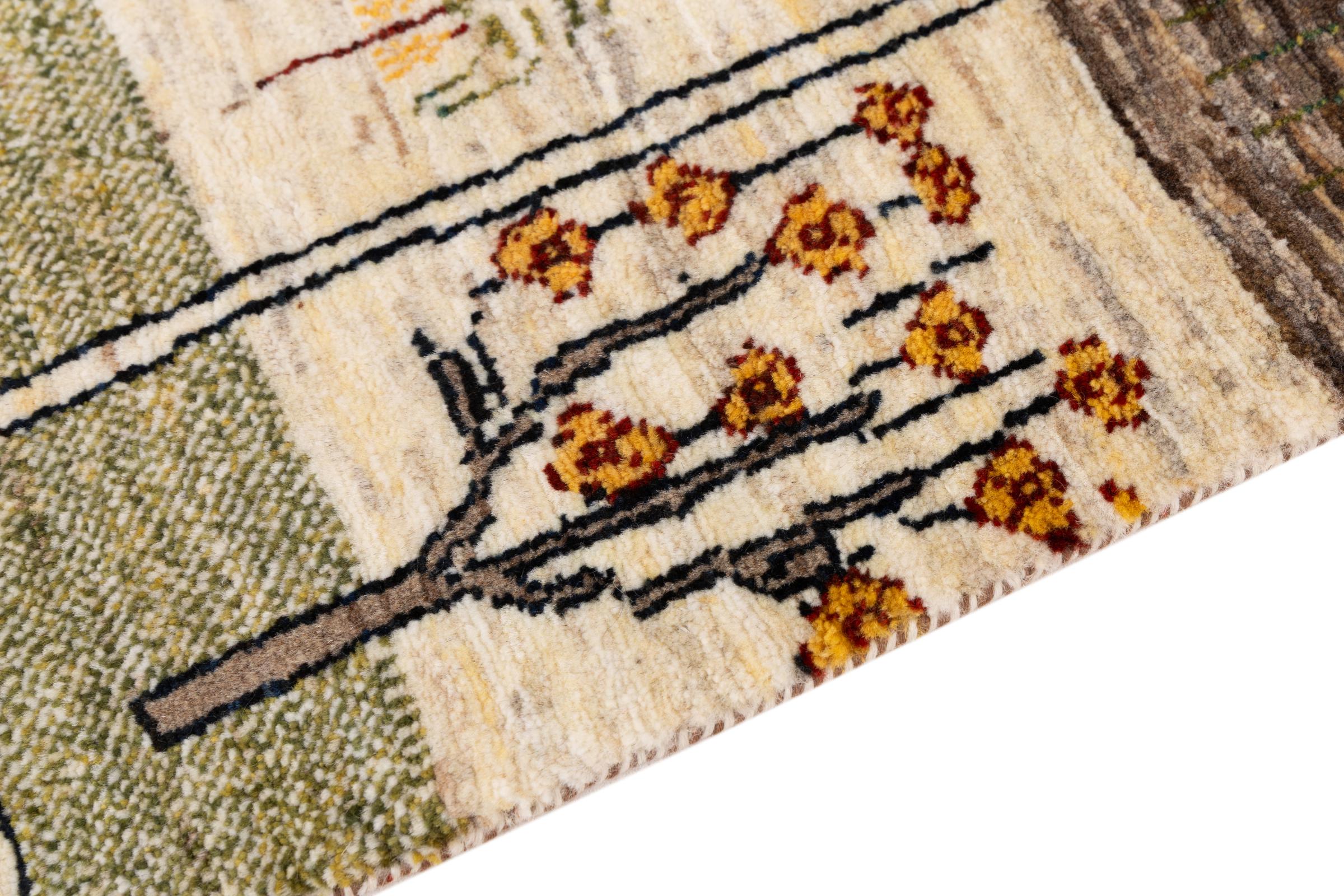 Este Gabbeh Kashkuli foi feito à mão por semi-nómadas no sudoeste do Irão. Graças à tradição persa, oferece uma excelente qualidade. Os motivos deste tipo são geralmente mantidos simples e não parecem demasiado sobrecarregados.