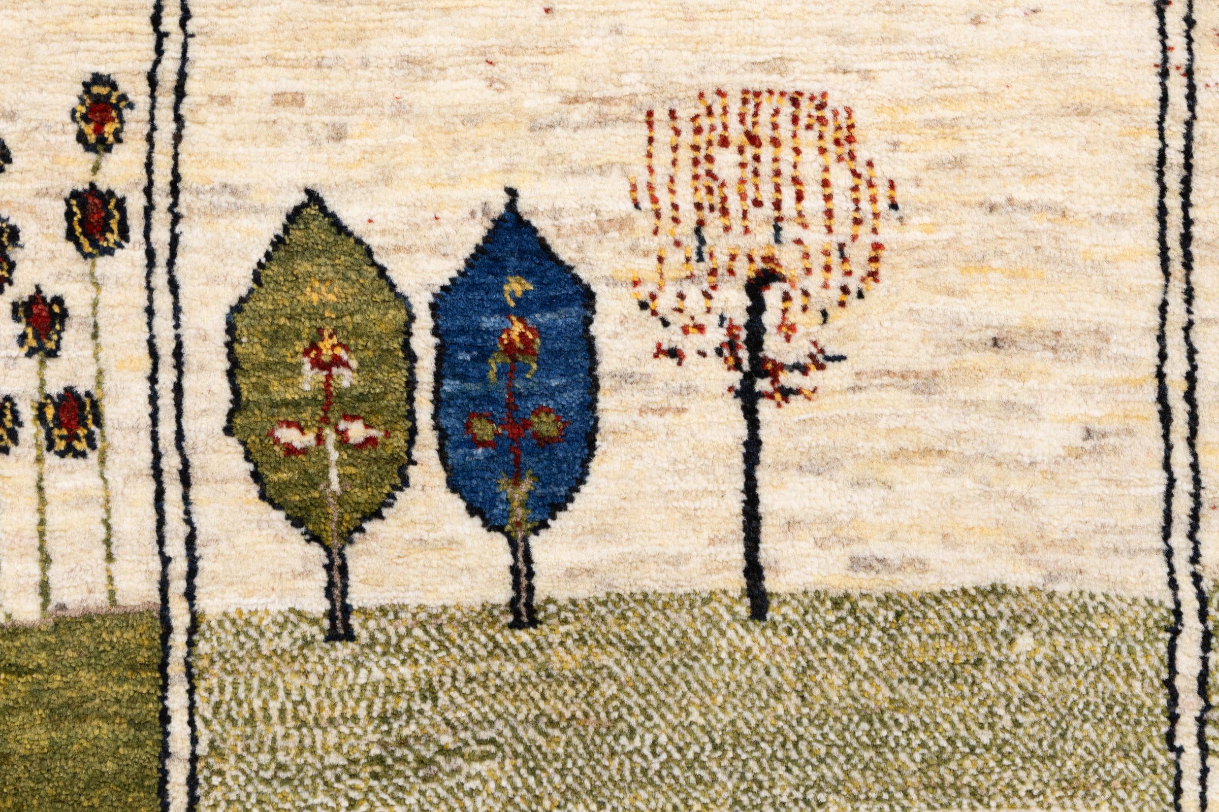 Este belo tapete é um Gabbeh persa e por isso pertence aos tapetes Gabbeh da mais alta qualidade. Os tapetes são atados por nómadas ou semi-nómadas no Irão, de acordo com o artesanato tradicional. Os simples motivos e padrões são, na sua maioria, inspirados pelo ambiente imediato dos nómadas. Por exemplo, camelos, árvores ou arbustos podem ser encontrados nos tapetes tradicionais. Os tapetes Gabbeh persa são feitos de lã proveniente de rebanhos de ovinos criados localmente. Por conseguinte, a lã ainda é, na sua maioria, fiada à mão. Assim, cada um destes tapetes orientais corporiza um carácter único de cultura secular.