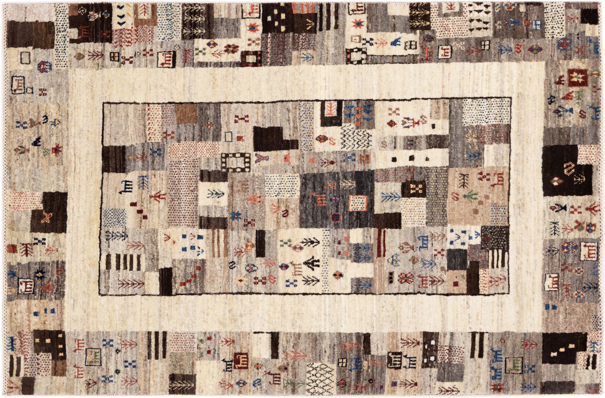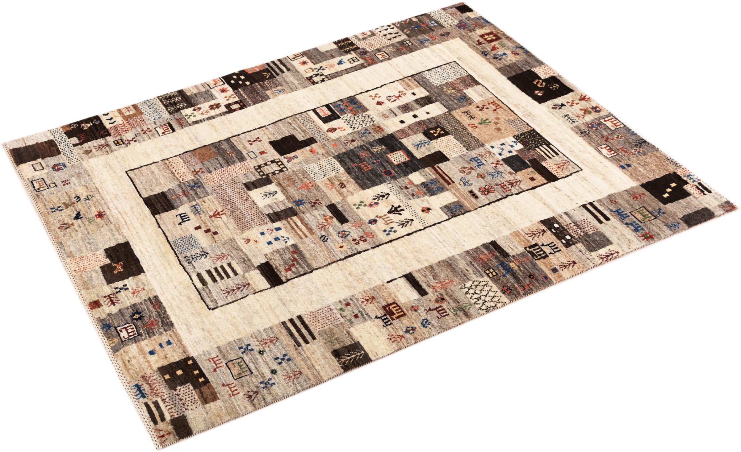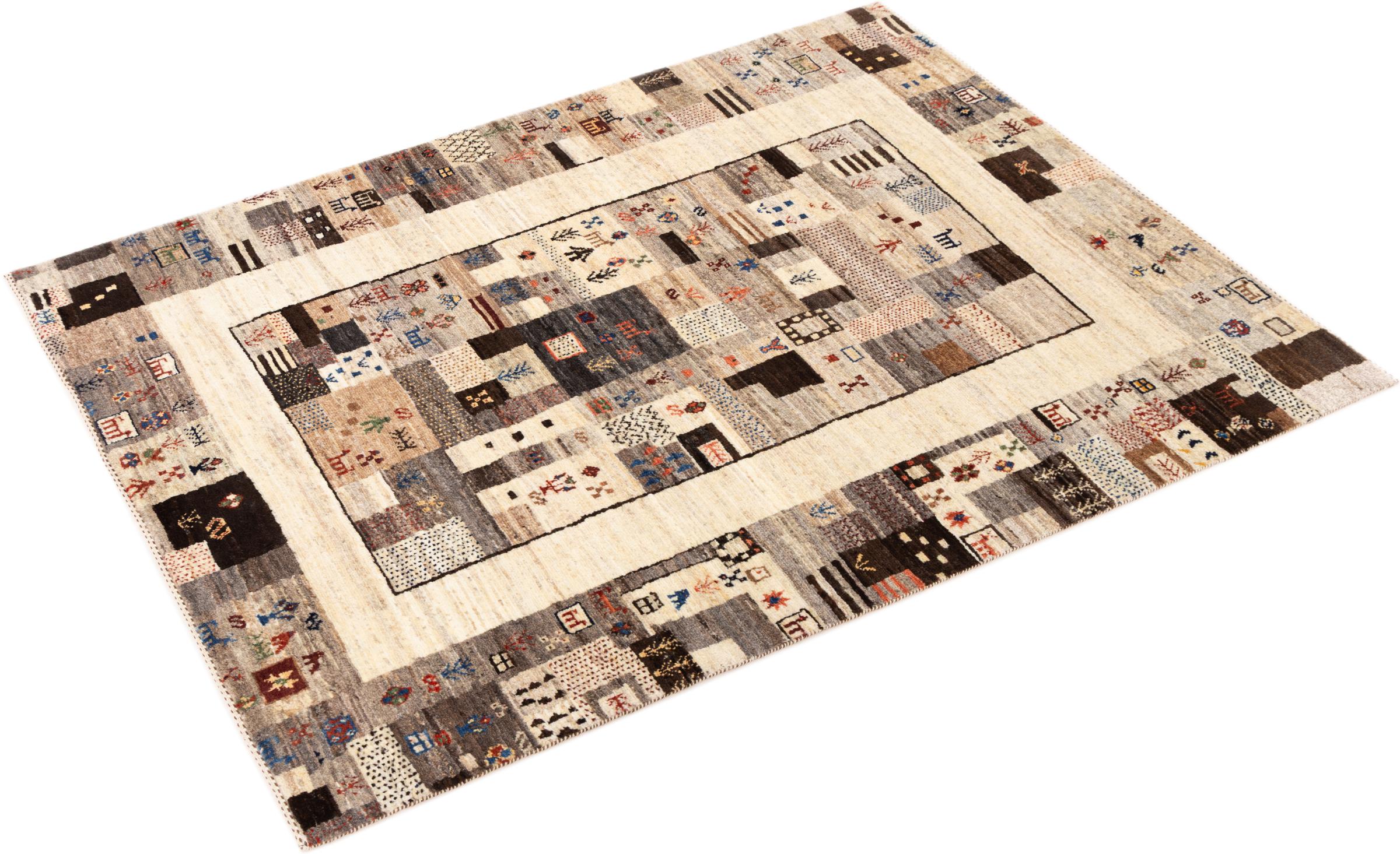 Este belo tapete é um Gabbeh persa e por isso pertence aos tapetes Gabbeh da mais alta qualidade. Os tapetes são atados por nómadas ou semi-nómadas no Irão, de acordo com o artesanato tradicional. Os simples motivos e padrões são, na sua maioria, inspirados pelo ambiente imediato dos nómadas. Por exemplo, camelos, árvores ou arbustos podem ser encontrados nos tapetes tradicionais. Os tapetes Gabbeh persa são feitos de lã proveniente de rebanhos de ovinos criados localmente. Por conseguinte, a lã ainda é, na sua maioria, fiada à mão. Assim, cada um destes tapetes orientais corporiza um carácter único de cultura secular.
