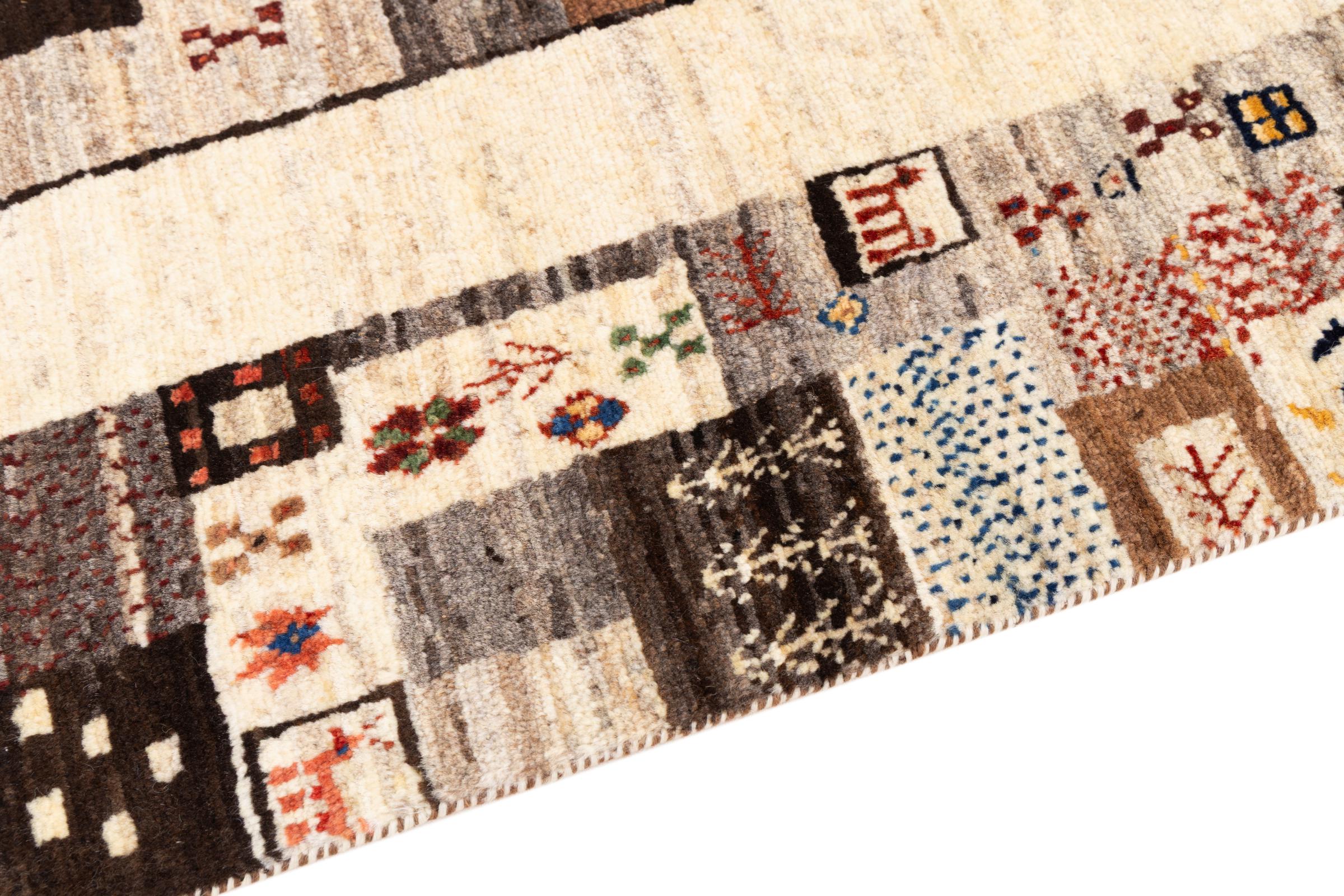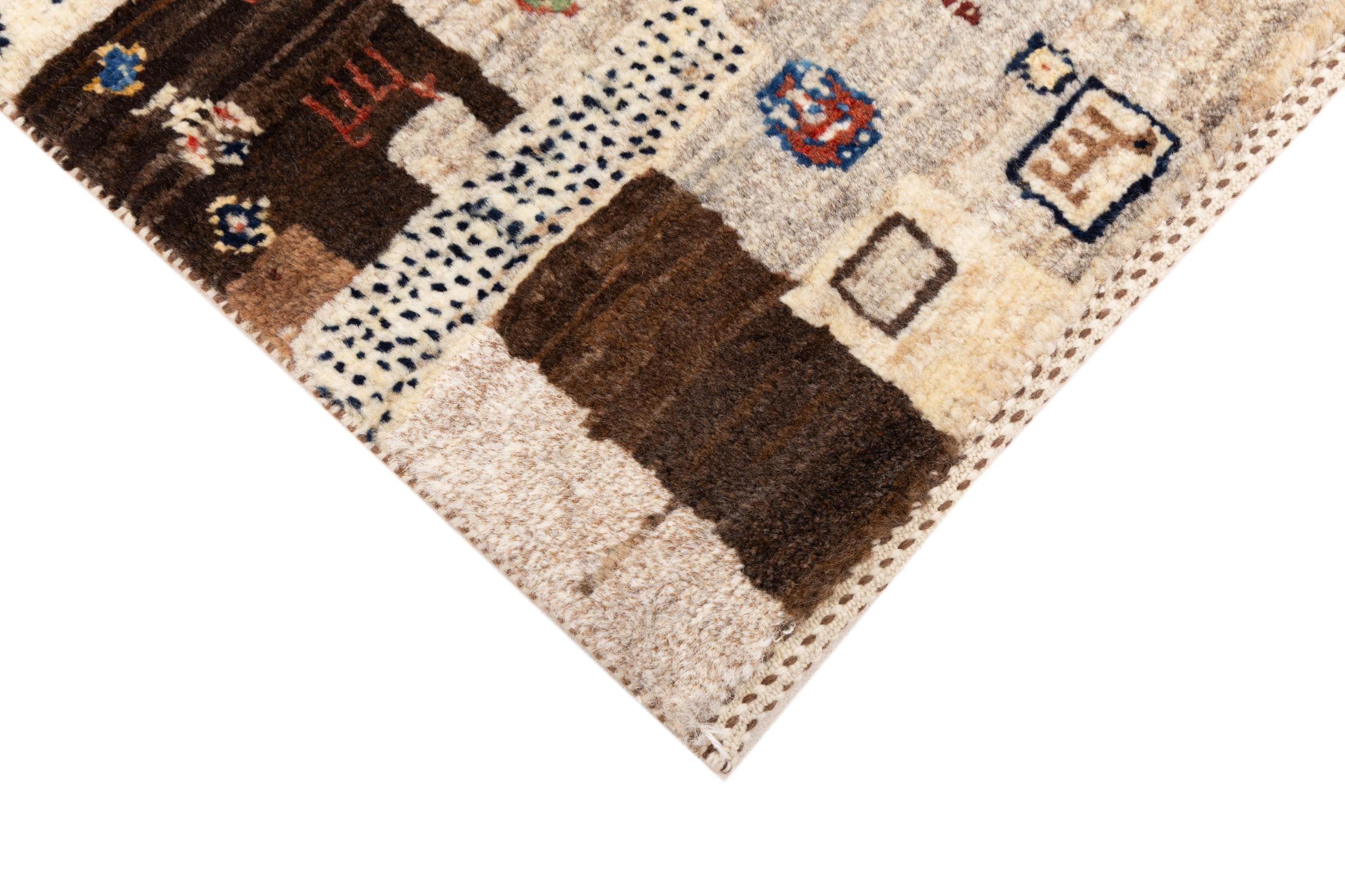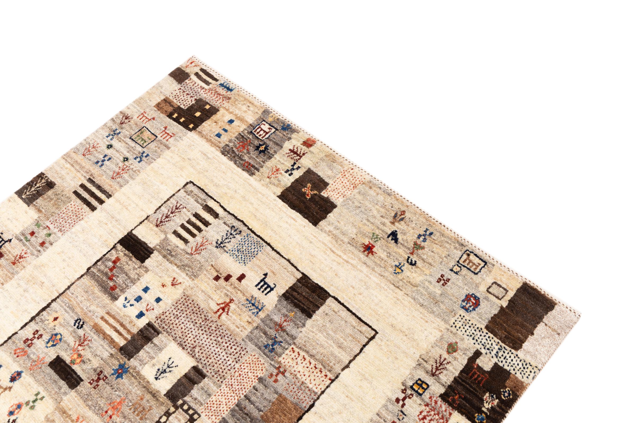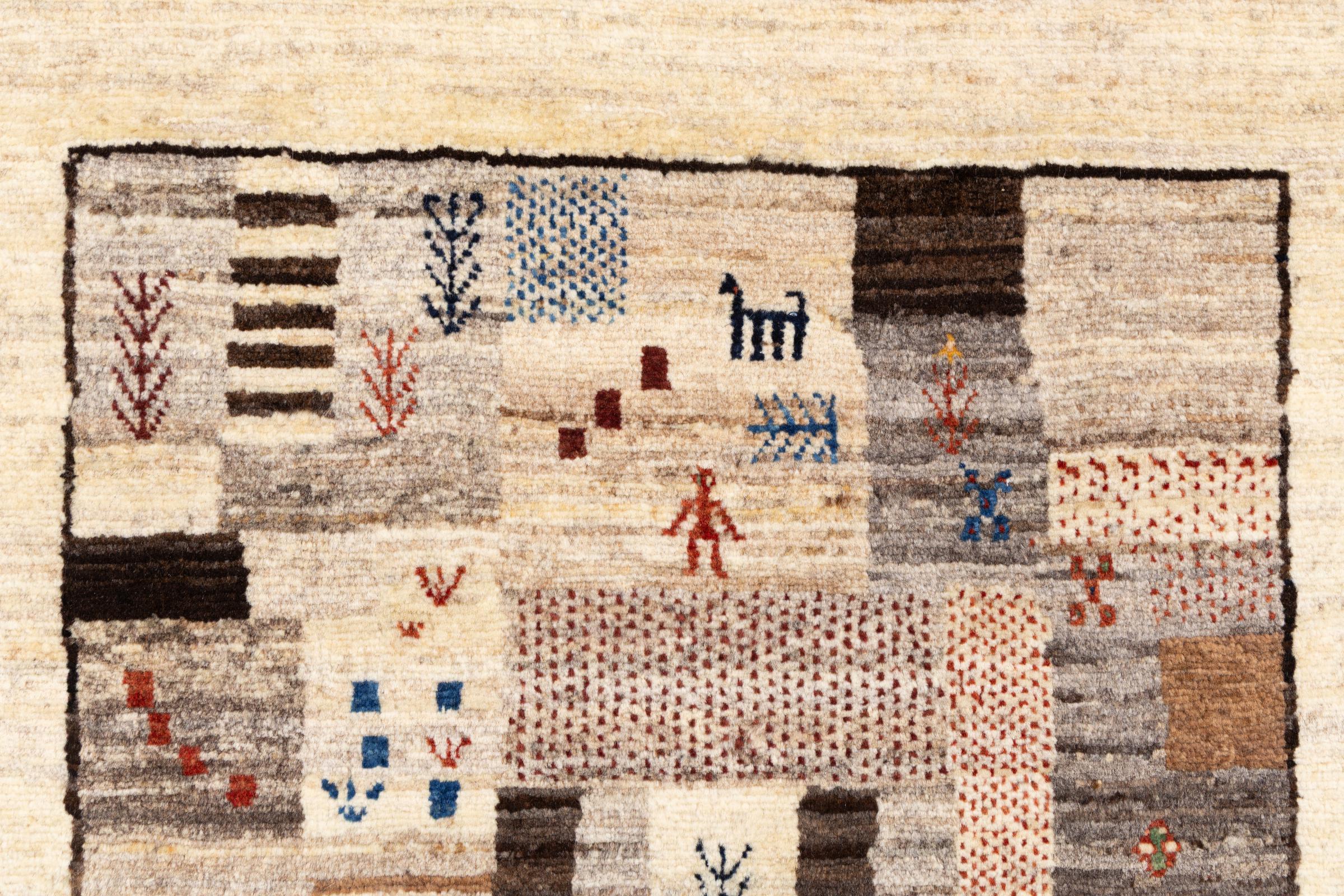 Este Gabbeh Kashkuli foi feito à mão por semi-nómadas no sudoeste do Irão. Graças à tradição persa, oferece uma excelente qualidade. Os motivos deste tipo são geralmente mantidos simples e não parecem demasiado sobrecarregados.