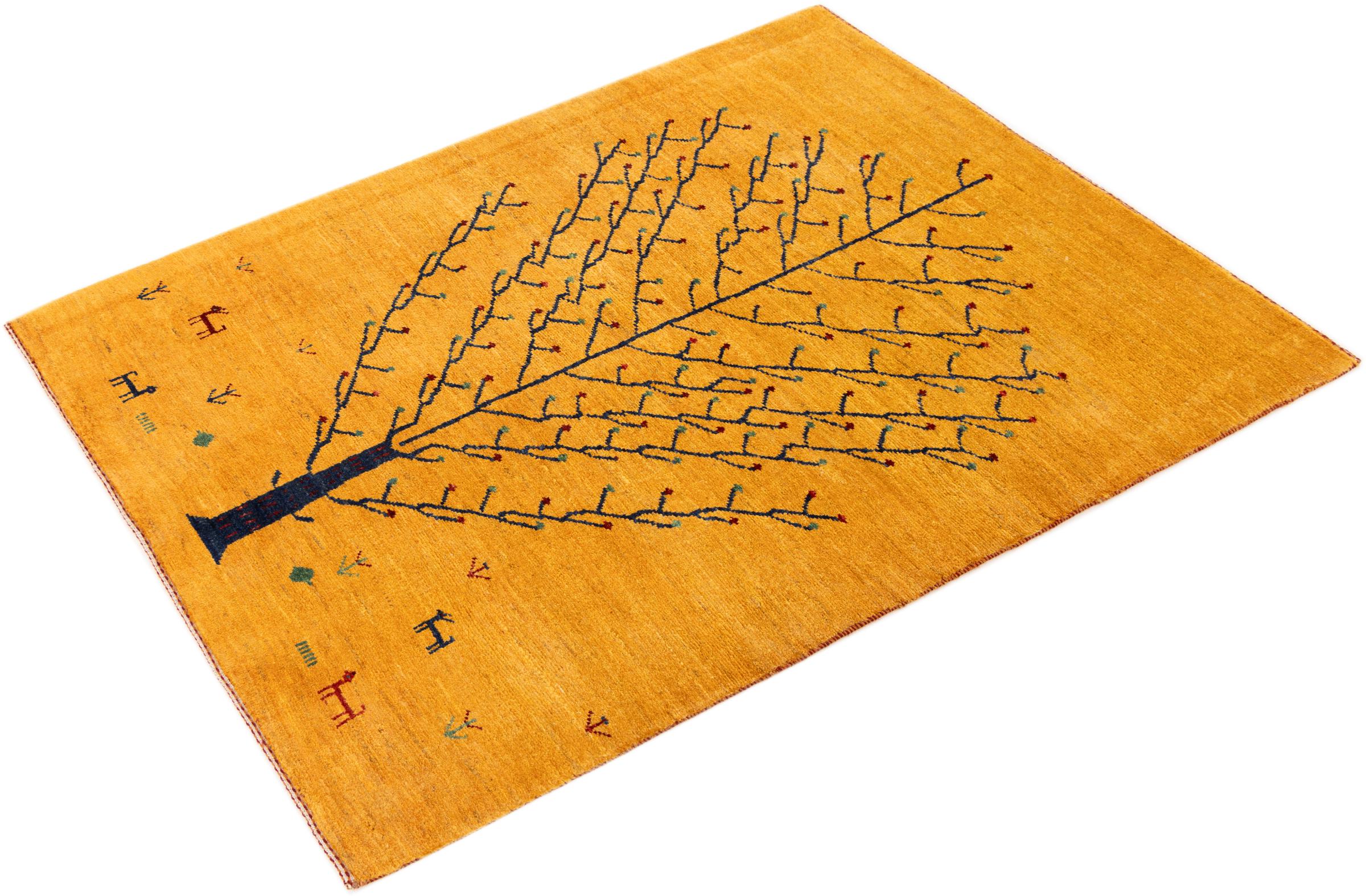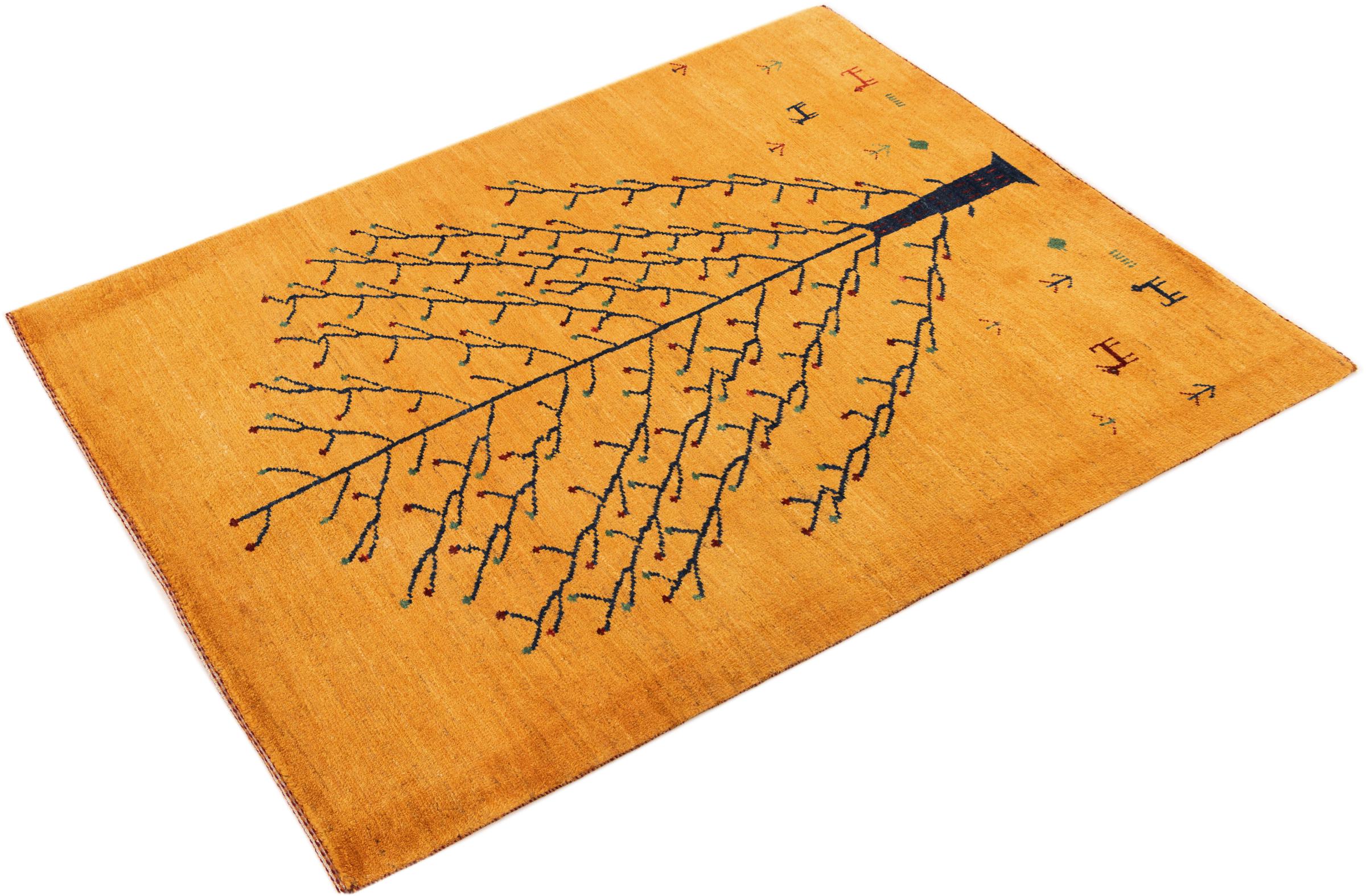 Este belo tapete é um Gabbeh persa e por isso pertence aos tapetes Gabbeh da mais alta qualidade. Os tapetes são atados por nómadas ou semi-nómadas no Irão, de acordo com o artesanato tradicional. Os simples motivos e padrões são, na sua maioria, inspirados pelo ambiente imediato dos nómadas. Por exemplo, camelos, árvores ou arbustos podem ser encontrados nos tapetes tradicionais. Os tapetes Gabbeh persa são feitos de lã proveniente de rebanhos de ovinos criados localmente. Por conseguinte, a lã ainda é, na sua maioria, fiada à mão. Assim, cada um destes tapetes orientais corporiza um carácter único de cultura secular.